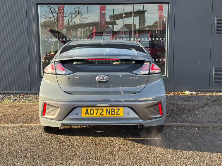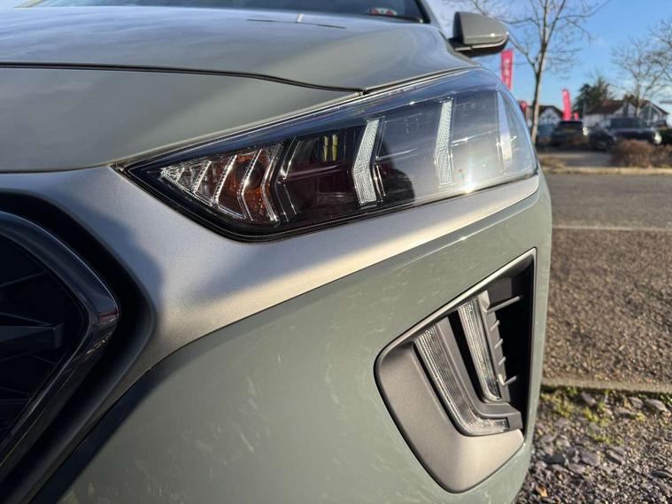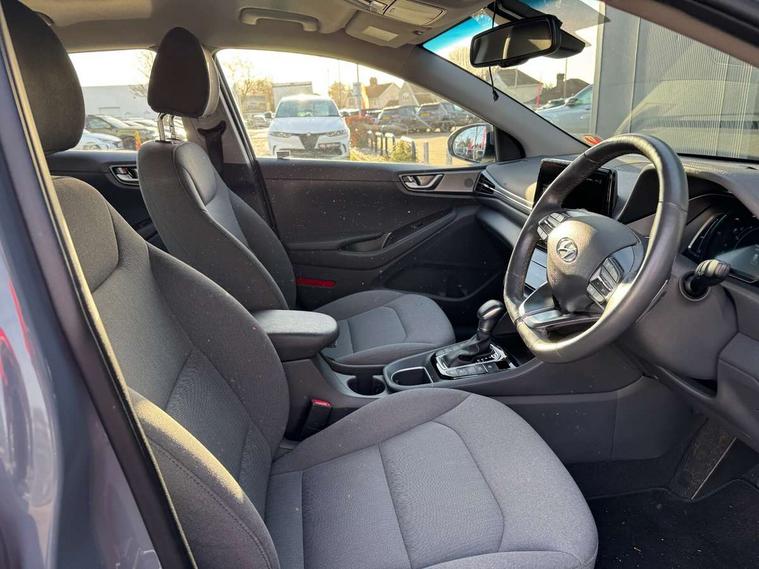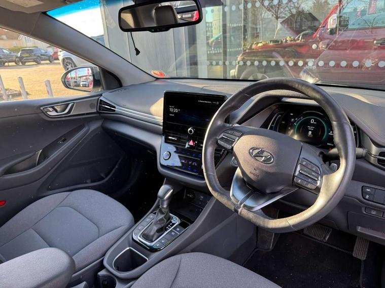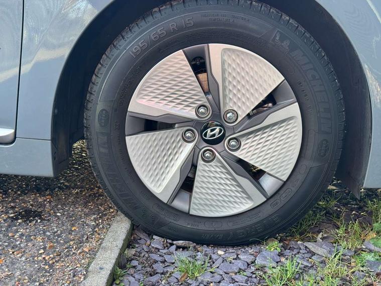 10.25" touchscreen satellite navigation includes traffic messaging channel, mapcare, live services and bluelink, Apple car play/Android Auto, Bluetooth system, Cruise control, Driver attention alert system, E-call, Eco driving assistant system (ECO DAS), Electric power steering with variable drive modes, Gear lever drive mode selector, Lane departure warning system with lane keep assist - LKAS, Parking Brake - Foot Brake, Parking system with rear camera and guidance system, Rear parking sensor, Rear view monitor, Roadside assistance, Supervision cluster with 7" high resolution TFT LCD, Voice recognition, Windscreen washer fluid sensor and warning indicator, Wireless phone charging pad, DAB Digital radio, Infinity sound system includes 1 centre, 2 tweeters, 2 front, 2 rear and 1 ext amp, Radio data system, Steering wheel audio, phone and cruise controls, USB and aux connection in front, Active air flap radiator grille, Auto dimming rear view mirror, Automatic headlights with dusk sensor, Body colour bumpers, Body colour door handles with chrome inserts, Body colour door mirrors, Bodyside mouldings, Chrome door scuff with ioniq logo, Chrome finish window surround, Chrome radiator grille, Door mirror puddle lights, Electric adjustable door mirrors, Electric front windows - anti trap + one touch, Electric heated door mirrors, Heated rear windscreen, High beam assist, LED daytime running lights, LED Headlights, LED indicators in door mirrors, LED rear fog light, Positioning Lights - LED, Power folding door mirrors, Rain sensor, Rear electric windows, Rear LED lights, Rear roof spoiler with integrated LED brake light, Rear side wing doors, Rear wiper, Solar glass with windscreen shade band, Tinted windows, Two tone rear bumper, Variable front intermittent wipers, 12V power outlets, 3 rear seats, 60/40 split folding rear seat, Centre console storage, Centre interior light, Chrome interior door handles, Cloth upholstery, Driver seat height adjust, Driver's electric adjustable lumbar support, Driver/passenger sunvisors with illuminated vanity mirrors, Dual zone climate control, Front centre armrest with storage compartment, Front cupholder, Front head restraints with vertical and horizontal adjustment, Front seat and rear pockets, Heated front seats, Heated steering wheel, Illuminated luggage compartment, Interior mood lighting, Leather wrapped steering wheel, Luggage net, Manual height adjustable front passenger seat, Map and reading lights, Paddle shifter, Rear centre console with air vents, Single front passenger seat, Sunglasses holder, USB - driver arm rest (charging only), Vertical adjustment rear head restraints, 3x3 point rear seatbelts, Airbags - front, front side, curtain and drivers knee airbags, Anti-lock brake system (ABS), Autonomous emergency braking, Electronic stability control, Front passenger airbag deactivation switch, Hill start assist control (HAC), Manual child lock in rear doors, Regenerative braking system, Traction control, Tyre pressure monitoring system with individual tyre pressure display, Deadlocks, Immobiliser, Keyless smart entry with push button start, Remote central locking, 15" Design B alloy wheels, Tyre repair kit,