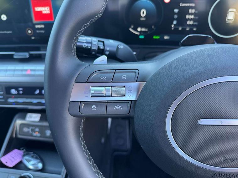 12.25" digital instrument cluster, 12.3" touchscreen centre console display satellite navigation with bluelink, live services and mapcare, Bluetooth connectivity with voice recognition, Driver status monitor (DSM), Driver supervision instrument cluster with 12.3" LCD display, eCall emergency call system, Feature on demand - Enabled, Forward collision avoidance assist (FCA 1.5) - Car, pededstrian, cycle and junction turning, Front parking sensor, HDA - Highway Drive Assist Level 1.5, Intelligent speed limit assist, Lane follow assist, Lane keep assist, Leading vehicle departure alert (LVDA), Parking system with rear camera and guidance system, PAS, Rear parking sensor, Rear view camera with dynamic guidelines, Roadside assistance, Smart cruise control with stop and go functionality, Wireless Smartphone Integration includes Apple CarPlay and Android auto, 2 front USB C and 2 rear USB C charging points, DAB Digital radio, Speakers - Front, rear and tweeters, Steering wheel audio, phone and cruise controls, Auto dimming rear view mirror, Automatic headlights with dusk sensor, Automatic windscreen wipers with rain sensor, Black painted wheel arch inserts, Body colour exterior door handles, Body coloured door mirrors, Door mirror LED indicator lights, Electric front windows with anti-trap mechanism and one touch control, Electric rear windows, Electrically adjustable and heated door mirrors, Full LED MFR headlights, LED daytime running lights, LED taillights, LED upper and lower rear lights, Power folding door mirrors, Rear roof spoiler with integrated LED brake light, Rear side wing doors, Rear skid plate - silver, Rear wiper, Roof rails, Tinted glass in front and rear doors, Windscreen auto defog function, 12V power outlet in front console, 2 zone climate control, 3 seat bench in 2nd row, Adjustable head restraints, Cloth upholstery, Driver and passenger front seat pockets, Driver's seat lumbar support, Driver/passenger manual seat height adjustment, Driver/passenger sunvisors and illuminated vanity mirrors, Floor mats, Height/reach adjustable steering column, Leather steering wheel, LED centre interior light, LED front interior light, Luggage compartment LED lighting, Luggage shelf, Metal paint effect interior door handles, Rear centre armrest with cupholders, Shift by wire SBW, Single front passenger seat, Vertical adjustment rear head restraints, Trailer wiring package - Kona, Airbag - front, front side, curtain and centre front airbag, Anti-lock brake system (ABS), Childproof rear door locks, Downhill brake control, Electric parking brake, Electronic stability control, Fixed 3 point for second row centre passenger seatbelt, Hill start assist control (HAC), Rear seat alert, Tyre pressure monitoring system, Alarm/immobiliser, Rear occupant alert, Remote central locking, Smart key with keyless entry and start/stop button, Five year annual vehicle health checks, 18" Alloy wheels, Temporary mobility kit (TMK),