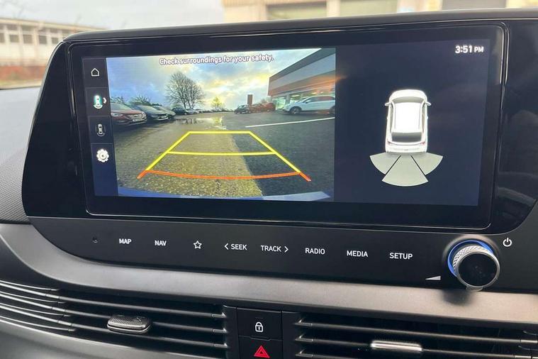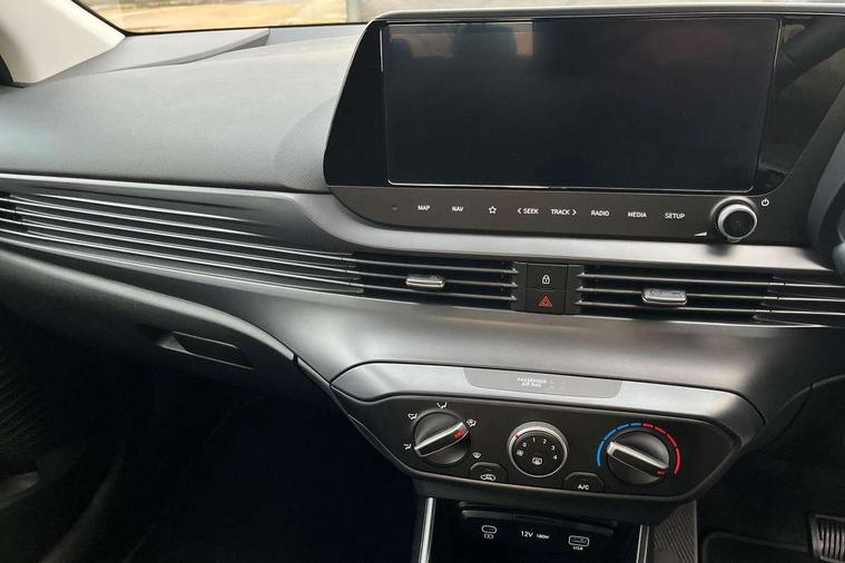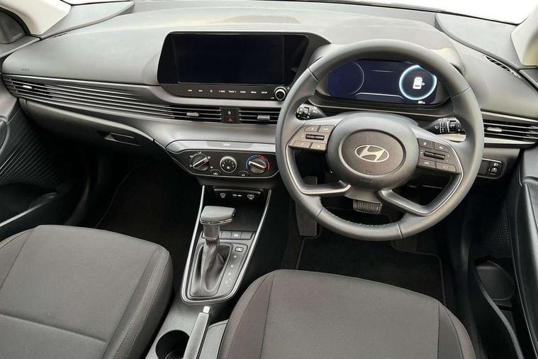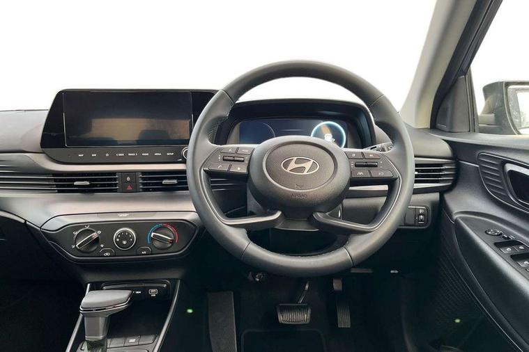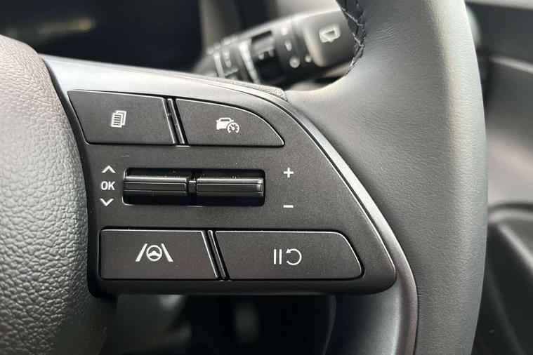 10.25" touchscreen + navigation, 2nd Gen eCall, 8" Touchscreen DAB Radio with android auto and apple carplay, Cruise control + speed limiter, Forward collision assist with car, pedestrian and cycle detection, Intelligent speed assist, Intelligent speed limit warning, Lane follow assist, Lane keep assist, PAS, Rear parking sensor, Rear view camera with dynamic guidelines, USB C port front, Automatic headlights with dusk sensor, Electric adjustable heated door mirrors, Front grille mesh pattern design, High beam assist, LED 3rd brake light, LED daytime running lights, LED Headlights, LED taillights, Rain sensor, Rear side wing doors, Rear wiper, Repositioned flat metal hyundai emblem, Trailer wiring, 3 seat bench in 2nd row, Adjustable head restraints, Air conditioning, Cloth upholstery, Floor mats, Leather steering wheel, Single front passenger seat, 3x3 point rear seatbelts, ABS with front and rear diagonally split, Autonomous emergency braking, Child locks on rear doors, Front ventilated disc brakes, Rear solid disc brakes, Tyre pressure monitoring system, 16" alloy wheels, Tyre repair kit,