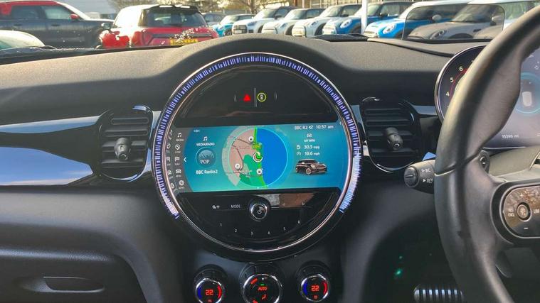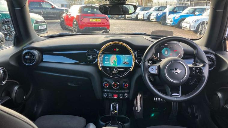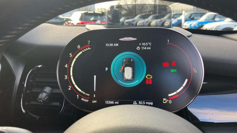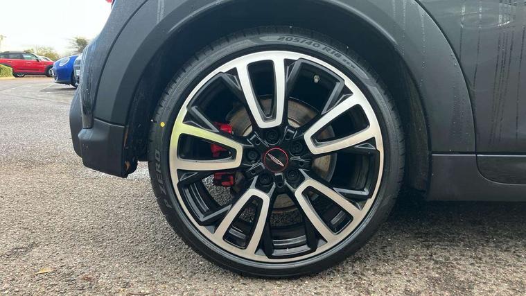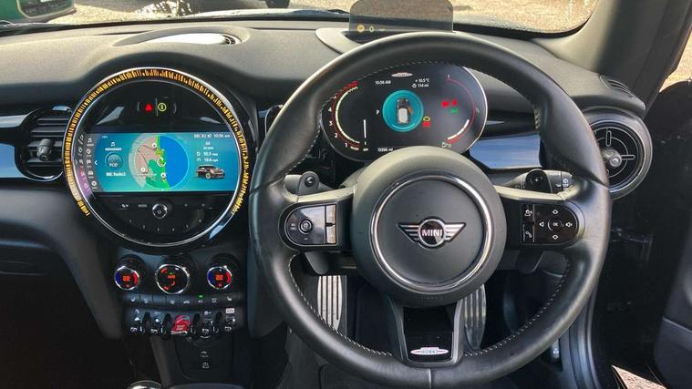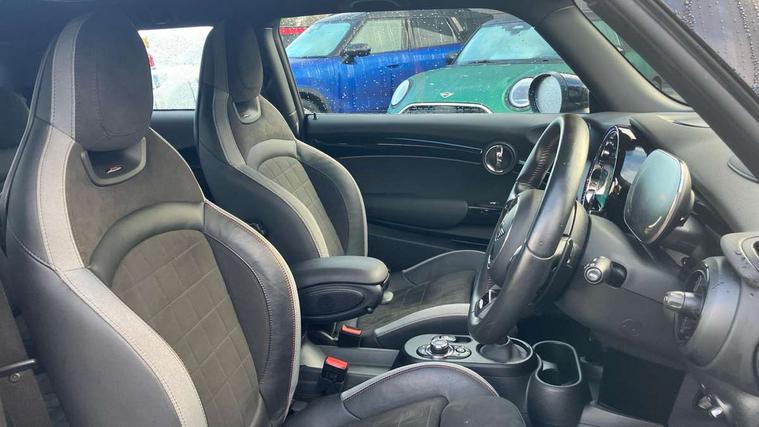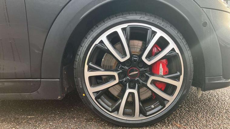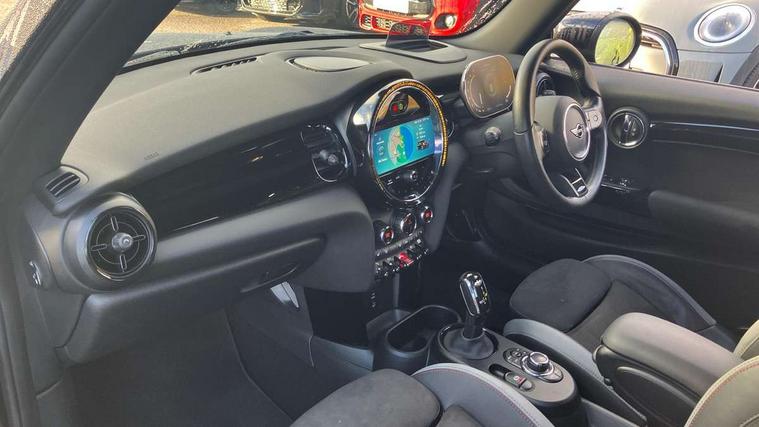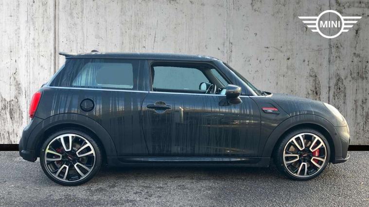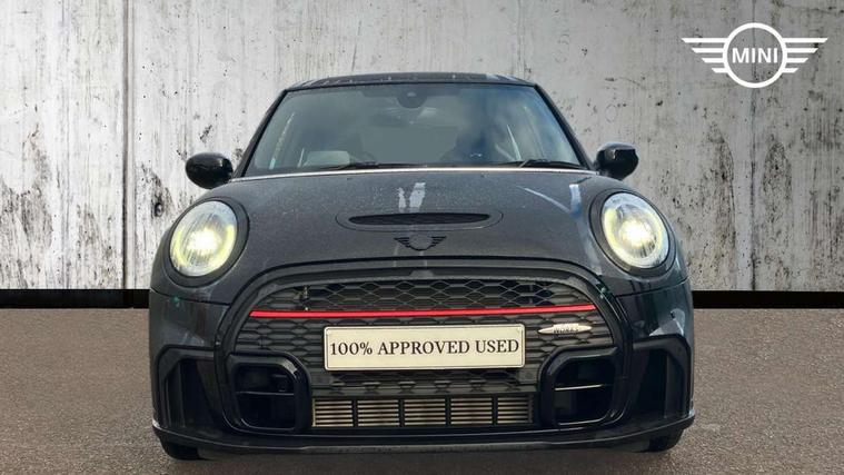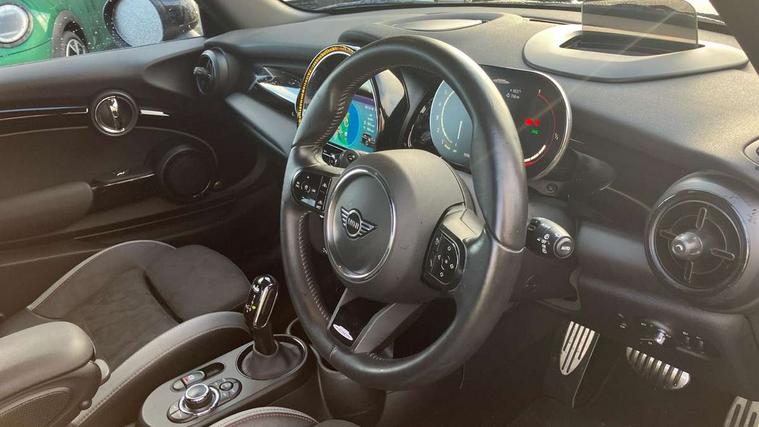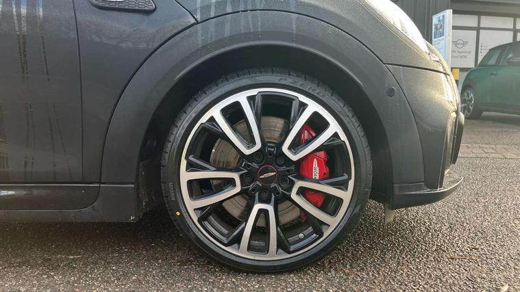 Apple CarPlay, Automatic start/stop function with brake energy recuperation, Compatible mobile phone bluetooth with audio streaming, Cruise control with brake assist, Electro-mechanical speed dependant steering assistance, Flexible car sharing preparation, Instrument cluster, MINI Driving Modes - centre toggle switch to control driving setting (sport, mid and green), Mini E-call, MINI TeleServices, On board computer, Rear park distance control, Service interval indicator, Double Vanos system, Eight speed steptronic sport transmission, with gearshift paddles, Fully variable valve control, High precision injection, Performance Control, 8.8" touchscreen with LED ring, FM tuner and DAB digital radio, 3rd brake light, Automatic headlight activation switch, Bonnet scoop, Dynamic brake lights, Electric front windows, Heated rear window, Heated windscreen washer jets, JCW Aerodynamic kit - Front and rear bumpers with sporty JCW styling and part-painted side sills with MINI John Cooper Works door sill finishers, John Cooper Works logo above an individual grille strut in Chilli Red, John Cooper Works rear spoiler, LED headlight with closed ring and daytime driving lights, Radiator grille piano black border with honeycomb structure in black matt, Rain sensor window wipers, Rear fog lights, Rear LED lights with union jack design, Rear window wiper, Side scuttle panel with integrated indicator, Side scuttle with MINI John Cooper Works logo in black high-gloss with red border, Sun/heat protection glass, Two central exhaust tailpipes with chrome finisher, White indicator lenses, 12V Accessory socket in centre console, 2 seat bench in 2nd row, 4 lashing eyes in luggage compartment, 60/40 split folding rear seat, Anthracite headliner including grab handles and clothes hooks, Carbon black colour line - Knee roll and door armrest, Chrome interior highlights, Cupholders, Front and rear isofix with front passenger airbag deactivation, Front floor mats in velour, Glove compartment, Height and length steering column adjustment, Interior lighting with 12 different colours across the dashboard, underneath door bezel with illuminated laser-engraved design on central display, JCW Sport seats with integrated headrests, adjustable thigh support and John Cooper Works logo, Leatherette gearshift lever and handbrake gaiters, LED reading lights, vanity mirror lights, front foot well light and spotlight on front seats, Manual air conditioning, Mechanical seat adjustment - forward/back & backrest for front seats and driver seat height adjust, Multifunction steering wheel, Passenger seat height adjuster, Rubberised stainless steel pedals, Single front passenger seat, Storage compartments in doors, Storage pocket on back of front seats, Sunvisors with vanity mirrors, Walknappa leather steering wheel with grey seam and John Cooper Works badge on Piano Black lower steering wheel spoke, Navigation pack without Apple Carplay - Mini Hatchback, Piano black exterior pack - JCW, 3 point seatbelts on all four seats, 4-piston fixed-calliper brakes front, 6 Airbags - front, side, head and seat belt tensioners, Anti-lock braking system (ABS), DSC - Dynamic Stability Control, Front and rear disc brakes, Red brake callipers with John Cooper Works logo, Single tone fanfare horn, Tyre pressure monitoring system, Alarm system with tilt sensor, monitoring doors, bonnet interior and tailgate, Electronic vehicle immobiliser, Start/stop toggle with keyless go, Tool kit,