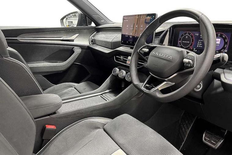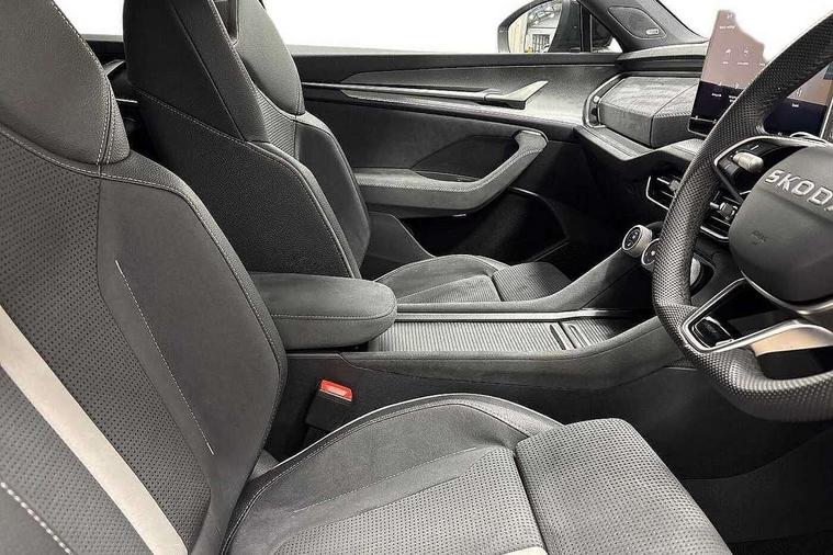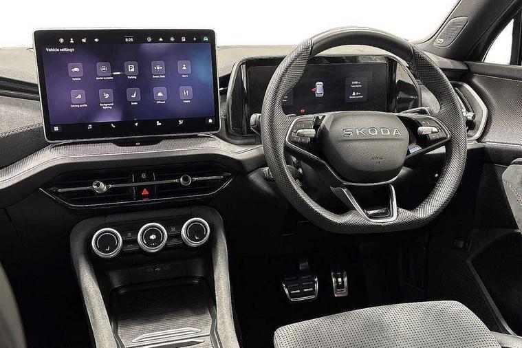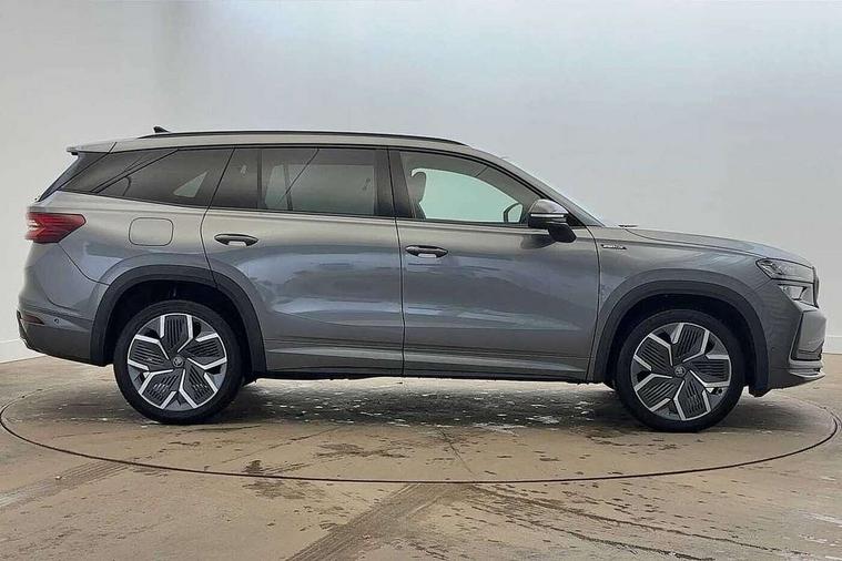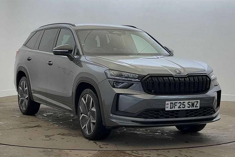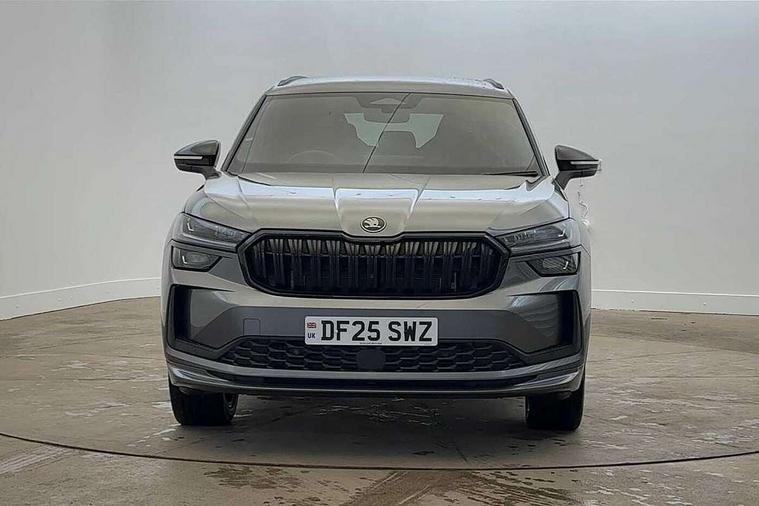 13" satellite navigation touchscreen display, Blind spot detection with door exit warning, Bluetooth system, ChatGPT functionality, Driver alert - Fatigue and drowsiness monitor, Dry display cleaner, Emergency call, Front and rear parking sensors, Front cross traffic assist, Lane assist, Off road modes, PAS, Rear traffic assist, Tailgate unlocking from outside, Traffic sign recognition, USB C Port x 2 in front centre console, Virtual Cockpit - 10.25" digital display, Voice control system, Wireless charging for two smartphones (15W) with cooling function, Wireless SmartLink for Apple CarPlay and Android Auto, Stop/start function, 2x USB-C in the rear, DAB Digital radio, Aero front windscreen wipers with intermittent function, Auto dimming rear view mirror, AWL (all weather lighting) and all weather light with cornering function, Black diffuser and decorative tailpipe with a unique dark chrome finish, Black roof rails, Black sports styling including front grille and window surrounds, Black wheel arch surrounds, Body colour door handles, Cornering light and poor weather light, Electric folding /adjustable/separted heated/folding door mirrors, auto dimming with boarding sports and memory function, Electric front and rear windows, Exterior black decorative trims, Front and rear sports bumpers including lower rear chrome strip, Gloss black door mirrors, Gloss black window frame and D pillar, Heat insulating glass in windshield, Heated rear window, Ice scraper in fuel tank cap, LED daytime running lights, LED third brake light in rear spoiler, Light assistant with automatic headlight control and coming home feature, Logo projection in door mirrors, Privacy glass, Rear roof spoiler, Rear side wing doors, Rear window wiper, Red decorative strip between rear LED lights, Safety reflectors on front and rear doors, Sportline badge on front fenders, Tailgate lettering in Black, Unique dark chrome design logo on alloy wheels, Window control switches with black trim, Windscreen wipers with rain sensor, Without engine designation, 1.5l bottle holder points in all door, 1x centre rear reading light, 2 seat bench in 3rd row, 3 configurable smart dials with 32mm coloured display, 3 seat bench in 2nd row, 4 foldable roof handles with rear coat hooks, Aluminium pedals, Ambient interior lighting - Dashboard, front-door stowage compartments, front and rear door panels and footwell lighting, Automatic gear selector on steering column, Chrome interior door handles, Driver/front passenger reading lights, Fabric headlining, Fixed bench 40:60:40 split folding backrests, Front and rear floor mats, Front centre armrest with jumbo box storage compartment, cup holder and 12V socket, Front sport seats, Height adjustable front headrests, Interior black decorative trims, Isofix child seat fittings in outer middle row rear seats and front passenger with top tether, Manually adjustable steering column, Pollen filter, Rear centre armrest with cupholders, Rear seat boot backrest release, Single front passenger seat, Skoda lettering on steering wheel, Storage pocket including mobile phone pockets on the backs of the front seats, Sunvisors with illuminated vanity mirrors, Three rear height adjustable headrests, Ticket holder on A Pillar, Tri zone climate control, Umbrella in door panel x1 made from sustainable materials, Upper and lower glovebox with card holder and coin compartment, USB C port by rear view mirror for charging only (15W), Acoustic package - Kodiaq, Performance package - Kodiaq, Sportline design selection pack - Kodiaq, Auto door release and activation of warning lights in the event of an accident, Driver and front passenger airbag with knee airbag and front passenger airbag deactivation, Electric child locks, Electronic parking brake, ESC (incl. ABS+EMD+MSR+ASR+EDL+HBA+DSR+RBS+ESBS+MCB+TSA+XDS), Front assist with braking reaction to vehicles, pedestrians and cyclists, Front disc brakes, Fuel cut off safety device, Height adjustable front 3 point seatbelts + pretensioners, Hill hold assist, Junction assist with automatic emergency braking, Rear disc brakes, Safety vest holder in door, Seat belt reminder for all seats, Three point rear seat belts, Two tone horn, Tyre pressure monitor, Alarm with interior monitoring and tilt sensor with safe function, Anti-theft wheel bolts, Immobiliser, Remote central locking with 2 keys, 20" Rila anthacite polished alloy wheel with black matte aero covers,
