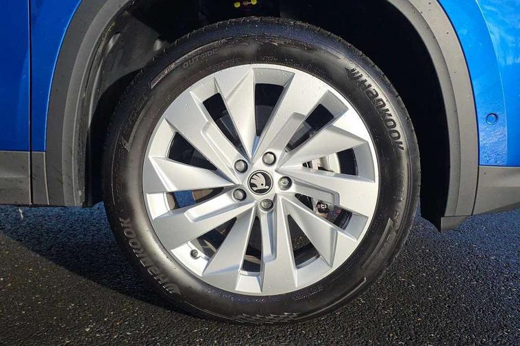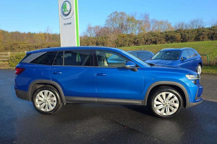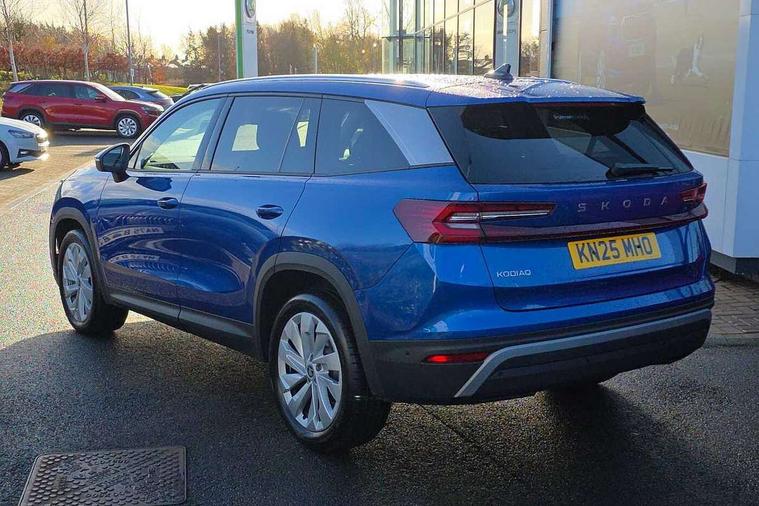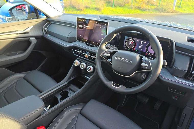 13" satellite navigation touchscreen display, Blind spot detection with door exit warning, Bluetooth system, ChatGPT functionality, Driver alert - Fatigue and drowsiness monitor, Dry display cleaner, Emergency call, Front and rear parking sensors, Front cross traffic assist, Lane assist, PAS, Rear traffic assist, Tailgate unlocking from outside, Traffic sign recognition, USB C Port x 2 in front centre console, Virtual Cockpit - 10.25" digital display, Voice control system, Wireless charging for two smartphones (15W) with cooling function, Wireless SmartLink for Apple CarPlay and Android Auto, Stop/start function, 2x USB-C in the rear, DAB Digital radio, Aero front windscreen wipers with intermittent function, Auto dimming rear view mirror, AWL (all weather lighting) and all weather light with cornering function, Black wheel arch surrounds, Body colour bumpers, Body colour door mirrors and handles, Cornering light and poor weather light, Electric folding /adjustable/separted heated/folding door mirrors, auto dimming with boarding sports and memory function, Electric front and rear windows, Exterior black decorative trims, Heat insulating glass in windshield, Heated rear window, Ice scraper in fuel tank cap, Invisible tailpipe, LED daytime running lights, LED third brake light in rear spoiler, Light assistant with automatic headlight control and coming home feature, Logo projection in door mirrors, Privacy glass, Rear roof spoiler, Rear side wing doors, Rear window wiper, Red decorative strip between rear LED lights, Safety reflectors on front and rear doors, Unique dark chrome design logo on alloy wheels, Window control switches with black trim, Windscreen wipers with rain sensor, Without engine designation, 1.5l bottle holder points in all door, 1x centre rear reading light, 2 seat bench in 3rd row, 3 configurable smart dials with 32mm coloured display, 3 seat bench in 2nd row, 4 foldable roof handles with rear coat hooks, Ambient interior lighting - Dashboard, front-door stowage compartments, front and rear door panels and footwell lighting, Automatic gear selector on steering column, Chrome interior door handles, Driver/front passenger reading lights, Fabric headlining, Fixed bench 40:60:40 split folding backrests, Front and rear floor mats, Front centre armrest with jumbo box storage compartment, cup holder and 12V socket, Height adjustable front headrests, Isofix child seat fittings in outer middle row rear seats and front passenger with top tether, Manually adjustable steering column, Pollen filter, Rear centre armrest with cupholders, Rear seat boot backrest release, Single front passenger seat, Skoda lettering on steering wheel, Storage pocket including mobile phone pockets on the backs of the front seats, Sunvisors with illuminated vanity mirrors, Three rear height adjustable headrests, Ticket holder on A Pillar, Tri zone climate control, Umbrella in door panel x1 made from sustainable materials, Upper and lower glovebox with card holder and coin compartment, USB C port by rear view mirror for charging only (15W), Exterior styling pack - Kodiaq, Auto door release and activation of warning lights in the event of an accident, Driver and front passenger airbag with knee airbag and front passenger airbag deactivation, Electric child locks, Electronic parking brake, ESC (incl. ABS+EMD+MSR+ASR+EDL+HBA+DSR+RBS+ESBS+MCB+TSA+XDS), Front assist with braking reaction to vehicles, pedestrians and cyclists, Front disc brakes, Fuel cut off safety device, Height adjustable front 3 point seatbelts + pretensioners, Hill hold assist, Junction assist with automatic emergency braking, Rear disc brakes, Safety vest holder in door, Seat belt reminder for all seats, Three point rear seat belts, Two tone horn, Tyre pressure monitor, Anti-theft wheel bolts, Immobiliser, Remote central locking with 2 keys,