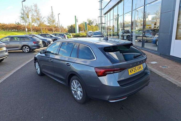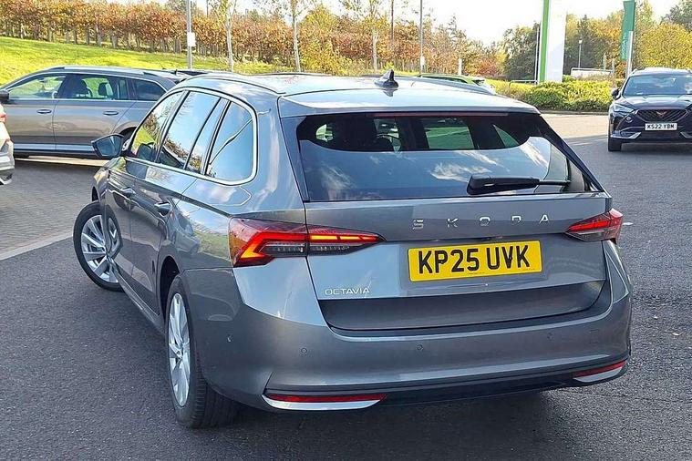 1x USB Typc C port in rear view mirror, 4x USB Type C ports - 2x in front centre console and 2x in rear (45W), Drive mode selection, Driver fatigue sensor, eCall emergency system, Electro-mechanical power steering, Front assist system, Traffic jam assist, Traffic sign recognition, Turn Assist, Virtual Cockpit - 10.25" digital display, Voice control system, Wireless charging (15W) with cooling function, Wireless SmartLink for Apple CarPlay and Android Auto, 13" touchscreen display with navigation, DAB Digital radio, Aero front windscreen wipers with intermittent function, Auto dimming rear view mirror, Body colour bumpers, Body colour door mirrors and handles, Chrome grille surround, Chrome roof rails, Chrome strip in lower front bumper, Chrome window surrounds, Electric front and rear windows, Heated rear windscreen, High level third brake light, Ice scraper in fuel cap, LED daytime running lights, LED Headlights, Logo projection in front doors, Rain and light sensors, Rear fog light on one side, Rear privacy glass, Rear side wing doors, Rear spoiler, Rear window wiper, 12 volt socket in boot, 3 rear headrests, 3 seat bench in 2nd row, 4 foldable roof handles, Electric auxiliary air heater, Front head restraints, Heated front seats, Illuminated glovebox, Interior door handles in dark chrome, Jumbo Box storage, Luggage compartment lighting x2 lights, Mechanical rear seat release from boot, Single front passenger seat, Steering wheel in black leather with black stitching, Storage compartments in left and right of boot, Sun visors with mirrors, Sunglasses storage, Ticket holder, Umbrella in door panel, Unsplit rear bench seat, split folding backrest with centre armrest with cupholder, Comfort package - Octavia Estate, Simply clever package premium with Storage compartment under passenger seat - Octavia, 3x3 point rear seat belts, Alarm with interior monitoring, tilt sensor and back up horn, Curtain airbags and front side airbags, Driver and front passenger airbags, Drivers knee airbag, Electronic parking brake, ESC including ABS, EBV, MSR, ASR, EDS, HBA, DSR, Front central airbag, Hill hold assist, ISOFIX on front passenger seat and outer rear seats, Passenger airbag deactivate switch, Three point seat belts in front and rear, Two tone horn, Tyre pressure monitor, Visual and acoustic seat belt reminder, Warning reflectors in front door, Anti-theft wheel bolts, Keyless start/stop, Remote central locking, Chrome air vent surrounds,