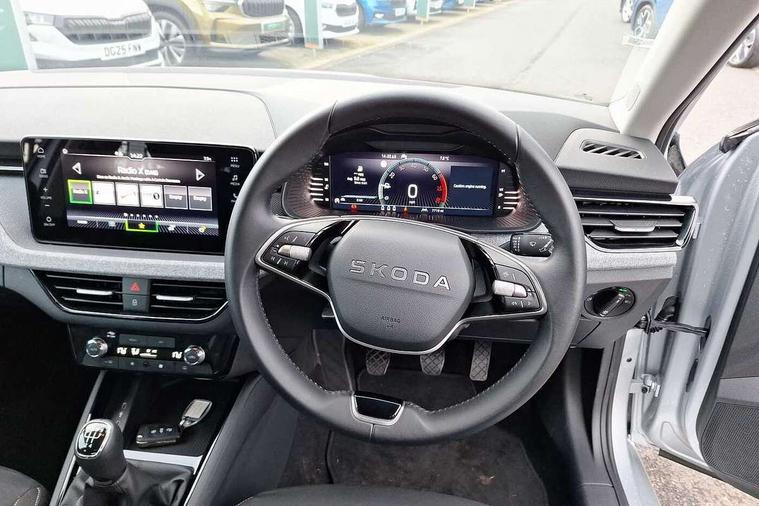 Advanced driver attention and drowsiness monitor, Bluetooth, e-Call (emergency call), Front assist system, PAS, Rear parking sensors, Rear view camera, Speed limiter, Tailgate, Traffic sign recognition, Virtual Cockpit - 10.25" digital display, Voice control system, Wireless smartlink, 4 USB C ports, 8 Speakers, 9.2" Skoda navigation display, DAB radio, Auto dimming rear view mirror, Automatic headlamp activation with Coming home and Leaving home feature, Automatic high/low beam, Body colour bumpers, Body colour door mirrors and handles, Chrome moulding around grille, Front and rear electric windows, Full LED headlights, Heated rear window, LED 3rd brake light, LED brake lights, LED daytime running lights, LED front turning lights, LED high beam, LED low beam, LED taillights, Rear LED fog light, Rear side wing doors, Rear wiper, Tinted windows, Unique dark chrome design logo on alloy wheels, 12V socket in luggage compartment, 3 seat bench in 2nd row, Black / Grey armrest stitching, Black hotstamping, Cargo elements, Chrome inner door handles, Door inserts in satin black, Driver and passenger sun visors with vanity mirror, Dual zone climate control, Front and rear roof lights, Front centre armrest, Front head restraints, Glasses storage in roof liner, Height adjustable driver seat, Height adjustable passenger seat, Ice scraper, Illuminated glove compartment, Inner circulation control with pollen filter, ISOFIX for front passenger seat, Isofix preparation for back seats, Leather gearknob and handbrake lever, Loft cloth upholstery, Luggage net under rear parcel shelf, Manual lumbar support for front seats, Net package and top tether hooks in boot space, Pearl grey ceiling, Pocket on the back of both front seats, incl. mobile phone pockets, Single front passenger seat, Skoda lettering on steering wheel, Textile floor mats, Third rear headrest, Ticket holder, Top tether for front passenger seat, Umbrella in driver's door, 3x3 point rear seatbelts, ABS, Child locks, Curtain airbags and front side airbags, Disc brakes, Driver and front passenger airbags, ESP, Hill hold control, Manual leather parking brake, One tone horn, Passenger airbag switch off function, Seatbelt reminder for driver and front passenger, Tyre pressure monitoring system, Anti theft alarm system with interior monitoring, backup horn and towing protection, Anti-theft wheel bolts, Remote central locking with 2 remote folding keys, SAFE function for remote central locking, Decord pad, door inserts Kota uni,