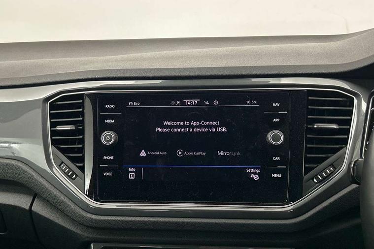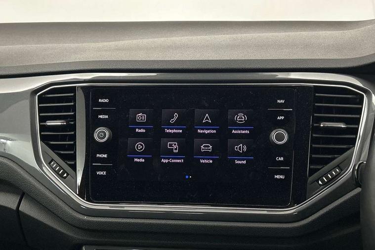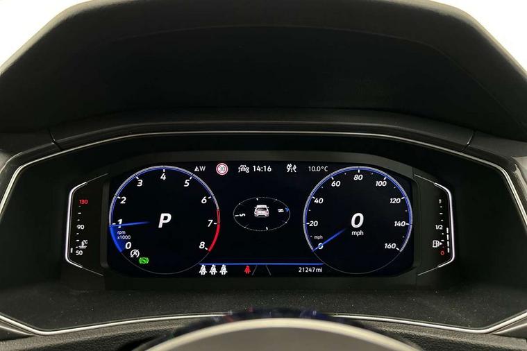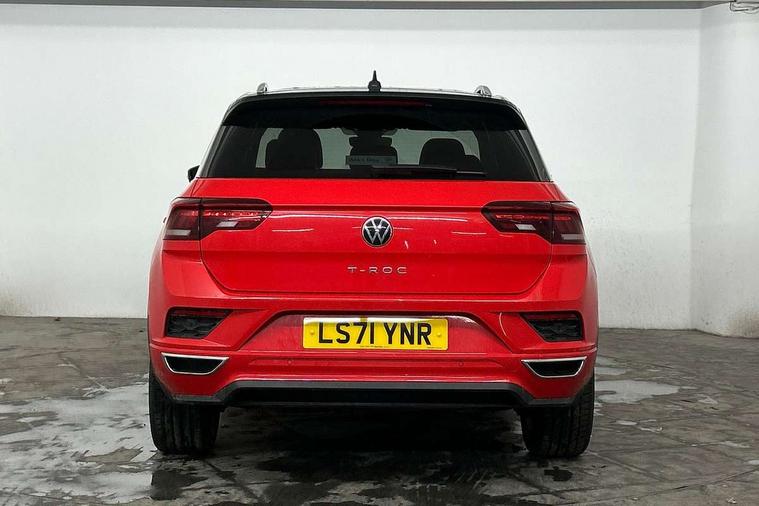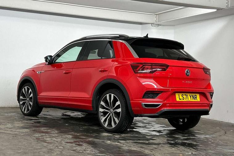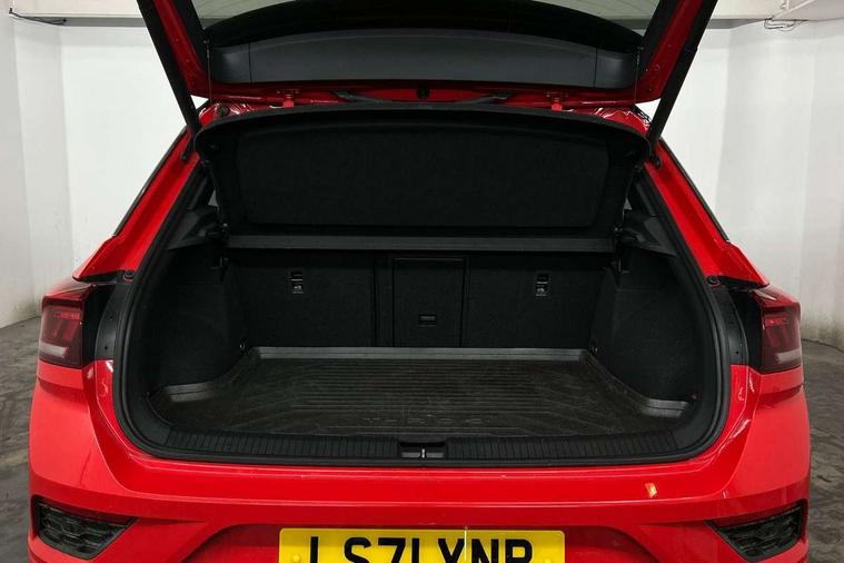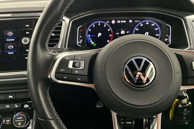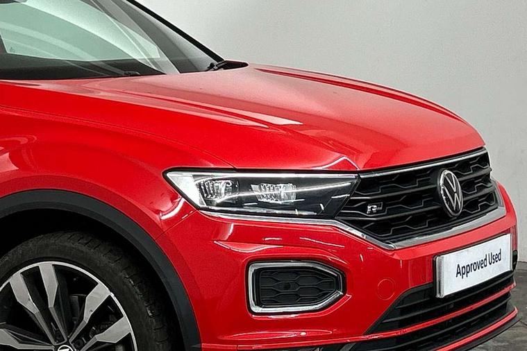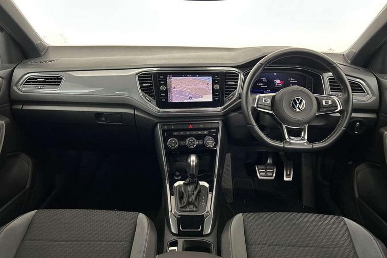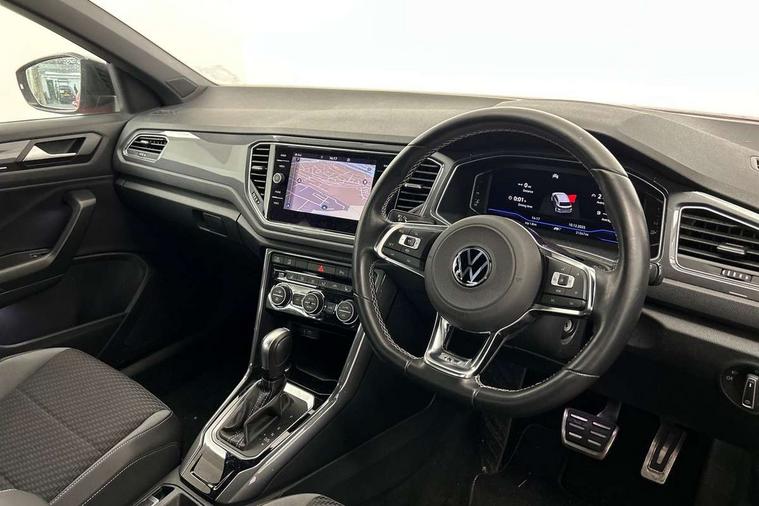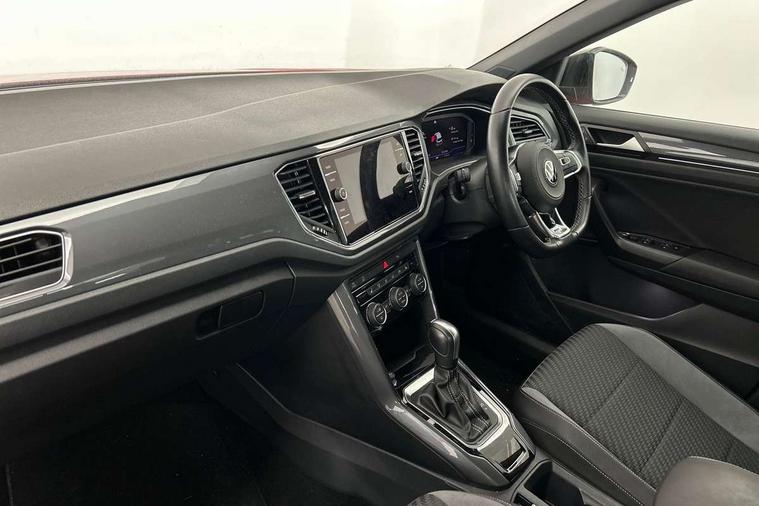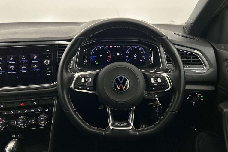 'Lights On' Reminder warning buzzer, Adaptive cruise control, Bluetooth telephone and audio connection for compatible devices, Car information display, Digital Cockpit Pro - Active info display, Driver alert system with audible and visual fatigue detection system, Driver tips and journey analysis, Emergency call service, Lane assist with warning text instrument cluster, Modified key software - reduce switch off time for key status change to Long no motion, Multifunction camera, Multifunction computer with visual gear change recommendation for fuel consumption, Navigation system discover media including streaming and internet, Service interval indicator, Think blue trainer driver tips and journey analysis, Traffic sign recognition, Voice activation, Warning sound and light for front seatbelts unfastened, Wireless app connect for apple carPlay, Battery regeneration during braking, Rear shock absorption for sports version, Start/stop function with battery regeneration, DAB Digital radio, Disk brakes in front, Diversity antenna for FM reception, Music playback - MP3, WMA and AAC files, Premium USB cable in choice of either Apple or Android smartphone compatibility, SD card slot, Simultaneous pairing of 2 compatible mobile devices, SMS functionality - read, compose and send SMS messages using touch-screen display, Storage compartment with longitudinal and height adjustable in armrest and two rear air vents, Three route options - Fast, Short, Eco, Title and cover art display, USB-C Interface and USB charging socket, Auto dimming interior rear view mirror, Automatic coming/leaving home lighting function and daytime running lights, Automatic hazard lights activation under emergency braking, Black grained lower door protectors, Body colored door lower parts, Body colour door handles, Body colour rear roof spoiler, Chrome effect left and right trapezoid exhaust tailpipe fascia surround, Chrome plated moldings, Chrome trim on upper and lower radiator grille, Dusk sensor, Dynamic headlight range control with self adjusting whilst driving, Electrically foldable, adjustable and heated door mirrors with puddle lights and reverse activated kerb-view adjustment on passenger's door mirror, External USB type C socket and charging sockets, Front and rear electric windows, Front fog lights with static cornering function, Front windscreen wiper with intermittent wipe and 4 position delay, Fully galvanised body, Heated rear window, Heated windscreen washer jets, High level 3rd brake light, LED darkened rear light clusters, LED headlamps with automatic range adjustment and unique signature LED separate daytime running lights, LED rear number plate lights, LED tail lamp rear comination lamps, Privacy glass, R-Line design body coloured bumpers, Rain sensor, Rear tinted glass from B-pillar backwards approx 65% tinted, Rear wash/wipe with intermittent wipe setting, Silver anodised roof rails, Volkswagen roundel, 12V socket in centre console storage area, 3 rear head restraints, 4 load lashing points in luggage compartment, Aluminium pedals, Black roof lining and sun visors, Branded points of interest, Carbon flag cloth upholstery, Chrome plated radiator grille inserts, air vent surrounds and light switch surrounds, Climate control - 2 zone electronic air conditioning with automatic air recirculation and allergy filter, Door and side trim panel, Door and side trim panel in foam film, insert in leatherette, Drawer under drivers seat, Front + rear carpet mats, Front centre armrest, Front cupholders x 2, Front seat back storage pockets, Front sports seats with R-Line logo on seat backrest, Glovebox, Heated front seats, Height adjustable front seats, Height/reach adjust steering wheel, Instrument lighting, white adjustable panel illumination, Interior light delay, Interior light in footwell, Isofix easy fit child seat preparation for 2 outer rear seats, Leather gearshift knob, Leather multi function sport steering wheel with gear change selection via paddle shift on steering wheel, LED interior light with switch off delay/dimmer and 2 front/rear LED reading lights, Load through provision with single cup holder when folded down, Luggage compartment cover, removable, Luggage compartment lighting, R Line badge, Scuff plates in door apertures, Split folding rear seat backrests with centre armrest, Stainless steel pedals, Storage compartment in left and right luggage area, Storage compartment in rear doors, Storage compartments in driver and front passenger doors, Sunvisors with illuminated vanity mirrors, Unique R Line door sill protectors, White ambient lighting, R line styling pack - T-Roc, Winter pack - T-Roc, 3 rear three point seatbelts, ABS, Curtain airbags, Driver and front passenger safety-optimised head restraints, Drivers and front passengers airbags with passengers deactivation switch, Drivers seatbelt reminder, Electronic parking brake with auto hold, Electronic stability control (ESC) includes ASR, EDL, EDTC and trailer stabilisation function, Front assist with city emergency braking and pedestrian monitoring, Front seat side impact airbags, Hill start assist, Predictive pedestrian protection, Rigid safety cell with front and rear crumple zones, Single tone horn, Three point height adjust front seatbelts + pretensioners, Tyre pressure loss indicator, Ventilated front and rear disc brakes, Volkswagen roadside assistance, Alarm with remote central locking and interior protection, Electronic engine immobiliser, Remote central locking with SAFELOCK, radio remote control with 2 remote control folding keys, Shadow grey decorative inserts in dash, centre console and door panel, 19" Suzuka alloy wheels with low rolling resistance tyres and anti wheel bolts,