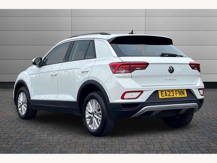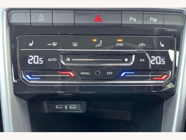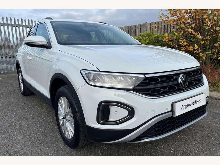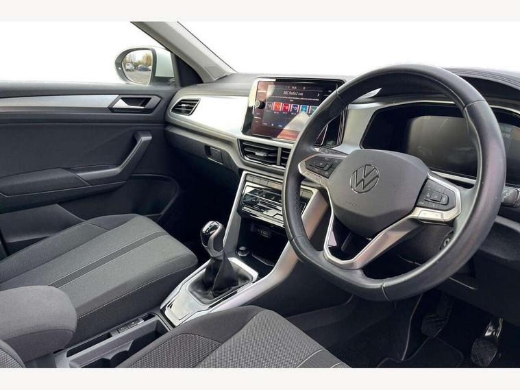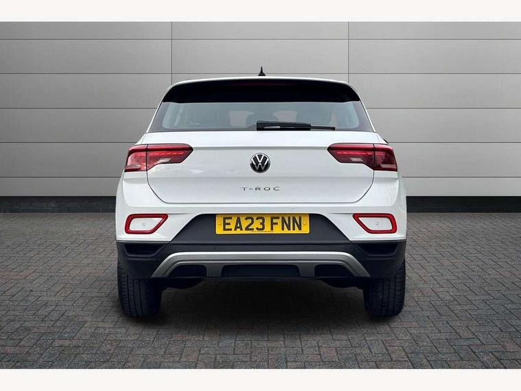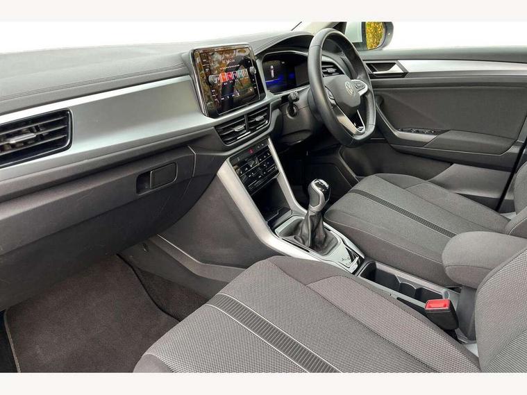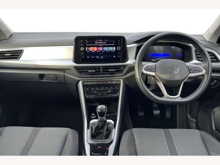 Bluetooth mobile phone interface, Driver alert system with fatigue detection, Driver tips and journey analysis, Emergency call service, Lane keeping system Lane Assist, Modified key software - reduce switch off time for key status change to Long no motion, Online services, Park assist including front and rear parking sensors, Power assisted speed sensitive steering, Service interval indicator, Tailgate/trunk lid release from outside, Think blue trainer driver tips and journey analysis, Warning sound and light for front seatbelts unfastened, Wireless app connect, Battery regeneration during braking, Front shock absorption, Rear shock absorption chassis with increased ride height, Start/stop function with battery regeneration, DAB Digital radio, Diversity antenna for FM reception, Front and rear 6 speakers, Music playback - MP3, WMA and AAC files, Premium USB cable in choice of either Apple or Android smartphone compatibility, SD card slot, Simultaneous pairing of 2 compatible mobile devices, Title and cover art display, We Connect and We Connect Plus functionality, 3rd brake light, Auto dimming interior rear view mirror, Automatic hazard lights activation under emergency braking, Automatic headlight control with LED separate daytime running lights with coming/leaving home function, Black roof rails, Body coloured bumpers and radiator grille with chrome trim and front fog lamps with chrome bezel, Body coloured exterior mirror housings and door handles, Extended roof spoiler, Exterior mirrors aspherical on driver side, convex on front passenger side, External USB type C socket and charging sockets, Front windscreen wiper with intermittent wipe and 4 position delay, Heated rear window, LED Headlights, LED rear combination lamps, LED rear number plate lights, LED tail lamp rear comination lamps, Power windows with comfort operation and circuit breaker, Rain sensor, Rear exhaust tailpipe, Rear fog light on one side and reversing lights on both sides, Rear side wing doors, Rear wash/wipe with intermittent wipe setting, Remote electrically foldable door mirrors, puddle lights and reverse activated passenger's door mirror, 12V power socket in centre console, 3 rear head restraints, 3 seat bench in 2nd row, 4 load lashing points in luggage compartment, Air care climatronic air conditoning system with active combination filter and 2-zone temperature control, Ambient lighting with mirror logo projection, Cloth upholstery, Door and side trim panel in cloth, Drawer under drivers seat, Driver/front passenger seat height adjustment, Front centre armrest, Front comfort sports seats, Front cupholders x 2, Front reading light, Instrument lighting, white adjustable panel illumination, Interior light delay, Isofix child seat preparation, Leather gearshift handle, Load-through provision with cup holder when folded down ('Unsplit rear seat bench, split folding backrest, with centre armrest), Luggage compartment lighting, Lumbar support for driver's and front passengers seat, Non-folding front passenger seat backrest, Single front passenger seat, Storage compartment in left and right luggage area, Storage compartment in rear doors, Storage compartments in driver and front passenger doors, Sunvisors with illuminated vanity mirrors, Variable boot floor, height adjustable and removable, Driver assistance pack without proactive passenger protection - T-Roc, 3 point height adj front seatbelts + pretensioners, 3 point seatbelts in outer rear with ECE label, ABS, Child locks on rear doors, Driver and front passenger airbag with front passenger airbag deactivation, Driver and front passenger safety-optimised head restraints, Drivers seatbelt reminder, Electronic parking brake, Electronic Stability Control (ESC) inc EDL (Electronic Differential Lock) and ASR (Traction Control), Front and rear passengers curtain airbag system including front side airbags, Front assist with city emergency braking and pedestrian monitoring, Front disc brakes, Front seat side impact airbags, Hill start assist, Predictive pedestrian protection, Rear disc brakes, Single tone horn, Tyre pressure loss indicator, Volkswagen roadside assistance, Alarm with interior protection, Anti-theft alarm system with interior monitoring, backup horn, and towing protection, Remote central locking with SAFELOCK, radio remote control with 2 remote control folding keys, Pewter matt decorative inserts for intrument panel, centre console and door panels at the front, Trims for alloy wheels,