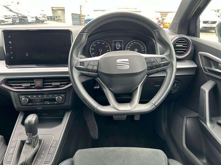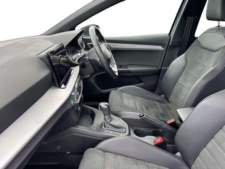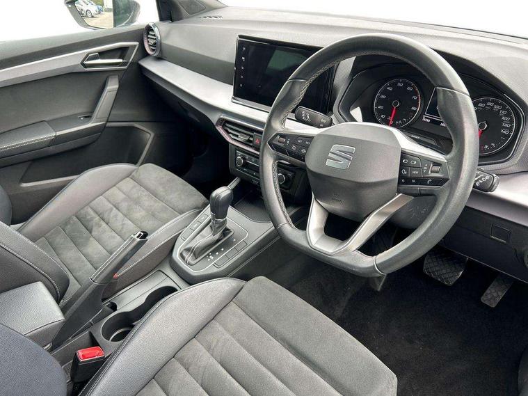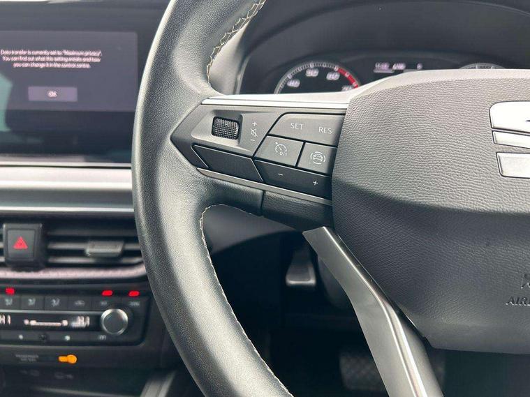 'Lights On' Reminder warning buzzer, 8" Digital cockpit, 9.2" touchscreen navigation system with type C USB socket, Voice control and DAB/AM/FM radio, Auto start and stop system, Bluetooth audio streaming with handsfree system, Digital clock, E-call, Full link smartphone integration with mirror link, wireless apple carplay, Google android auto + USB Type C cable for apple and android devices, Lane assist, Low fuel warning light, Outside temperature gauge, Power Steering, Rear parking sensor, Seat connect with safety, service, remote and online, SEAT logo boot release, Speed limiter, Trip computer, Comfort suspension, Auxiliary input socket, Radio/MP3 player, SD card slot, Steering wheel mounted controls, Anti theft roof antenna, Atom grey door mirrors, Auto dimming rear view mirror, Automatic rain sensing wipers, Body colour bumpers, Body colour door handles, Chrome window surround and upper grille surround, Dark tinted rear windows, Electric adjustable/heated/folding door mirrors, Electric front windows, Electric headlight adjustment, Electric rear windows, Front/rear fog lights, FULL LED automatic headlights with dynamic headlight range control, coming and leaving home, LED daytime running lights, LED tail lights, Rear side wing doors, Rear wiper, Third brake light, 3 seat bench in 2nd row, 60/40 split folding rear seat, Ambient interior lighting, Chrome detailing and black headlining, Comfort seats, Dual zone climate control with combination filter, Front centre armrest, Front courtesy lights, Front cupholders x 2, Front reading lights, Gear shift indicator, Glovebox, Height adjustable front and rear headrests (five), Height adjustable front seats, Height/reach adjust steering wheel, Illuminated air vent surrounds, Illuminated boot, Instrument lighting with brightness control, Isofix, Leather multifunction flat bottomed sports steering wheel, Microsuede cloth upholstery, Passenger sunvisor, Single front passenger seat, Storage pockets on back of front seats, Sunvisors with mirror and driver side card holder, 3 point seatbelts on all 3 rear seats, ABS, Active front headrests, Child locks on rear doors, Electronic stability control, Energy recovery system, Front assist forward collision warning and autonomous emergency braking, Front driver and passenger side airbags with curtain airbag and front passenger airbag deactivation, Hill hold control, Multi-Collision braking, Seat belt reminder for front and rear seats, Tiredness recognition system, Tyre pressure monitoring system, Electronic engine immobiliser, KESSY Keyless entry and go, Locking wheel bolts, Perimeter alarm and interior monitoring with backup horn and tow away protection, Remote central locking + deadlocks, 17" Dynamic machined alloy wheels in Nuclear grey,