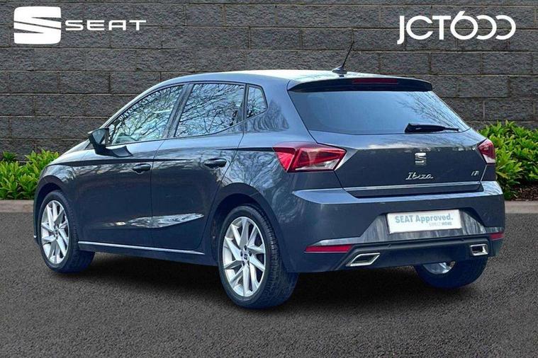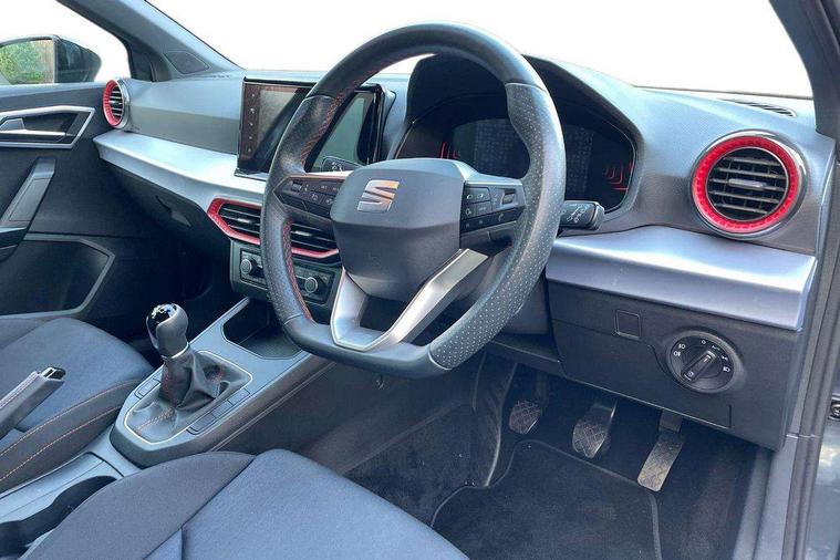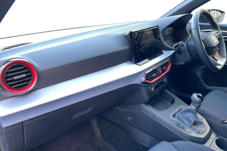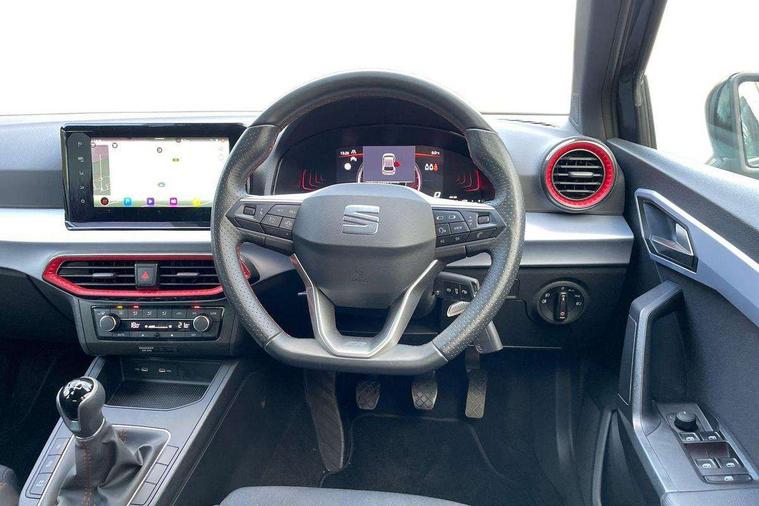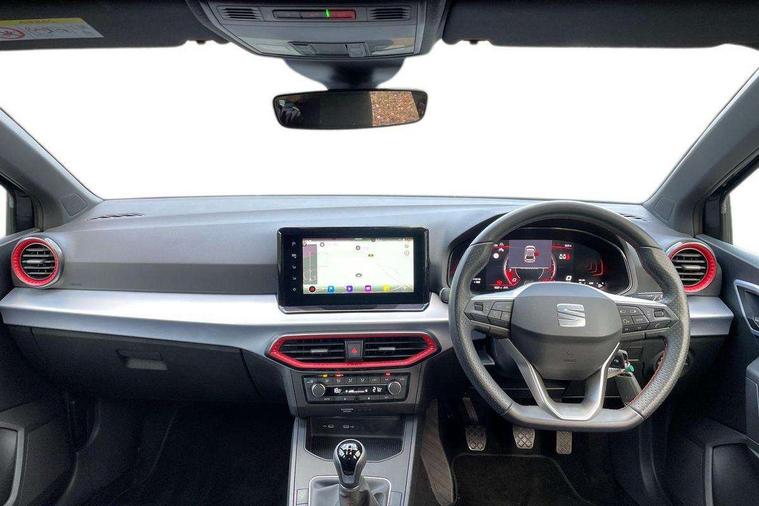 'Lights On' Reminder warning buzzer, 8" Digital cockpit, 9.2" touchscreen navigation system with type C USB socket, Voice control and DAB/AM/FM radio, Auto start and stop system, Bluetooth audio streaming with handsfree system, Digital clock, E-call, Full link smartphone integration with mirror link, wireless apple carplay, Google android auto + USB Type C cable for apple and android devices, Lane assist, Low fuel warning light, Outside temperature gauge, Power Steering, Rear parking sensor, Seat connect plus with safety, service, remote and online, SEAT logo boot release, Speed limiter, Traffic sign recognition, Trip computer, Sports suspension, Auxiliary input socket, Radio/MP3 player, SD card slot, Steering wheel mounted controls, Anti theft roof antenna, Auto dimming rear view mirror, Automatic rain sensing wipers, Black door mirror caps, Body colour bumpers, Body colour door handles, Brilliant black window surrounds, Dark tinted rear windows, Electric adjustable/heated/folding door mirrors, Electric front windows, Electric headlight adjustment, Electric rear windows, Front/rear fog lights, FULL LED automatic headlights with dynamic headlight range control, coming and leaving home, LED daytime running lights, LED tail lights, Rear roof spoiler with FR twin exhausts, Rear side wing doors, Rear wiper, Third brake light, 3 seat bench in 2nd row, 60/40 split folding rear seat, Ambient interior lighting, Chrome detailing and black headlining, Cloth upholstery, Dual zone climate control with combination filter, Front courtesy lights, Front cupholders x 2, Front reading lights, Gear shift indicator, Glovebox, Height adjustable front and rear headrests (five), Height adjustable front seats, Height/reach adjust steering wheel, Illuminated air vent surrounds, Illuminated boot, Instrument lighting with brightness control, Isofix, Leather multifunction flat bottomed sports steering wheel, Passenger sunvisor, Single front passenger seat, Sports seats, Sunvisors with mirror and driver side card holder, Safety and driving pack (S) - Ibiza, 3 point seatbelts on all 3 rear seats, ABS, Active front headrests, Child locks on rear doors, Electronic stability control, Energy recovery system, Front driver and passenger side airbags with curtain airbag and front passenger airbag deactivation, Hill hold control, Multi-Collision braking, Seat belt reminder for front and rear seats, Tiredness recognition system, Tyre pressure monitoring system, Electronic engine immobiliser, Locking wheel bolts, Perimeter alarm and interior monitoring inc.backup horn, tow away protection and electronic engine immobiliser, Remote central locking + deadlocks, 17" Alloy wheels in Brilliant silver,