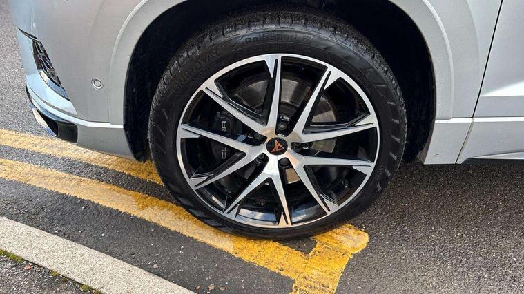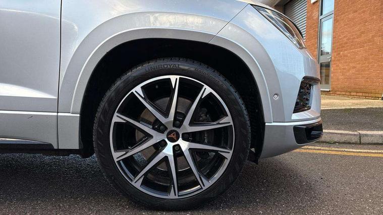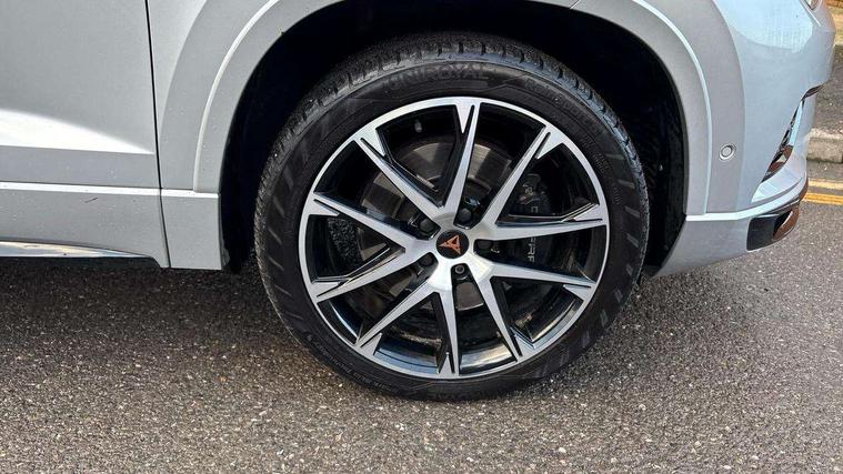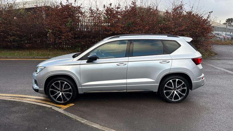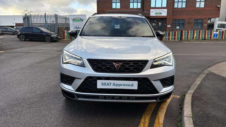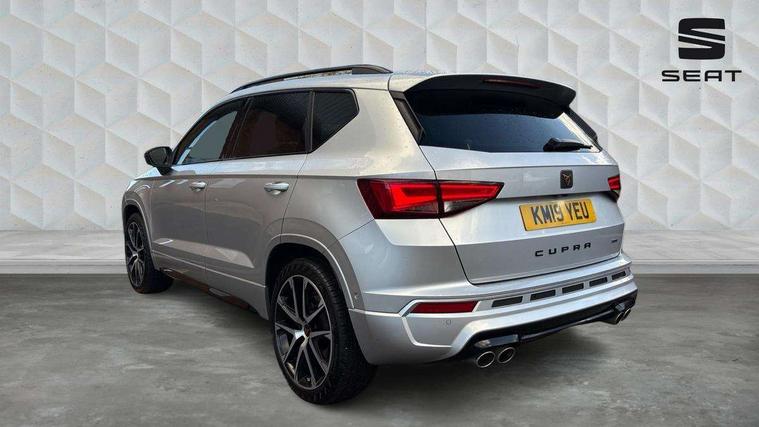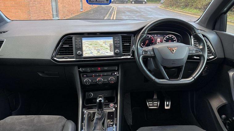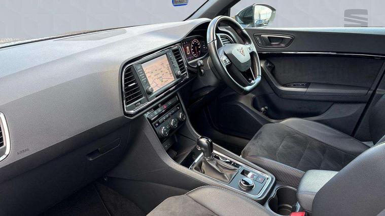 'Lights On' Reminder warning buzzer, 8.0" colour touchscreen with proximity sensor, Cruise control, Digital clock, Digital cockpit, Front assist city emergency braking and pedestrian protection, Full Link Smartphone Integration with Mirror Link, Apple Car Play, Google Android Auto, Low fuel warning light, Navigation system (incl. media system plus) - Dynamic route guidance feature with 3D Map display and 3D emblematic buildings, Outside temperature gauge, Park assist system with steering assist, Progressive power assisted steering, Rear view camera, RPM counter, SEAT Drive profile CUPRA, Self parking functionality (includes front and rear parking sensors), Top view camera, Trip computer, Wireless Smartphone charger, CUPRA sport suspension, XDS electronic differential lock, 10 GB hard disk, 2 additional USB ports in rear with storage net, 2 USB ports, 2x SD card slot, 8 Speakers, AM/FM radio, Aux-in socket, CD player, DAB digital audio broadcast, High resolution colour driver display, SEAT USB media cable, Steering wheel mounted audio/phone controls, Armrest with air outlet in rear, Automatic headlight adjustment, Black roof rails, Body colour door mirrors and handles, Body coloured wheel arch extensions, Dark tinted rear windows, Door mirrors with welcome CUPRA light silhouette, Electric adjustable/heated/folding door mirrors, Front and rear electric windows, Full LED headlights, Gloss black side window surrounds, High gloss black grille, Illuminated aluminium front door sill with CUPRA logo, LED daytime running lights, LED tail lights, Rear fog lights, Rear spoiler, Rear wash/wipe, Visible dual exhaust pipes, 12V power point front, 60/40 split folding rear seat, Adjustable front armrest with storage compartment, Advanced multicolour ambient light with LED interior light and LED illuminated glovebox, Alcantara upholstery + sports seats, Aluminium pedals, Ambient spot lighting and front footwell illumination, Black roof lining, Child seat ISOFIX attachment with rear outer seats includes top tether, Chrome dashboard detailing, Driver and passenger sun visor, covered and illuminated mirror, driver sun visor with card holder, Dual zone climate control, Four cargo rings in the boot, Front courtesy reading lights, Front cupholders, Front seat back storage pockets, Gear shift indicator, Height adjustable driver's seat, Height adjustable front headrests, Height adjustable passenger seat, Illuminated boot, Instrument lighting with brightness control, Rear armrest and easy back seat release mechanism from boot, Rear reading lights, Sports leather steering wheel + gearshift, Steering wheel gearshift paddles, Storage box under drivers seat, Convenience pack - Ateca, ABS, Active front headrests, Black brake callipers with CUPRA logo, Driver/Front Passenger airbags, Drivers knee airbag, Electronic parking brake with auto hold, Electronic stability control, Front and rear seatbelt reminder, Front passenger airbag deactivation, Front side airbags, Hill hold control, Tiredness recognition system, Traction control, Twin curtain airbags, Tyre pressure monitoring system, Central locking fuel filler cap, Keyless entry and go, Locking wheel bolts, Perimeter alarm with interior monitoring, Power locking and remote control with two foldable keys and opening boot selector, 19" Exclusive diamond cut alloy wheel,