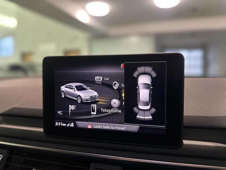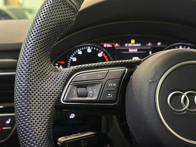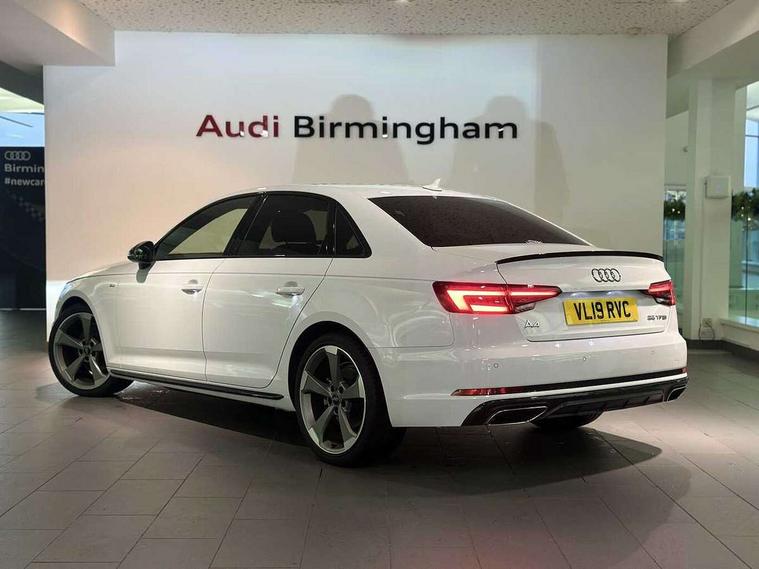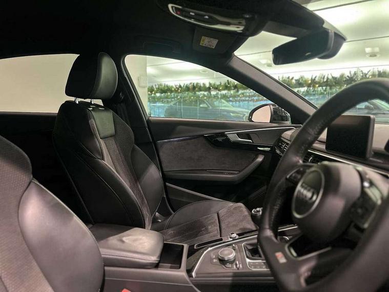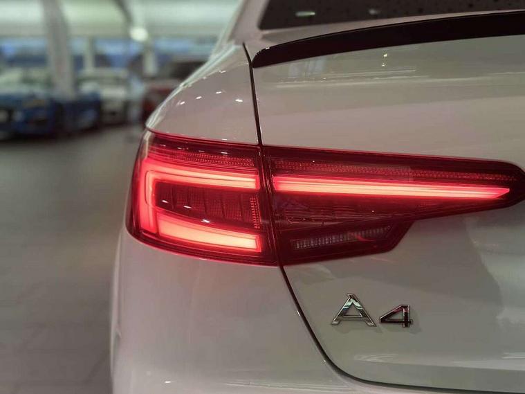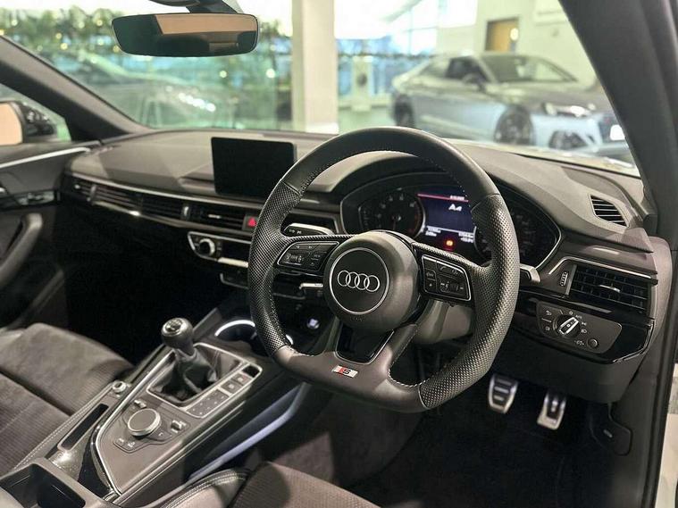 7" Colour driver information system, Audi connect safety and service (e-call), Audi drive select, Audi parking system plus with front and rear sensors, Audi Pre sense collision avoidance, Bluetooth interface, Electric boot release, Electromechanical power steering, MMI SD card Navigation, Service interval indicator, Stop/start button, Voice control system, 54 litre fuel tank, 2 USB interfaces and Aux-In jack, DAB digital radio module, Acoustic windscreen, Air inlets in titanium black, Auto dimming rear view mirror, Automatic headlights + automatic windscreen wipers, Blue tinted glass, Body colour bumpers, Body colour door handles, Chrome rolled exhaust, Chrome tailpipe finisher, Electric front windows, Electric rear windows, Headlight range control, High beam assistant, High gloss black door mirrors, High gloss black triangular aperture at rear door, LED daytime running lights, LED indicators in door mirrors, Privacy glass with front acoustic glazing, Radiator grille and frame in Titanium Black, Rain and light sensors, Rear diffuser in Twilight grey matt, S Style rear spoiler, Titanium black front and rear air intakes, Titanium black window surround, 3 spoke flat bottom high multi-function leather steering wheel, 3 zone climate control, 4 way electric lumbar support for driver and front passenger, 40/20/40 split folding rear seats with rear centre armrest, Black cloth headlining, Contrast stitching on seats, steering wheel and gear lever gaiter, Front centre armrest, Front headrests, Front/rear floor mats, Height and reach adjustable steering wheel with full size airbag, Illuminated door sill finishers, Isofix child seat preparation for front passenger/outer rear seats inc passenger airbag deactivation, Jack and tool kit, Luggage compartment carpet, Perforated leather gearknob, Rear headrests, Stainless steel foot rest, Stainless steel pedals, Sunvisors with vanity mirrors, Top tether anchor plate for isofix child seat, Non Smokers pack, S line exterior styling pack - A4 Saloon, 3 point seatbelts on all rear seats, Adaptive driver and front passenger airbags, Electromechanical parking brake, Electronic stabilisation control including ABS, ASR and EDL, Front head airbags, Front seatbelt pretensioners + load limiters, Front side airbags, Multi-Collision braking, Pop-up bonnet for pedestrian protection, Seatbelt warning, Traction control, Tyre pressure warning, Variable restraint system, Warning triangle and first aid kit, Anti theft alarm, Keyless Start, Locking wheel bolts, Remote central locking, Thatcham category 1 alarm + immobiliser, MMI radio plus with smartphone interface, Piano black finish inlay, Tyre repair kit,
