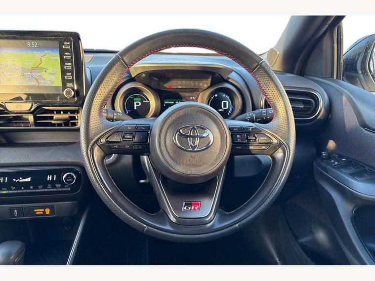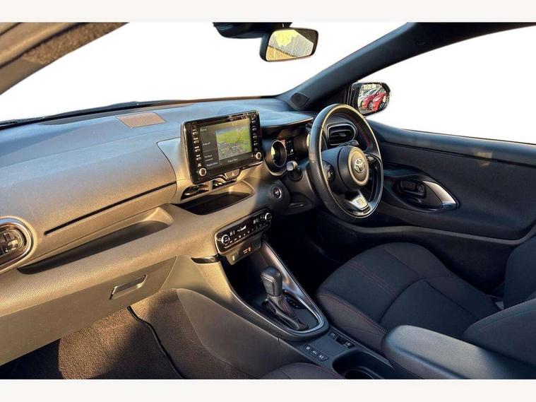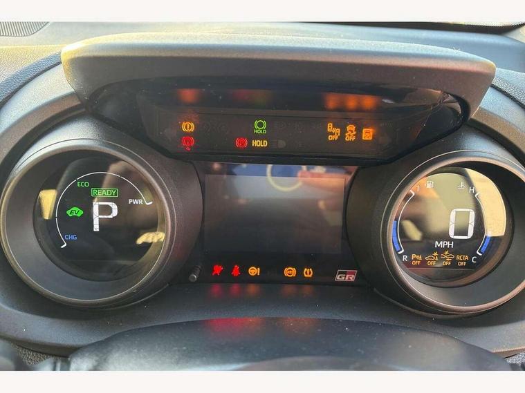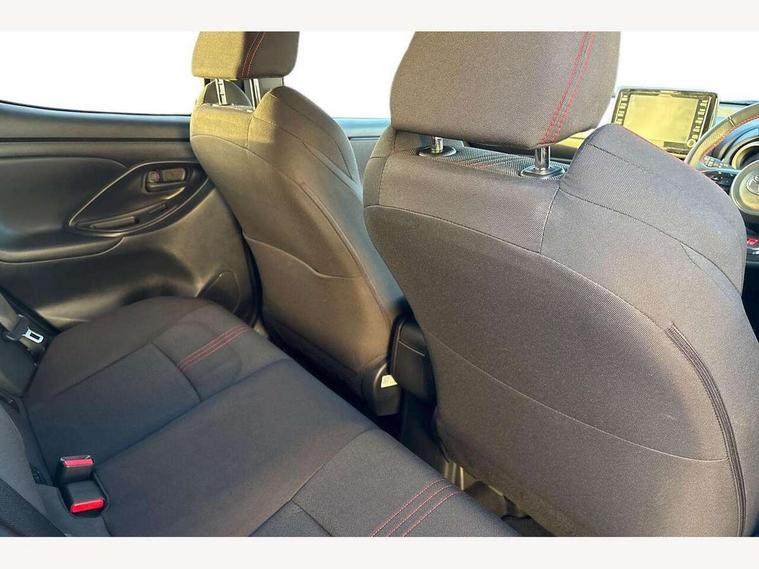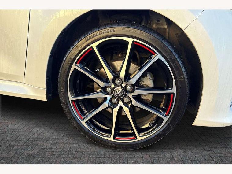 Adaptive cruise control, Adjustable speed limit with speed warning, Bluetooth connectivity, Colour binocular inspired displays with digital speedometer, E-call, Electric power steering, Hybrid energy display, Multi information display switches on steering wheel, Reversing camera, Smartphone integration with Apple CarPlay and Android auto, Tailgate, Voice recognition, Vehicle Stability Control (VSC), 6 speakers, 8" Multimedia display touch screen, Toyota Touch 2 with DAB, USB connection, Acoustic windscreen glass, Auto windscreen wipers, Automatic headlights, Body coloured door mirrors, Dark chrome lower front grille, Electric adjustable heated door mirrors, Follow me home headlights, Front auto power windows with anti jam protection, Full LED rear lights, LED daytime running lights, LED front fog lights, LED front light guide, LED Headlights, LED High mounted stop lamp, LED Indicators, LED rear light guide, Manual headlight levelling, Painted chequered front grille with hot stamp in mesh design, Rain sensor, Rear auto power windows with anti jam protection, Rear privacy glass, Rear side wing doors, Rear spoiler, Rear wiper, Shark fin antenna, Turning signal integrated indicators in door mirrors, Variable front intermittent wipers, 3 adjustable rear headrests, 3 seat bench in 2nd row, 3 spoke leather steering wheel, 60/40 split folding rear seat, Active headrests, Adjustable boot height, Black roof lining, Coat hooks in rear grab handles, Cup holders (2 front & door), Data Communication Module (DCM) connected services, Dual zone automatic air conditioning, Fabric upholstery with red stitching, Front armrest, Front sport seats, Glovebox, Height adjustable driver's seat, Height adjustable passenger seat, Isofix seat fixing, Leather gearshift, Map pockets on the backs of the front seats, Pollen filter, Shopping bag hooks, Single front passenger seat, Tilt/telescopic steering column, 3 point seatbelts on all rear seats, ABS+EBD+Brake assist, Electronic parking brake, Emergency brake light system (EBS), Front passenger airbag on/off switch, Front seatbelt reminder, Hill start assist control (HAC), Rear child proof door locks, Rear seat belt reminder, Supplemental Restraint System (SRS) 8 airbags: Driver & passenger's airbags, dual side curtain airbags, side impact airbags, front centre airbag, Toyota Safety Sense 2, Precollison + Night time Pedestrian & Cyclist Detection, Lane Trace Assist, Auto High Beam, Intelligent ACC & Road Sign Assist, Tyre pressure warning system, 2x Master key, Alarm/immobiliser, Keyless smart entry with push button start, Remote AC via MyT, Remote locking via MyT, Remote powered central double locking doors, GR Sport interior styling with accents and exterior styling, Piano black interior trim, Soft touch instrument panel, 18" machined face alloy wheels with GR Sport red deco lines, Space saver spare wheel,