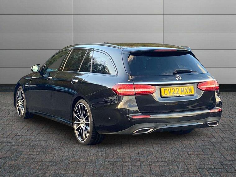 Attention assist, Brake wear warning display, Cockpit display 10.25" widescreen digital instrument cluster, Direct steer speed sensitive steering, DYNAMIC SELECT with a choice of driving modes (ECO, Comfort, Sport, Sport+ and Individual), Easy-pack tailgate - Powered opening/closing automatically, ECO start/stop function, Emergency call service, High resolution 10.25" multimedia colour display, MBUX voice control activated by keywords "Hey Mercedes", Mercedes connect me, Outside temperature display, Remote boot release, Service indicator (ASSYST), Smartphone integration via Android Auto/Apple CarPlay, Media Interface, USB and Bluetooth interface, Status display for rear seat belts in instrument cluster, Touchpad with controller, Traffic sign assist, Trip computer in multifunction display showing current fuel consumption, Wireless charging, 25 litre AdBlue tank, 66 litre fuel tank, 9G TRONIC 9 speed automatic transmission, Agility control sports suspension with selective damping system and lowered by 15mm, Diesel particulate filter, Incorrect fuelling protection, Rear air suspension with level control, 2 USB ports in centre console, 2 USB ports in the rear, Aerial integrated in rear window, Burmester surround sound system with 13 speakers and a 9 channel amplifier with total output of 590 watts, MBUX multimedia system with DAB digital radio and touchpad including satellite navigation, 3rd brake light, Adaptive brake lights, AMG bodystyling front and rear aprons and side sill panels, Chrome roof rails, Electric windows with one touch opening/closing and obstruction sensors, Electrically adjustable and heated door mirrors, Front apron in high gloss black, High gloss black exterior mirror housing, High gloss black rear bumper with chrome trim, Illuminated front door sill panels with Mercedes-Benz lettering, LED High Performance headlamps including integral LED daytime running lamps, LED rear lights, Panoramic electric glass sunroof, Privacy glass Includes rear side windows and rear windscreen, Radiator grille with integral star and 2 louvres in high gloss black, Rain sensor with automatic headlight activation, Rear side wing doors, Rear wiper, Tail lights, Top surround of side windows in polished aluminium, Visible twin pipe exhaust system integrated into bumper, Waistline trim strip in high gloss black, 3 seat bench in 2nd row, 3 spoke multifunction flat bottom AMG steering wheel with chrome inserts and touch control buttons, trimmed in black nappa leather, 40:20:40 split folding rear bench seat, Artico man-made leather upper dashboard and beltlines with contrast stitching, Automatic child seat recognition sensor, Black door pins, Black roof lining, Central stowage compartment with 12 V socket in centre console, USB socket for use with Android Auto and Apple CarPlay, Courtesy lights in rear grab handles with reading light functionality, Floor mats with AMG lettering, Four way partially front electric seat adjustment, Front centre armrest with stowage compartment, Glasses compartment in overhead control panel, Glove compartment - lockable, air conditioned and illuminated, Head restraints for driver and front passenger (four-way adjustability)and in rear (two-way), Heated front seats, Interior lighting - 64 colour Ambient lighting, ISOFIX child seat attachment points two outer rear seats, Leather upholstery, Seat occupancy sensor for front passenger seat, Single front passenger seat, Sports pedals in brushed stainless steel with black rubber studs, Steering column electrically adjustable for height and reach, Steering wheel multifunction with gearshift paddles, Steering wheel touch control buttons for audio and onboard settings, Sunvisors with illuminated vanity mirrors, THERMOTRONIC automatic climate control system with 3 climate zones, Mirror pack - E Class, Parking package including 360 degree camera - E Class, Seat comfort pack - E Class, Stowage pack - E Class Estate, 3x3 point rear seatbelts, Active bonnet pedestrian safety measure which detects an impact and raises bonnet, Adaptive brake system with HOLD function and brake drying in the wet, Airbags - sidebag for driver and front passenger with combined thorax/pelvis bag, Anti-lock braking system (ABS), Childproof locks manually operated for rear doors and electrically operated for rear power windows, Driver and adaptive front passenger airbags, Drivers knee airbag, Electronic parking brake, Hill start assist, Perforated brake discs with Mercedes Benz lettering, Pre-Safe anticipatory safety system, Tyre pressure monitoring system, Warning triangle and first aid kit, Window airbags, Alarm system/interior protection/immobiliser, Central locking with interior switch, automatic locking and crash sensor with emergency opening function, Chrome surround electric key, Keyless entry go starting function, Grey open pore ash wood trim and centre console in grey open pored ash wood, 20" AMG multi spoke light alloy wheels painted in high gloss black with high sheen finsih, Summer tyres, TIREFIT with tyre inflation compressor,