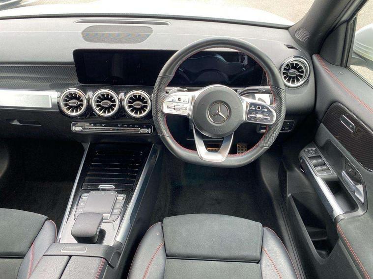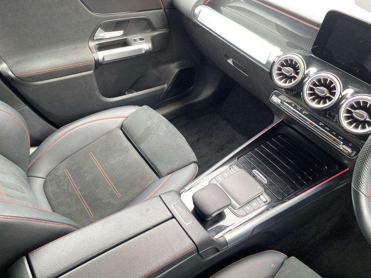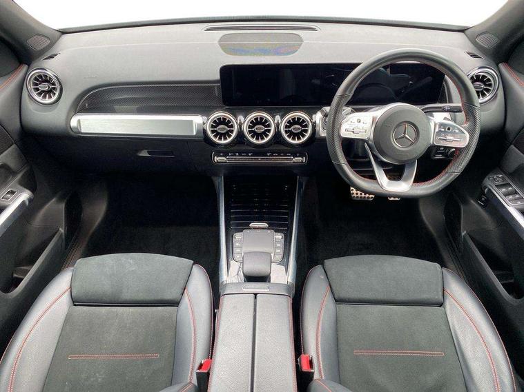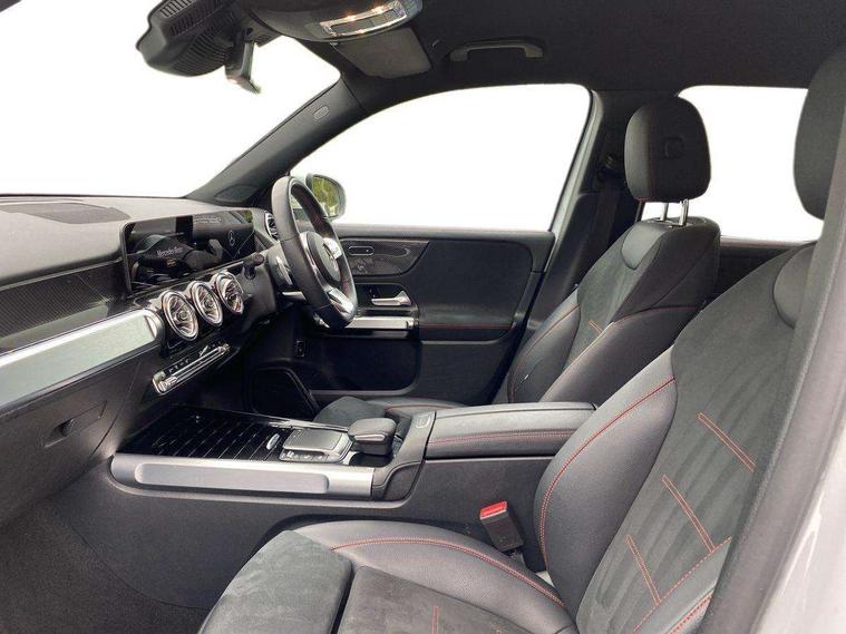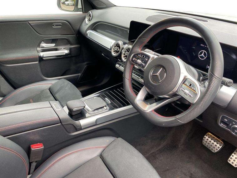 10.25" Digital instrument cluster display screen, 10.25" Digital media screen display, Active lane keeping assist, Attention assist - Monitors steering behaviour and long journey fatigue, Brake pad wear indicator warning light, Car wash mode, Cruise control with limiter, DYNAMIC SELECT with a choice of driving modes (ECO, Comfort, Sport and Individual), ECO start/stop function, Fluid level warning indicator for fuel, oil, coolant and washer fluid, Hard disk navigation, Hey Mercedes Voice activation, Lamp failure indicator, Mercedes me connect including emergency call system, accident recovery, breakdown and maintenance management, Mercedes me remote services, Outside temperature gauge, Owners manual and service booklet in English, Parameter steering system, Pre-installation of private car share, Radio aerial integrated into front and rear windshields, Service indicator (ASSYST), Smartphone integration with Apple CarPlay and Android auto, Speed limit assist, Trip computer in multifunction display with current consumption indicator, Comfort suspension, Rear axle multi-link, DAB digital radio tuner, MBUX multimedia system with DAB digital radio and touchpad including satellite navigation, Mercedes Benz sound system (225 W) with 10 speakers, 1 central speaker, speakers on doors, a tweeter on door, one sub woofer + boost amplifier, Pre installation for Mercedes Benz Link, USB (type C) port in front stowage compartment, USB (type C) ports (2) in stowage compartment, Adaptive brake lights, Aerial for GPS, AMG bodystyling door panels black grained with chrome plated inserts, AMG bodystyling front apron with chrome splitter, AMG bodystyling rear apron with diffuser optics and chrome trim element, AMG specific front and rear bumper including underride guard in high gloss chrome, Beltline strips and weather strip in chrome, Body coloured door handles with chrome insert for keyless entry, Body coloured door mirror caps, Electric adjustable and heated door mirrors with integrated LED side indicators, Exhaust system with dual flow exhaust pipes (non-functional), Front and rear electric windows, Headlamp assist automatic headlamp activation, Heated glass rear windscreen + timer control, High level LED third brake light, Interior mirror with black reading lamps and frameless, LED high performance headlamps with integrated LED daytime running lights, LED tail lamp, Polished aluminium roof rails, Privacy glass with dark tinting on rear side windows and rear window, Radiator grille with pins in chrome and single louvre with chrome insert, Rain sensor windscreen wipers, Rear fog lamp, Rear side wing doors, Rear wing door, Rear wiper, Two visible tailpipe trim elements exhaust, 3 seat bench in 2nd row, 3 spoke multifunction sport steering wheel in nappa leather, Air conditioning - Two zone thermotronic luxury automatic climate control with display, AMG sports pedals with brushed stainless steel surfaces and black rubber studs, Artico man-made leather/Microfibre Dinamica upholstery with red contrast stitching, Automatic child seat recognition sensor, Black floor mats with AMG lettering, Black roof lining, Fore/aft adjustment rear seats, Freight packaging with tie-down hooks, Front centre armrest with stowage, Front door sills with illuminated changeable cover, Front passenger grab handle with brushed side silver chrome, Front sports seats with adjustable head restraints, Galvanished gear shift paddles on steering wheel, Heated front seats, Height/reach adjustable steering column, Interior lighting - 64 colour Ambient lighting, Luggage net on driver/front passenger seat backrest, Rear armrest with two integral cup holders for drinks, Rear seat easy entry, Single front passenger seat, Stowage compartment in centre console, Stowage compartment with retractable cover, Third row of seats for two people on rear seat, Touchpad on center console, Twin front cup holders, Two outer rear seat isofix and top tether child seat fixing points, Interior lighting with light and sight pack - GLB, Keyless go pack - GLB, Mirror pack - GLB, Parking pack - GLB, Seat comfort package - GLB, 3 rear 3 point seatbelts, Active bonnet pedestrain safety measure which detects an impact and raises bonnet by 65mm, Active brake assist includes forward collision warning system with autonomous braking, Adaptive brake assist with hold function and hill start assist, Airbags - kneebag for driver, Anti-lock braking system (ABS) with brake assist, Childproof locks manually operated for rear doors and electrically operated for rear power windows, Crash responsive emergency lighting, Curve dynamic assist, Driver and front passenger head and sidebags, Driver and front passenger windowbags, Dual stage driver and front passenger airbags, Electronic parking brake, Electronic stability programme with acceleration skid control, Front and rear seatbelt reminder, Front brake callipers with Mercedes Benz lettering, Front passenger seat occupancy sensor, Tyre pressure monitoring system, Warning triangle and first aid kit, Remote central locking and crash sensor with emergency opening function, Thatcham category 1 alarm system with immobiliser and interior protection, Urban guard vehicle protection - Anti theft alarm system, tow away protection with visual and acoustic warning and alarm siren, Vehicle key with decorative surround in chrome, Black air vents with chrome surround, Carbon structure trim, 19" AMG 5 twin spoke light alloy wheels painted in tantalite grey with high sheen finish, Summer tyres, Tirefit tyre sealant kit,