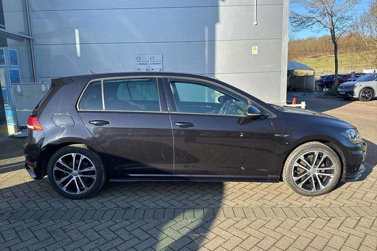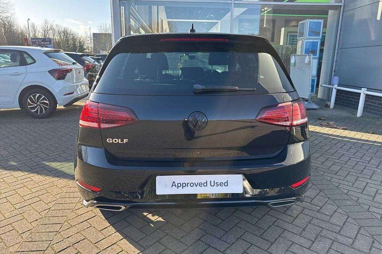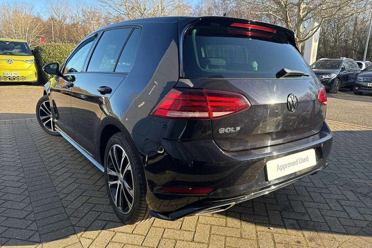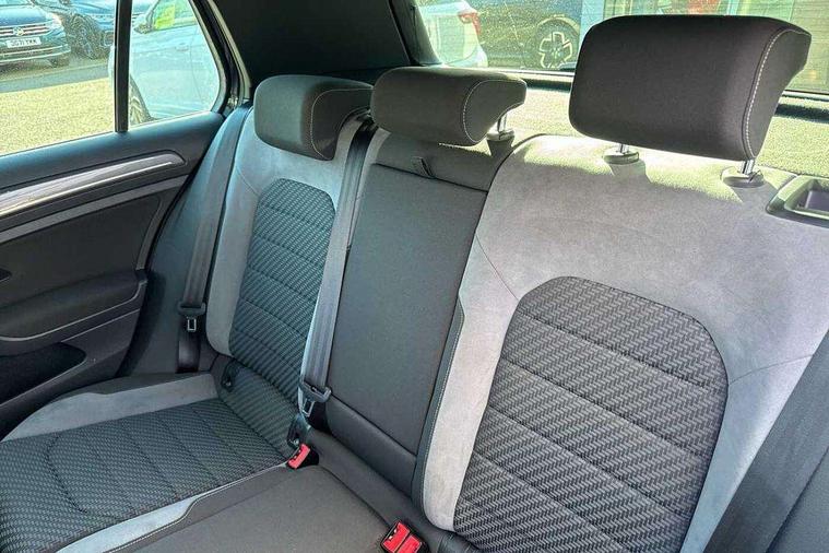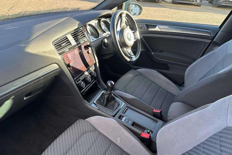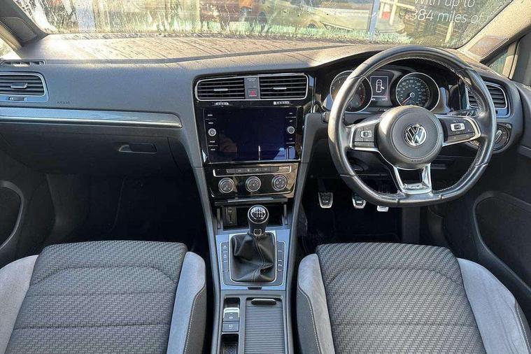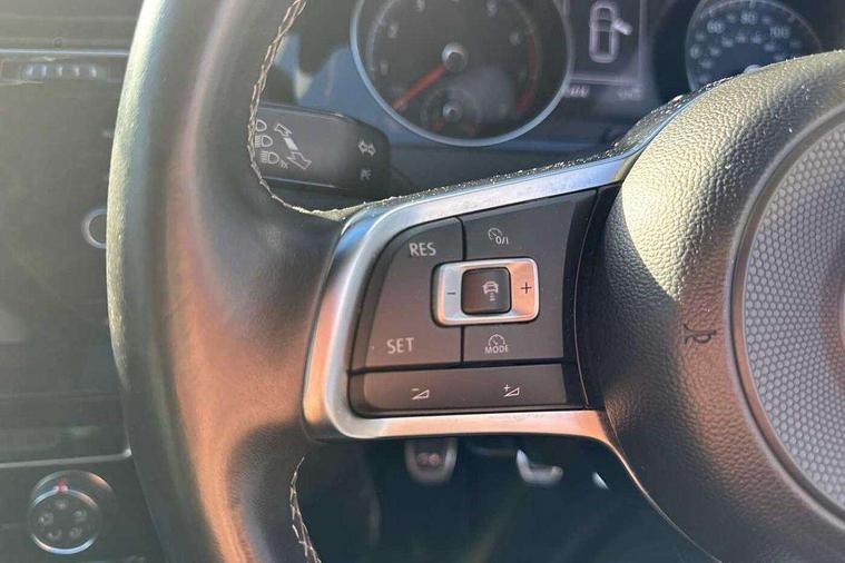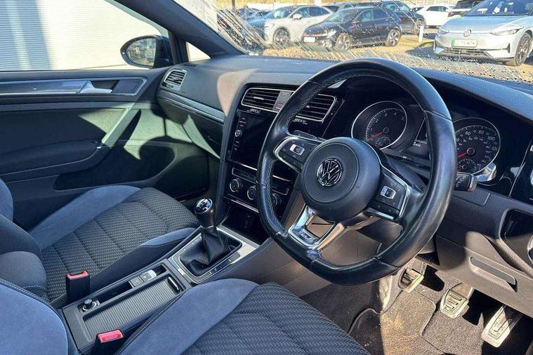 Chrome plated air vent surround, Chrome plated electric mirror adjustment light switch surround, Dark Diamond decorative inserts in dash and door panels, Piano black centre console with aluminium inlay, Ambient lighting pack - Golf, Mirror pack - Golf, R Line Styling pack - Golf, Steel space saver spare wheel, Alarm with interior protection, Electronic engine immobiliser, Remote central locking with 2 remote folding keys, 8 speakers, CD/MP3/WMA, USB and SD card reader, aux-in, Composition media system, DAB Digital radio receiver, SMS Functionality, 3 rear three point seatbelts, Airbags - Driver's and front passenger's, curtain airbag, Driver's knee, front side impact and passenger's airbag deactivation switch, Anti-lock Braking System (ABS) with Hydraulic Brake Assist (HBA), Automatic post collision braking system, Child locks on rear doors, Driver/Passenger optimised head restraints, Electronic parking brake with auto hold, Electronic stability control (ESC) including Electronic differential lock (EDL) and ASR (Traction control) with deactivation via infotainment system, Pre crash preventive occupant protection, Three point height adjustable front seatbelts with tensioners, Tyre pressure loss indicator, Automatic coming/leaving home lighting function, Automatic dimming rear view mirror/rain sensor, Black front air intake and radiator grille with chrome insert, Black sports rear diffuser, Body colour bumpers, Body colour door handles, Body colour door mirrors with integrated indicators, Chrome grille surround, Chrome trimmed front air intake surrounds, Electric front windows, Electric rear windows, Electrically adjustable and heated door mirrors, Glavanised body, Heated rear windscreen, High level 3rd brake light incorporating LED Technology, Left and right chrome effect trapezoid dummy exhaust tailpipe surrounds, Range adjustable headlights via infotainment system with LED daytime running lights, Rear number plate lights incorporating LED technology, Rear tinted glass 65% light absorbing from B pillar backwards, Rear window aerial, Rear window wash/wipe with intermittent wipe, Reflectors in all doors, Remote electrically foldable door mirrors, door mirror puddle lights and reverse activated kerb-view adjustment on passengers door mirror, Stainless steel door sill protection, Windscreen wipers/ intermittent wipe + 4 position delay, 12V socket in luggage compartment, 3 rear headrests, 4 load lashing points in luggage compartment, 60/40 split folding rear seat backrest, Bag hook in luggage compartment x 2, Black roof lining, Cooled glovebox, Dust/pollen filter, Front + rear carpet mats, Front centre armrest with storage compartment and two rear air vents, Front reading lights, Front seat back storage pockets, Grab handles front x 2, rear x 2 with integrated coat hooks, Height and reach adjustable steering wheel, Illuminated vanity mirrors, Instrument lighting white adjustable panel illumination, Interior light delay, Isofix preparation for 2 rear child seats, Leather gear knob and handbrake grip, LED front and rear reading lights, Load through provision with rear centre armrest and cupholders x2, Luggage compartment light, Multifunction leather steering wheel with grey stitching leather trimmed gear knob including paddle shift, Multifunction leather steering wheel with leather trimmed gear knob, Overhead storage box, R Line badge, Stainless steel pedals, Storage box in luggage compartment, Storage compartment in roof console with cover, Storage compartments in front doors, Storage compartments in rear doors, Stowable luggage compartment cover, Sun visors, Three spoke multi-function leather trimmed steering wheel and gearknob, Variable boot floor, height adjustable and removable, App-Connect, 'Lights On' Reminder warning buzzer, 8" colour touch screen, ACC - Adaptive cruise control with front assist, forward collision warning, distance monitoring, city emergency brake and speed limiter, Bluetooth telephone and audio connection for compatible devices, Brake pad wear indicator warning light, Driver alert system, Driver profile selection, Driving Mode Selection with four preset modes - Eco, normal, sport or individual modes, Front assist, radar sensor controlled distance monitor, city emergency braking + predictive pedestrian protection, Front assistant collision mitigation, Instrument cluster in white, Multifunction computer with visual gear change recommendation for fuel consumption, Power assisted speed sensitive electro-mechanical steering, Speedo, rev counter, electronic odometer, trip, service interval display, exterior temperature and fuel gauge, Stop/start system, Ultrasonic front and rear optical and audible parking sensors, Warning buzzer and light for front seatbelts unfastened, Battery regeneration during braking, Lowered sports suspension, XDS electronic differential lock,