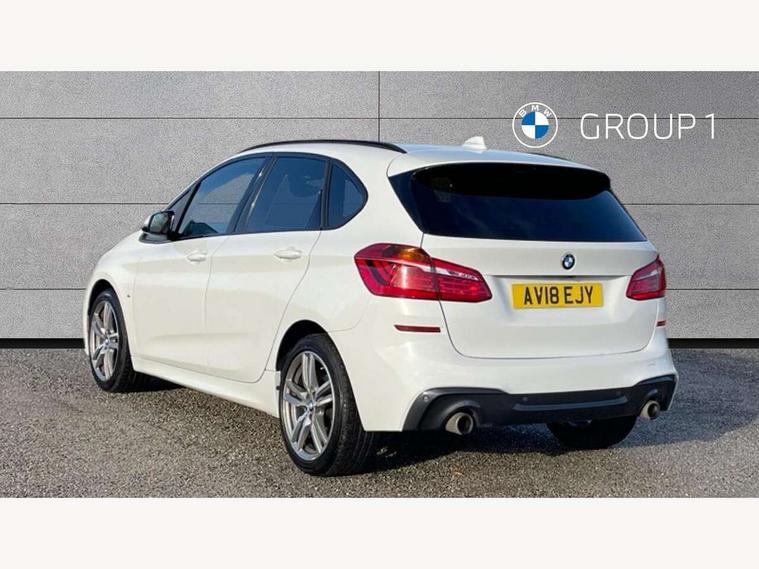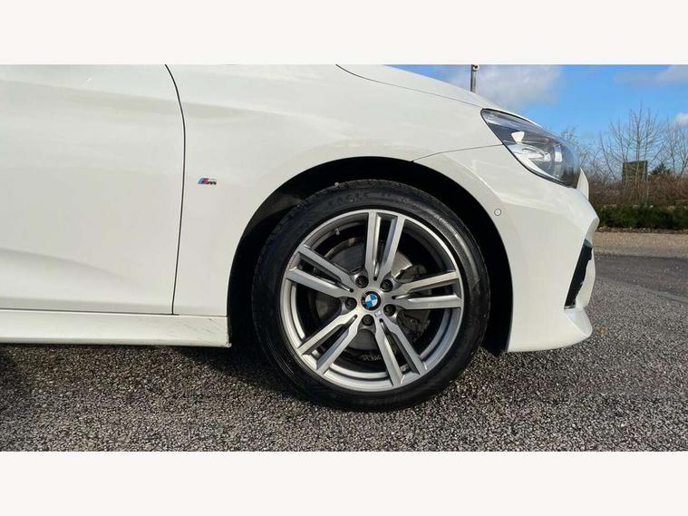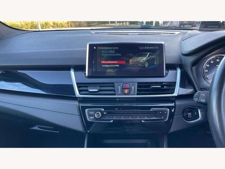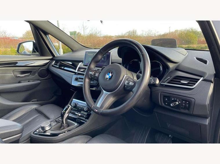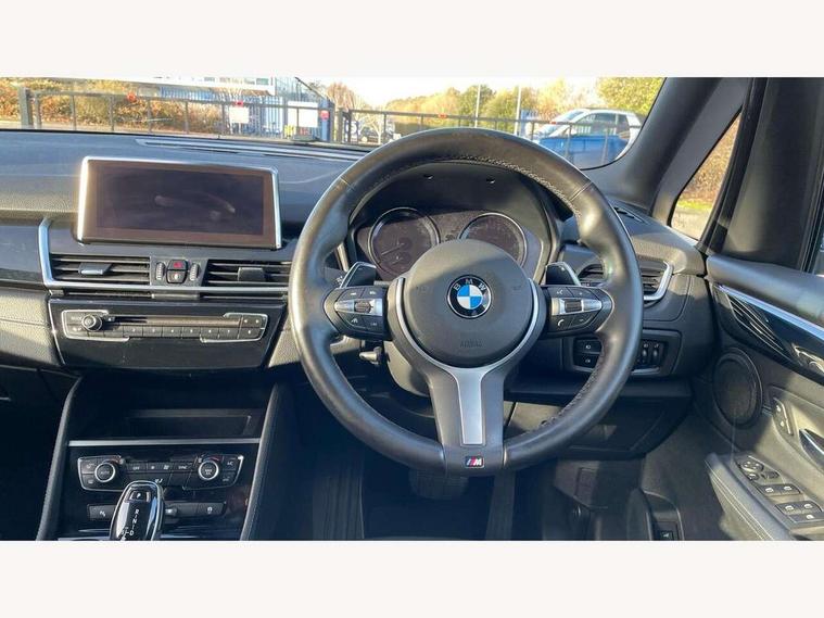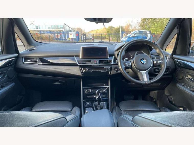 Attentiveness assist, Automatic tailgate operation, BMW Online services, BMW remote services, BMW Teleservices, Check control system, Door/boot open warning light, Forward collision warning, Lights on warning, Oil temperature gauge, On board computer, Outside temperature display, Personal Profile, Service interval indicator, Speed limiter, Stop/start button, Drive Performance Control, Electronic differential lock, Bluetooth audio streaming, BMW professional radio/CD/MP3, DAB Digital radio, Body colour bumpers, Body colour door handles, Body colour door mirrors, Body colour roof mouldings, Chrome kidney grille with black vertical slats, Door sill finishers, Electric adjustable heated door mirrors, Electric front/rear windows with one touch/auto up/down, Follow me home headlights, Heat insulating tinted glass, Heated windscreen washer jets, High beam assistant, LED daytime running lights, LED front fog lights, Rain sensor including auto headlights activation, Rear wiper, Twin chrome exhaust tailpipes, Welcome lighting, 12V sockets in front centre console and passenger footwell, 3 rear headrests, 3 spoke leather M sport multifunction sports steering wheel, 4 grab handles, Anthracite headlining, Anthracite Velour floor mats, Dakota leather upholstery, Dual zone automatic air conditioning, Front armrest, Front head restraints, Front sports seats with electric side bolster adjustment, Front/rear armrests within door panels, Illuminated glovebox, Isofix front passenger and rear seat preparation, Luggage compartment lighting, Multifunction steering wheel, Reach + rake adjustable steering column, Rear centre armrest, Sliding rear seats, Sunvisors, Extended storage pack - 2 Series Active/Gran Tourer, 3 point seatbelts on all seats, ABS, BMW emergency call, Brake assist function, Childproof rear door locks, Collision mitigation braking system, Crash Sensor - activates hazard/interior lighting + unlocks doors, Driver/Front Passenger airbags, DSC+, Dynamic Traction Control - DTC, Front and rear curtain airbags, Front passenger airbag deactivation, Front seatbelt force limiters, Front seatbelt pretensioner, Front side airbags, Hill start assist, Seatbelt warning, Side impact protection, Tyre pressure monitoring system, Warning triangle and first aid kit, Electronic immobiliser, Key integrated remote control central locking, Locking wheel bolts, Remote control Thatcham category 1 alarm, 18" M Double spoke alloy wheels - style 486,
