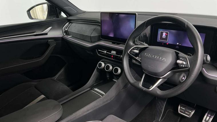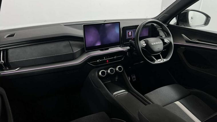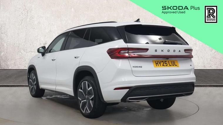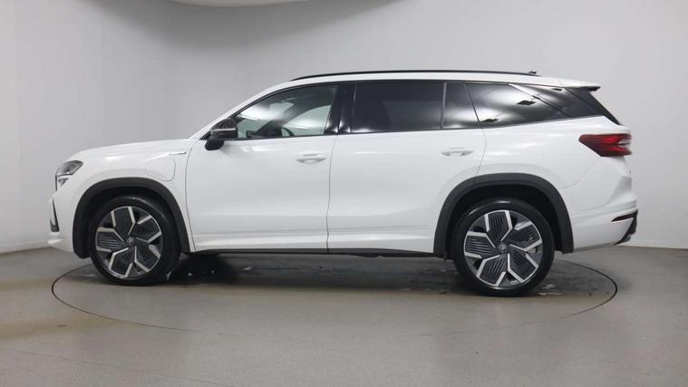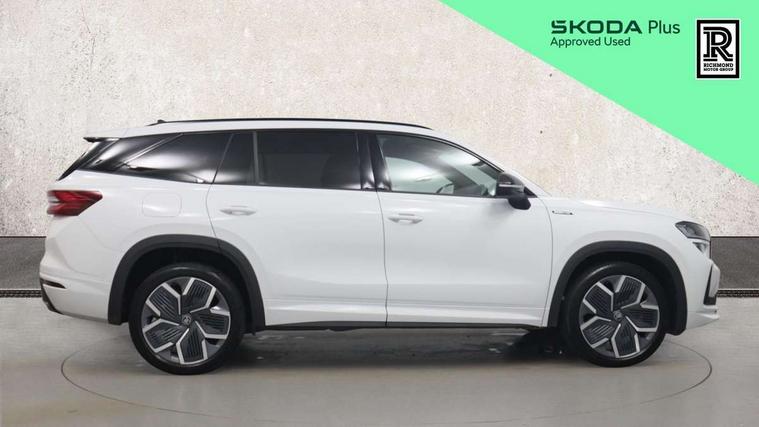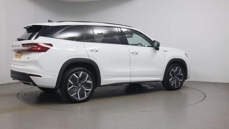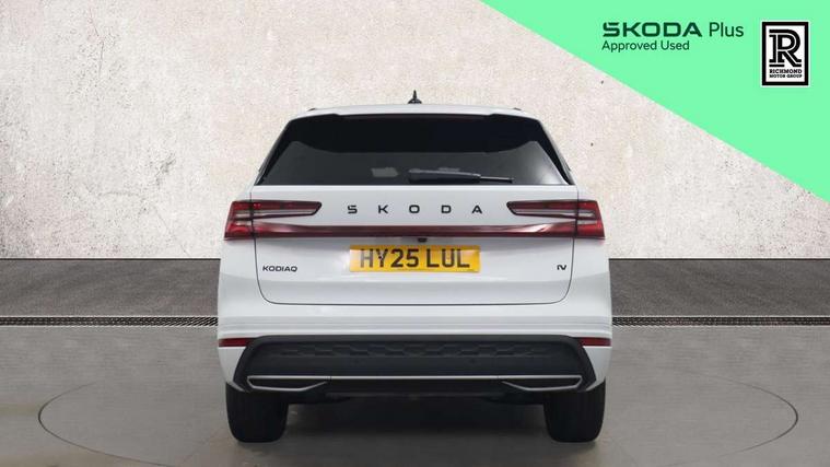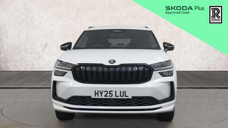 13" satellite navigation touchscreen display, Blind spot detection with door exit warning, Bluetooth system, ChatGPT functionality, Driver alert - Fatigue and drowsiness monitor, Dry display cleaner, Emergency call, Front and rear parking sensors, Front cross traffic assist, Lane assist, PAS, Rear traffic assist, Tailgate unlocking from outside, Traffic sign recognition, USB C Port x 2 in front centre console, Virtual Cockpit - 10.25" digital display, Voice control system, Wireless charging for two smartphones (15W) with cooling function, Wireless SmartLink for Apple CarPlay and Android Auto, 32A charging cable, Stop/start function, 2x USB-C in the rear, DAB Digital radio, Aero front windscreen wipers with intermittent function, Auto dimming rear view mirror, AWL (all weather lighting) and all weather light with cornering function, Black diffuser and decorative tailpipe with a unique dark chrome finish, Black roof rails, Black sports styling including front grille and window surrounds, Black wheel arch surrounds, Body colour door handles, Cornering light and poor weather light, Electric folding /adjustable/separted heated/folding door mirrors, auto dimming with boarding sports and memory function, Electric front and rear windows, Exterior black decorative trims, Front and rear sports bumpers including lower rear chrome strip, Gloss black door mirrors, Gloss black window frame and D pillar, Heat insulating glass in windshield, Heated rear window, Ice scraper in fuel tank cap, LED daytime running lights, LED third brake light in rear spoiler, Light assistant with automatic headlight control and coming home feature, Logo projection in door mirrors, Privacy glass, Rear roof spoiler, Rear side wing doors, Rear window wiper, Red decorative strip between rear LED lights, Safety reflectors on front and rear doors, Sportline badge on front fenders, Tailgate lettering in Black, Unique dark chrome design logo on alloy wheels, Window control switches with black trim, Windscreen wipers with rain sensor, Without engine designation, 1.5l bottle holder points in all door, 1x centre rear reading light, 3 configurable smart dials with 32mm coloured display, 3 seat bench in 2nd row, 4 foldable roof handles with rear coat hooks, Aluminium pedals, Ambient interior lighting - Dashboard, front-door stowage compartments, front and rear door panels and footwell lighting, Automatic gear selector on steering column, Chrome interior door handles, Driver/front passenger reading lights, Fabric headlining, Fixed bench 40:60:40 split folding backrests, Front and rear floor mats, Front centre armrest with jumbo box storage compartment, cup holder and 12V socket, Front sport seats, Height adjustable front headrests, Interior black decorative trims, Isofix child seat fittings in outer rear seats and front passenger with top tether, iV badging on boot, Manually adjustable steering column, Pollen filter, Rear centre armrest with cupholders, Rear seat boot backrest release, Single front passenger seat, Skoda lettering on steering wheel, Storage pocket including mobile phone pockets on the backs of the front seats, Sunvisors with illuminated vanity mirrors, Three rear height adjustable headrests, Ticket holder on A Pillar, Tri zone climate control, Umbrella in door panel x1 made from sustainable materials, Upper and lower glovebox with card holder and coin compartment, USB C port by rear view mirror for charging only (15W), Acoustic package - Kodiaq, Performance package - Kodiaq, Sportline design selection pack - Kodiaq, Auto door release and activation of warning lights in the event of an accident, Driver and front passenger airbag with knee airbag and front passenger airbag deactivation, Electric child locks, Electronic parking brake, ESC (incl. ABS+EMD+MSR+ASR+EDL+HBA+DSR+RBS+ESBS+MCB+TSA+XDS), Front assist with braking reaction to vehicles, pedestrians and cyclists, Front disc brakes, Fuel cut off safety device, Height adjustable front 3 point seatbelts + pretensioners, Hill hold assist, Junction assist with automatic emergency braking, Rear disc brakes, Safety vest holder in door, Seat belt reminder for all seats, Three point rear seat belts, Two tone horn, Tyre pressure monitor, Alarm with interior monitoring and tilt sensor with safe function, Anti-theft wheel bolts, Immobiliser, Remote central locking with 2 keys, 20" Rila anthacite polished alloy wheel with black matte aero covers, Breakdown kit, Tool kit,
