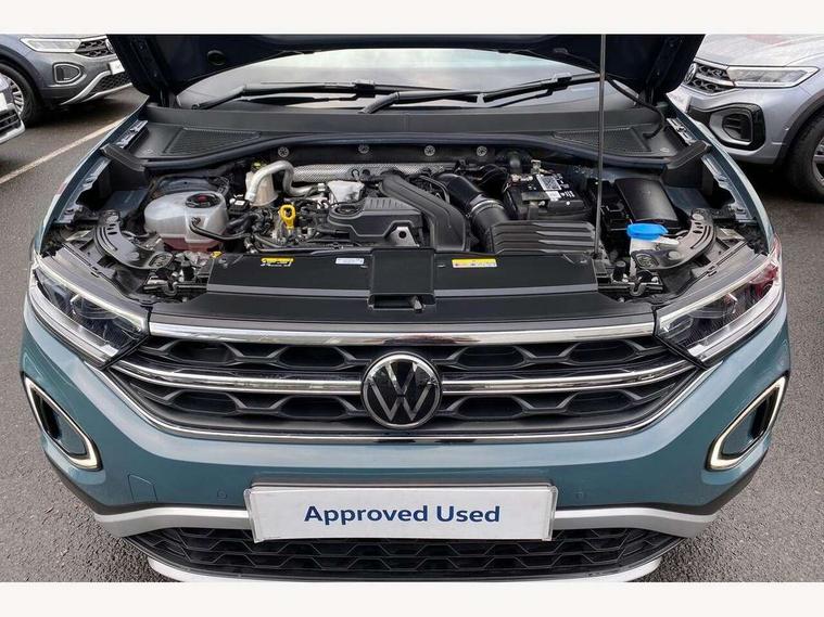 10.25" Digital cockpit pro, Bluetooth mobile phone interface, Driver alert system with fatigue detection, Driver tips and journey analysis, Emergency call service, Lane keeping system Lane Assist, Modified key software - reduce switch off time for key status change to Long no motion, Online services, Park assist including front and rear parking sensors, Service interval indicator, Tailgate/trunk lid release from outside, Think blue trainer driver tips and journey analysis, Warning sound and light for front seatbelts unfastened, Wireless app connect, Battery regeneration during braking, Start/stop function with battery regeneration, Diversity antenna for FM reception, Front and rear 6 speakers, Music playback - MP3, WMA and AAC files, Premium USB cable in choice of either Apple or Android smartphone compatibility, SD card slot, Simultaneous pairing of 2 compatible mobile devices, Title and cover art display, We Connect and We Connect Plus functionality, 3rd brake light, Auto dimming interior rear view mirror, Automatic hazard lights activation under emergency braking, Automatic headlight control with LED separate daytime running lights with coming/leaving home function, Body colour sports bumpers with silver metallic underbody fascia, Dynamic headlight range control with self adjusting whilst driving, Extended roof spoiler, Exterior mirrors aspherical on driver side, convex on front passenger side, External USB type C socket and charging sockets, Front windscreen wiper with intermittent wipe and 4 position delay, Heated rear window, LED Plus headlamps, LED rear combination lamps, LED rear number plate lights, LED tail lamp rear comination lamps, Light mode for poor weather, rain, fog or snow, Power windows with comfort operation and circuit breaker, Rain sensor, Rear exhaust tailpipe, Rear fog light on one side and reversing lights on both sides, Rear side wing doors, Rear wash/wipe with intermittent wipe setting, Remote electrically foldable door mirrors, puddle lights and reverse activated passenger's door mirror, 12V power socket in centre console, 3 rear head restraints, 3 seat bench in 2nd row, 4 load lashing points in luggage compartment, Air care climatronic air conditoning system with active combination filter and 2-zone temperature control, Chrome plated radiator grille inserts, air vent surrounds and light switch surrounds, Door and side trim panel with leatherette insert, Drawer under drivers seat, Front + rear carpet mats, Front centre armrest, Front comfort sports seats, Front cupholders x 2, Front footwell illumination, Instrument lighting, white adjustable panel illumination, Interior ambient lighting and surround lighting, Interior light delay, Isofix child seat preparation, Leather gearshift handle, LED interior light with switch off delay/dimmer and 2 front/rear LED reading lights, Load-through provision with cup holder when folded down ('Unsplit rear seat bench, split folding backrest, with centre armrest), Luggage compartment lighting, Non-folding front passenger seat backrest, Single front passenger seat, Storage compartment in left and right luggage area, Storage compartment in rear doors, Storage compartments in driver and front passenger doors, Sunvisors with illuminated vanity mirrors, Variable boot floor, height adjustable and removable, Driver assistance pack without proactive passenger protection - T-Roc, 3 point height adj front seatbelts + pretensioners, 3 point seatbelts in outer rear with ECE label, ABS, Child locks on rear doors, Driver and front passenger airbag with front passenger airbag deactivation, Driver and front passenger safety-optimised head restraints, Drivers seatbelt reminder, Electronic parking brake, Electronic Stability Control (ESC) inc EDL (Electronic Differential Lock) and ASR (Traction Control), Front and rear passengers curtain airbag system including front side airbags, Front assist with city emergency braking and pedestrian monitoring, Front seat side impact airbags, Predictive pedestrian protection, Rear disc brakes, Single tone horn, Tyre pressure loss indicator, Volkswagen roadside assistance, Alarm with interior protection, Anti-theft alarm system with interior monitoring, backup horn, and towing protection, Remote central locking with SAFELOCK, radio remote control with 2 remote control folding keys, Trims for alloy wheels,