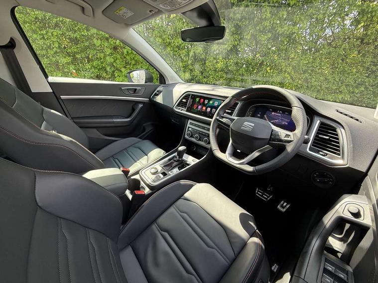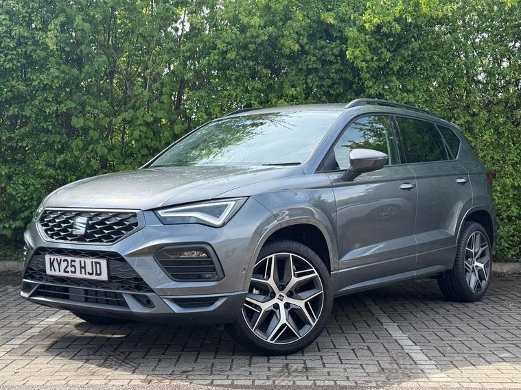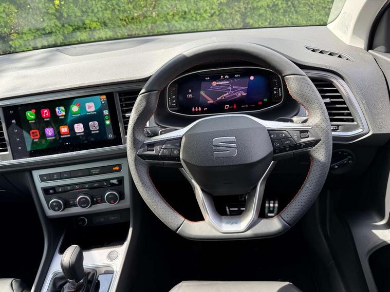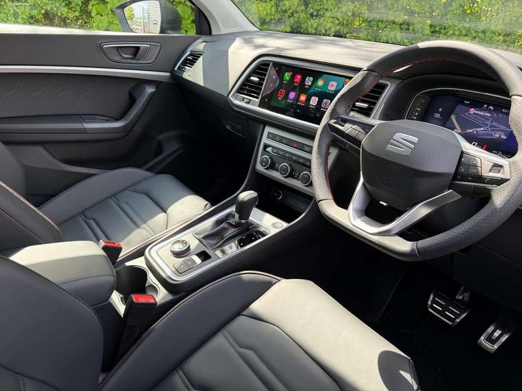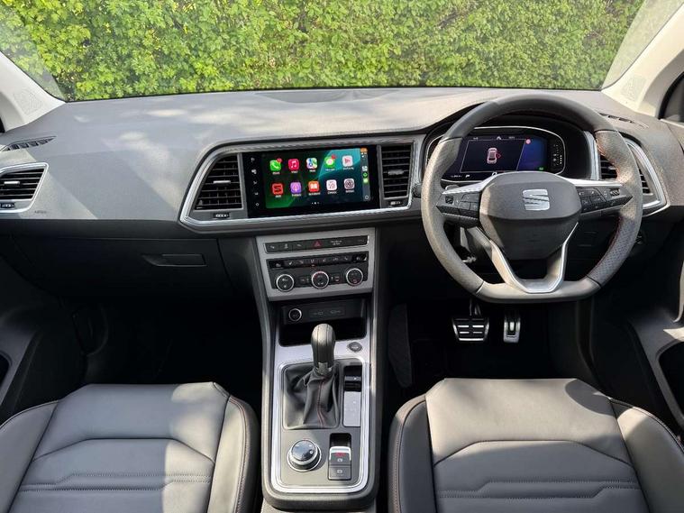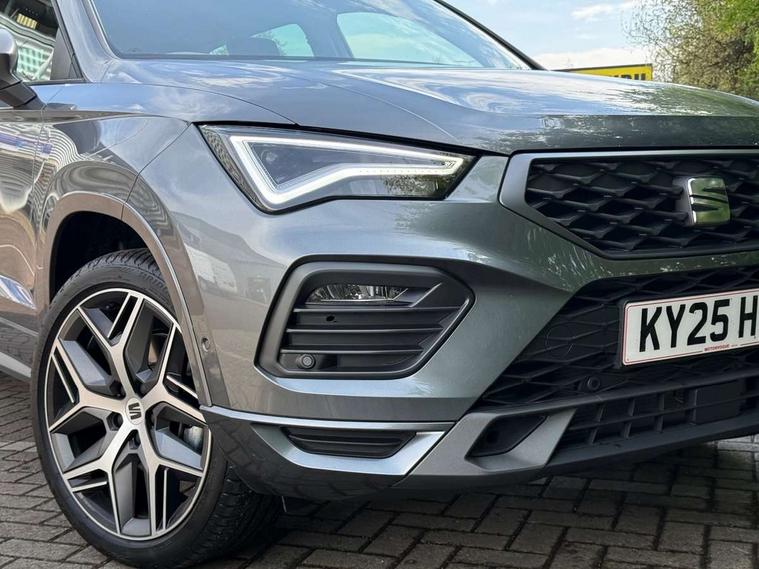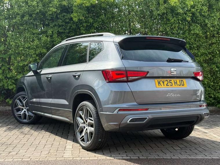 10" Digital cockpit, Cruise control system with speed limiter, E-call, Outside temperature gauge, Progressive power assisted steering, SEAT drive profile with driving experience button - Normal, Sport, Eco and Individual mode, gearshift, steering and throttle response, Self parking functionality (includes front and rear parking sensors), Start/stop system, Tailgate, Trip computer, wired and wireless full link smartphone integration, Wireless phone charger, Steering wheel mounted audio/phone controls, Black roof rails, Black side window trim, Body colour bumpers, Body coloured wheel arch surrounds, Chrome front grille frame, Dark tinted rear windows, Daytime running lights, Door mirrors with welcome light silhouette, Dynamic headlight range control with self adjusting whilst driving, Electric adjustable/heated/folding door mirrors, Front and rear electric windows, Full LED headlamps with lens and LED front fog lamps with cornering function, Illuminated aluminium front door sill, LED 3rd brake light, LED rear tail lights with dynamic indicators, Rear exhaust tailpipe, Rear fog lights, Rear side wing doors, Rear wash/wipe, Roof spoiler, Variable front intermittent wipers, 12v socket in front, 3 seat bench in 2nd row, 60/40 split folding rear seat, Aluminium pedals, Dual zone climate control, Electric adjustable driver seat with memory function, Front and rear head restraints, Front centre armrest, Front seat back storage pockets, Heated front seats, Height adjustable passenger seats with lumbar adjustment, ISOFIX points in outer rear seats with top tether anchorage points, Leather sports steering wheel and gear knob, Leather upholstery with front comfort seats, Manual lumbar support on driver seat, Rear armrest and easy back seat release mechanism from boot, Single front passenger seat, Steering wheel mounted gearshift paddles, Convenience pack - Ateca, Interior lighting pack - Ateca, Navigation system pack with DAB - Ateca, Safety and driving pack with attention and drowsiness assist - Ateca, 3x3 point rear seatbelts, ABS, Traction control system (TCS), Electronic stability control (ESC) and Electronic differential lock system (XDS), Airbags - Driver and front passenger airbag with deactivation, front side, two curtain and driver's knee airbags, Electric parking brake with auto hold function, Front and rear seatbelt reminder, Front assist with autonomous emergency braking, Hill hold control, Manual rear child locks, Single tone horn, Tiredness recognition system, Tyre pressure monitoring system, Alarm, Keyless entry, Locking wheel bolts, Remote central locking, Chrome interior detailing, 19" Exclusive machined alloy wheels with decorative inserts 36/7 in cosmo grey,