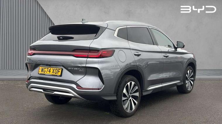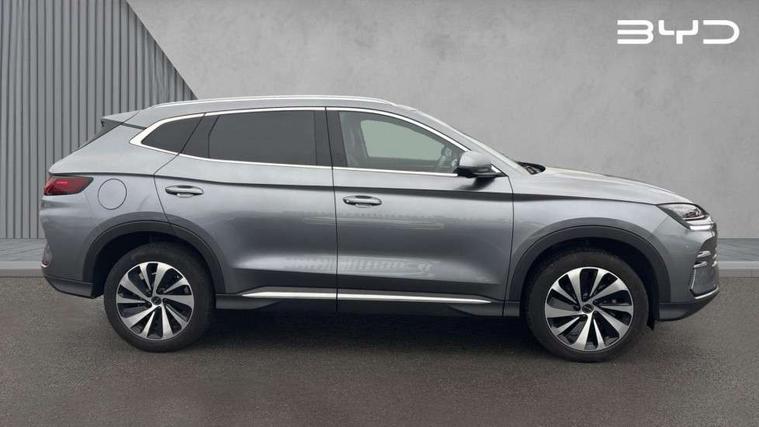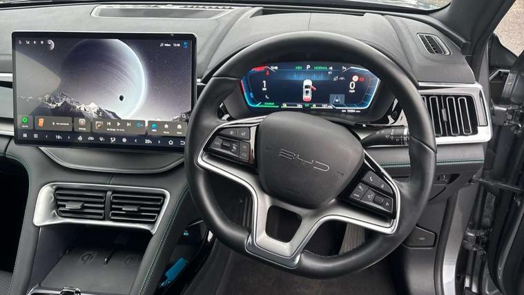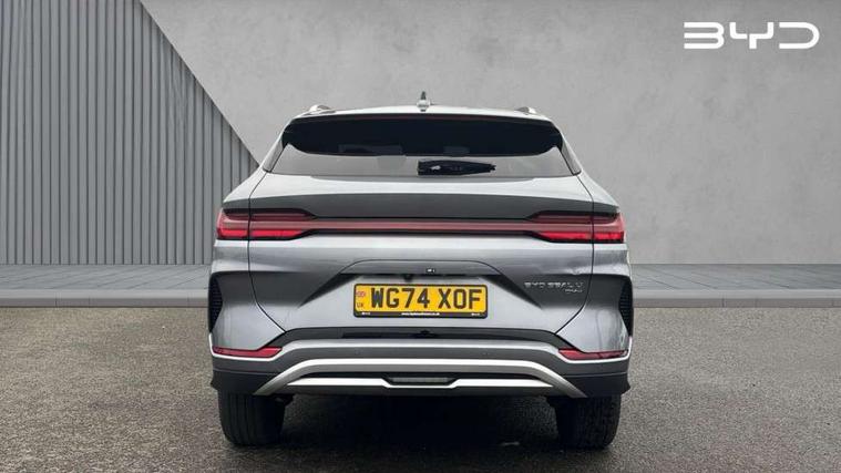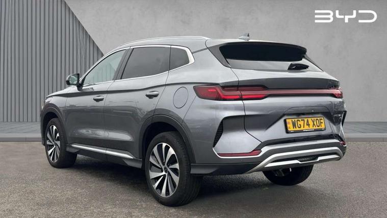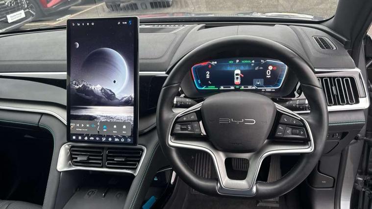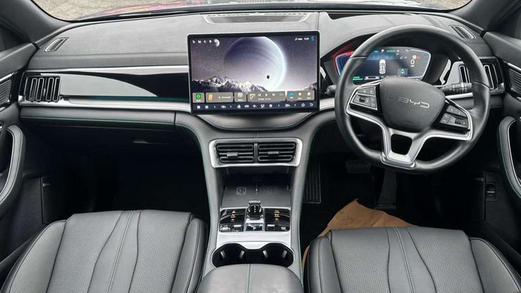 12.3" TFT full LCD instrument panel, 360 camera, Adaptive Cruise Control (ACC) and Intelligent Cruise Control (ICC), Automatic vehicle hold, Blind spot detection, BYD voice control assistant "Hi, BYD", Child presence detection, Controller Deceleration Parking (CDP), Drive mode select (Eco, normal, sport, snow), e-Call (emergency call), Electric tailgate release, Emergency Lane Keeping Assist (ELKA), Forward collision warning, Front and rear parking sensors, Front cross traffic alert and front cross traffic brake, Head up Display, Indirect driver fatigue management, Intelligent Speed Limit Control (ISLC), Keyless system entry and start, Lane change assist, Lane Departure Assistant (LDA) and Lane Departure Warning (LDW), Lane departure prevention, PAS, Predictive collision warning, Rear collision warning, Rear cross traffic alert and rear cross traffic brake, Rollover Control System (RMI), Smartphone wireless charging, 2 x 15W, Traffic sign recognition (TSR), Vehicle-to-Load (V2L) function, 11kW on board charger, Mode 3 Type 2 charging cable (3 phase), V2L (Vehicle to load) power strip - Type F, 15.6" Electrically rotatable touchscreen, FM/DAB+ radio, Front USB ports, 1 x 18W Type C, 1 x 60W Type C, Infinity sound system with 10 speakers, Rear USB ports, 2 x 18W Type C, Aluminium roof rails, Auto dimming interior rear view mirror, Auto headlamps (on/off), Dynamic welcome lights, Electric folding and heated door mirrors, Emergency tow hook, Exterior mirror footlights, Follow me home headlights (The headlights turned on in advance and delayed off function), Front windscreen, UV protection, thermal insulation and sound proofing, High beam assist, LED 3rd brake light, LED daytime running lights, LED Headlights, LED taillights, Metallic paint, One touch electric front/rear windows with pinch protection, Panoramic sunroof with anti-pinch sensor and electrically adjustable sunshade, Rain sensor windscreen wipers, Rear fog lights, Rear side wing doors, Rear window and rear windscreen with tinted glass, Rear wiper, 12V power outlet, 3 seat bench in 2nd row, 8 way electrically adjustable drivers seat, Adjustable rear headrests, Boot parcel shelf, Driver and passenger sunvisors with illuminated vanity mirrors, Driver seat memory function, Front centre armrest with 2 cupholders, Front LED reading lights, Front passenger seat with 4-way electric adjustment, Front seat footlights, Heat pump, Heated front seats, Heated steering wheel, Integrated headrest in front seats, ISOFIX and i-Size for front passenger and outer rear seats, LED front door lights, Nylon floor mats, PM2.5 air filter, PM2.5 air purification system, Rear air vents, Rear armrest with 2 cupholders, Rear side LED reading lights, Rhythm-reactive multi-colour ambient lighting, Single front passenger seat, Split folding rear seats - 40/60, Vegan leather multifunction steering wheel, Vegan leather upholstery, Ventilated front seats, 3x3 point rear seatbelts, ABS/EBD, Automatic emergency braking system, Brake override system (BOS), Comfort stop, Door open warning, Driver airbag, Electric parking brake, Force limiting pre-tensioned front seat belts, Front centre airbag, Front passenger airbag, Front passenger airbag deactivation, Front side airbags, Hill descent control, Hill hold control, Hydraulic Brake Assist (HBA), Hydraulic brake boost, Mechanical child safety lock, Rear middle seat force limiting seat belt, Rear seat belt pretensioners, Reflective vest, Side curtain airbags, Traction control system (TCS), Tyre pressure monitoring system (TPMS), Vehicle Dynamics Control System (VDC), Warning triangle, 2 x Smart keys, Anti theft alarm system, Automatic door locking, 19" Bi-colour alloy wheels, Tyre nut covers remover, Tyre repair kit,