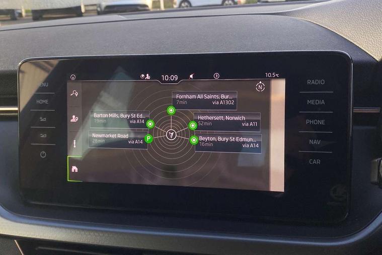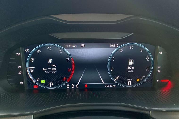 Amundsen satellite navigation with 9.2" touchscreen display, voice control, virtual cockpit and web radio, Bluetooth system, E-call, Front assist system, Gesture control, PAS, Rear view camera, Service indicator, Speed limiter, Virtual cockpit with 10.25" display, Wireless SmartLink for apple car play, android auto and mirrorlink, 8 Speakers, Auxiliary input socket, DAB Digital radio, Auto dimming rear view mirror, Body colour bumpers, Body colour door mirrors and handles, Chrome grille surround, Electric folding door mirrors, Electrically adjustable and heated door mirrors, Front and rear electric windows, Headlight range control, Heated rear window, LED rear lights - low functionality, Light sensors, Privacy glass, Rear fog lights, Rear side wing doors, Rear wiper, 12V Accessory socket in centre console, 3 seat bench in 2nd row, Chrome inner door handles, Dual zone climate control, Front head restraints, Glove compartment with illumination, Ice scraper, Isofix child seat fittings on outer rear seats, ISOFIX on front passenger seat, Manual lumbar support for front seats, Rake/reach adjustable steering wheel, Reading lights, Single front passenger seat, Sun visors with illumination on front passenger, Textile floor mats, Third rear headrest, Top tether for front passenger seat, Umbrella in driver's door, 3x3 point rear seatbelts, Airbags - driver and front passenger, ESP, Front passenger airbag deactivation switch, Front side airbags with curtain airbags, Hill hold control, Manual parking brake, Manual rear child locks, One tone horn, Rear disc brakes, Seatbelt reminder for driver an co-driver, Traction control, Tyre pressure monitor, Anti-theft alarm system with interior monitoring, backup horn, towing protection and remote central locking with SAFE system, Anti-theft wheel bolts, Electronic engine immobilizer, Latice curved decorative insert on the dashboard with hot stamping in copper and white ambient lighting white,