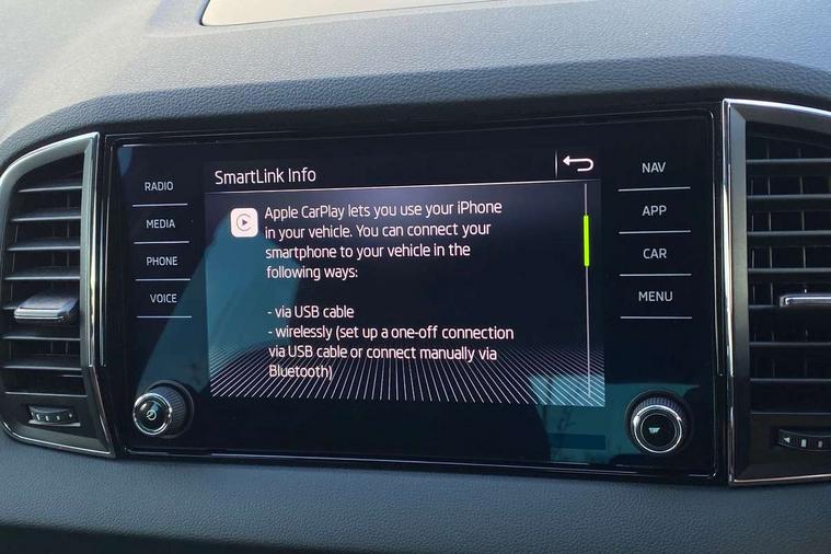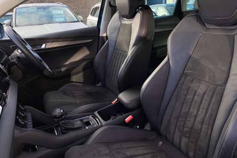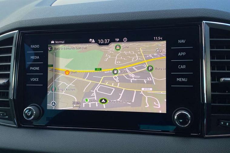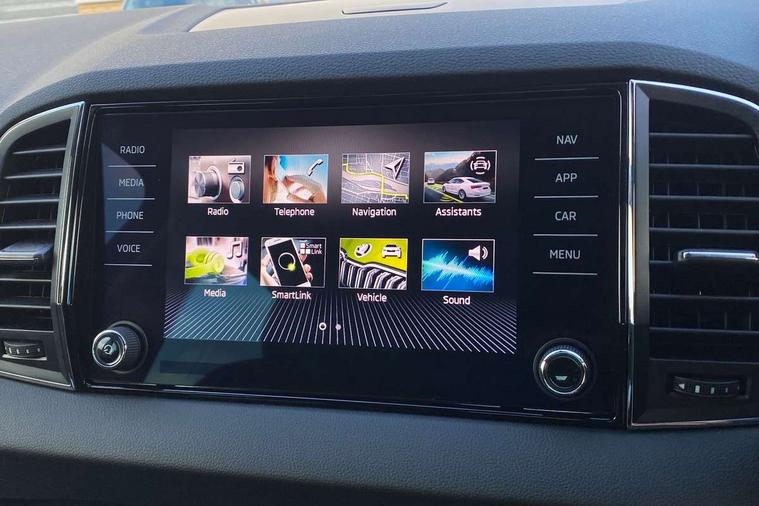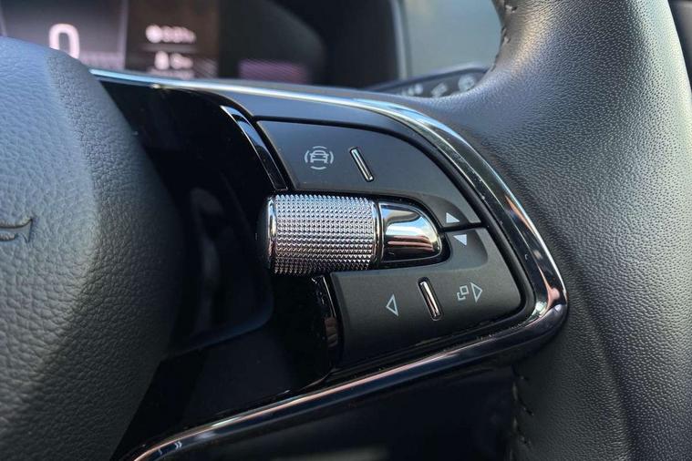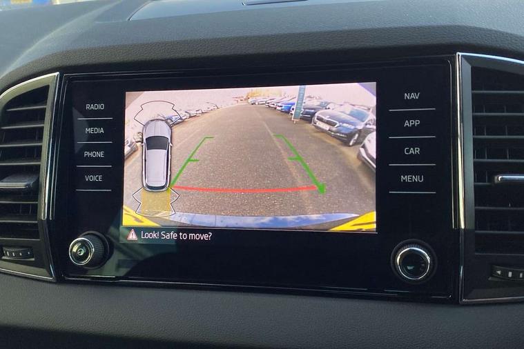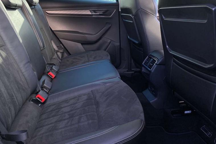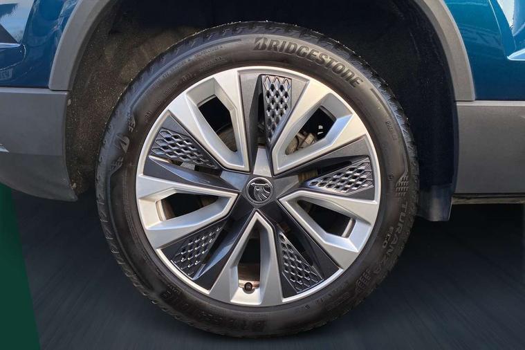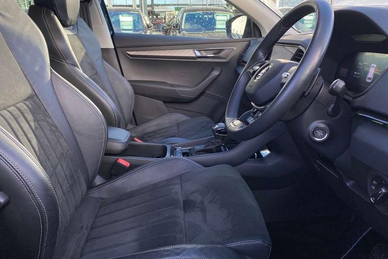 8" Digital display, Care connect, Driver fatigue sensor, Emergency services call system, Outside temperature gauge, Service interval indicator, SmartLink wireless for Apple and wired for Android, Start/stop system with regenerative braking, USB C Port x 2 in front centre console, 8 Speakers, DAB radio with Bluetooth, USB connection, Acoustic glass, Aero front windscreen wipers with intermittent function, Auto dimming rear view mirror with light and rain sensors, Black electric window control buttons, Body colour door mirrors and handles, Dynamic headlight range control with cornering light function, Electric front and rear windows with child proof lock, Heated rear windscreen, LED daytime running lights, LED rear lights with high functionality welcome effect and dynamic indicators, Light assistant (coming/leaving home/tunnel light), Plastic scuff plates, Privacy glass, Rear side wing doors, Rear spoiler, Rear window wiper with washer system and intermittent control, Safety reflectors on front doors, 1.5 litre bottle holders in driver and front passenger door panels, 12V socket in boot, 12v socket in front centre armrest with storage compartment and rear air vents, 2 spoke leather heated multifunction steering wheel with DSG paddles, 2 x Tablet holder, 3 rear height adjustable headrests, 3 seat bench in 2nd row, 4 foldable roof handles with rear coat hooks, Black floor carpet, Chrome inner door handles, Double sided boot floor, Foldable hooks in the boot, Front head restraints, Height adjustable front three point seats belts with tensioners, Height/reach adjust steering wheel, Ice scraper, Illuminated glovebox, Illuminated luggage compartment, Isofix child seat preparation for front passenger seat, Isofix child seat preparation outer rear, Manual lumbar support for front seats, Pen holder, Pollen filter, Rear boot cover, Rear reading lights, Rubbish bin door, Safety vest holder, Single front passenger seat, Storage box in upper central dashboard closed, Sunvisors with illuminated vanity mirrors, Textile floor mats, Ticket holder, VarioFlex seats with standard rear seat release, Boot pack - Karoq, Design Pack - Karoq, Parking pack - Karoq, Automatic door unlocking in case of crash, Automatic fuel cut off in case of crash, Child locks on rear doors, Driver airbag, Electronic parking brake with auto hold function, Emergency rear braking signal, ESC including ABS, MSR, ASR, EDS, HBA, DSR, RBS, MKB and traction control, Front side airbags, Hill hold control, Knee airbags, Passenger airbag with switch-off function, Pedestrian monitor, Seatbelt reminder signalisation and pretensioner for all seats, Three point seatbelts rear, Two tone horn, Tyre pressure display, Tyre pressure monitor, Alarm with interior monitoring, back up horn and tilt sensor with safe function, Electronic engine immobiliser, Keyless entry and start/stop, Remote central locking with 2 remote folding keys, Chrome framed air vents, 18" Miran alloy wheels in black, Anti-theft wheel bolts protection, Tool kit,