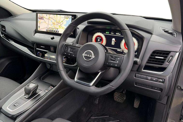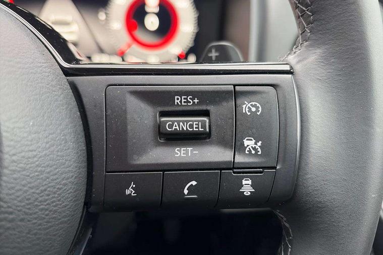 Android auto/Apple CarPlay (Wired), Blind spot warning, Drive modes (sport, normal, eco), Electric speed sensitive power steering, Emergency and breakdown call, Full Digital 12.3" TFT Digital Combimeter, Google maps services - search, weather, 3D maps and Google street view, Idle stop/start system, Intelligent around view monitor, Intelligent Cruise control (ICC), Intelligent driver alert system, Intelligent forward collision warning, Intelligent lane intervention, Lane departure prevention, Lane departure warning system, Maximum speed limiter, Moving object detection, Nissan connect 12.3 inch touchscreen infotainment system, Nissan connect navigation, Push button starter, Rear cross traffic alert, Rear parking sensors, Rear view camera, Remote control services - door locks, lights, horn and car locator, Telematics - notifications and connectivity services, TomTom live traffic services, Traffic sign recognition with legal speed adjustment, Trip computer, Virtual personal assistant and firmware over the air capability, Wireless apple carplay, 6 speakers, AM/FM audio system with DAB, Bluetooth audio streaming, Front USB connections (Type-A and Type-C), Rear USB charging only ports (Type-A and Type-C), Auto dimming rear view mirror, Auto rear wiper when reversing, Automatic hazard signal with emergency stop signal, Body colour mirror caps, Body coloured door handles, Bodyside mouldings, Chrome side window finisher, Door handle with button, Electric auto folding door mirrors, Electrically adjustable and heated door mirrors with LED turn indicator, Follow me home headlights, High beam assist, Intelligent auto headlights, LED daytime running lights, LED Headlights, LED rear lights, One touch front and rear electric windows with remote opening and closing, Partially body coloured bumpers, Privacy glass, Rear bumper with graphite insert, Rear reversing light (bulb lighting), Rear roof spoiler, Rear side wing doors, Rear styling plate, Shark fin antenna, Splash free rain sensing wipers, Super UV and infrared cut glass, Three blink turn signal, 12v power socket in dashboard and luggage, 2x Rear coat hooks, 3 bench rear seats in 2nd row, 3 rear headrests, 4 folding assist grip, 6 Luggage hooks - 4 on floor, 2 on side, 6-way manually adjustable driver's seat, 60/40 split folding rear seat bench, Ambient lighting around centre console, Centre console storage tray, Chrome interior door handles, Cloth monoform upholstery, Driver and front passenger sunvisors with illuminated vanity mirrors, Driver seat back pocket, Dual zone automatic climate control with pollen filter, Electrically adjustable lumbar support for driver, Front and rear door storage, Front centre console and armrest, Front cupholders x 2, Front door with bottle holders, Glovebox with light, Hard trunk cover, Height adjustable driver's seat, Height adjustable front headrests, Height adjustable passenger seat, Leather steering wheel, Luggage board system, Luggage space lighting, Manually adjustable passenger (slide recline + lifter), Multifunction steering wheel, Passenger seat back pocket, Rear armrest with 2 cupholders, Rear door bottle holders, Single front passenger seat, Soft PVC kneepad, Steering wheel gearshift paddles, Steering wheel switches, Sunglasses holder, Tilt/telescopic adjustable steering wheel, Two rear isofix child seat anchorage points with top tether, Welcome light and console tray ambient lighting, 3x3 point rear seatbelt pretensioners + load limiters, ABS with EBD and brake assist, Active brake limited slip, Auto hold function, Child locks on rear doors, Curtain and front side, far side airbags, Driver and passenger airbags, Driver, passenger and 2nd row rear seat belt reminder, Electronic parking brake, Front seatbelt pretensioners + load limiters, Height adjustable front seatbelts, Hill start assist, Intelligent blind spot intervention, Intelligent front emergency braking with pedestrian, cyclist recognition and junction assist, Intelligent rear automatic braking, Tyre pressure monitoring system, Vehicle dynamic control, Capless fuel filler, Engine immobiliser, Intelligent Key, Remote central door locking with deadlocking, Thatcham Cat.1 alarm, Interior instrumental panel B finisher, 18" Diamond cut alloy wheels, Tyre puncture repair kit,