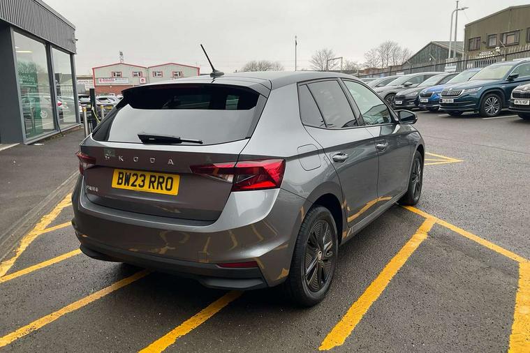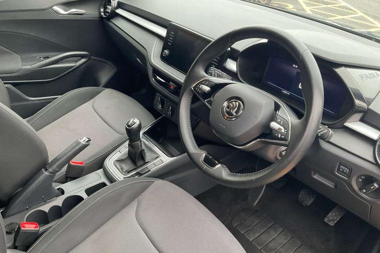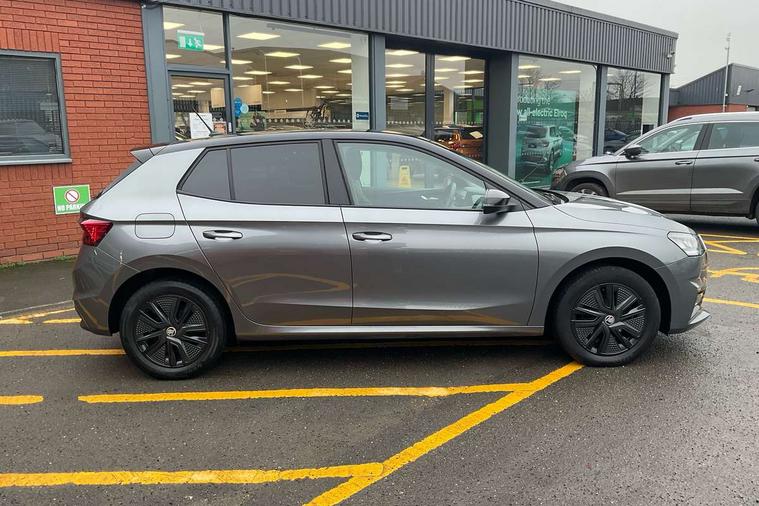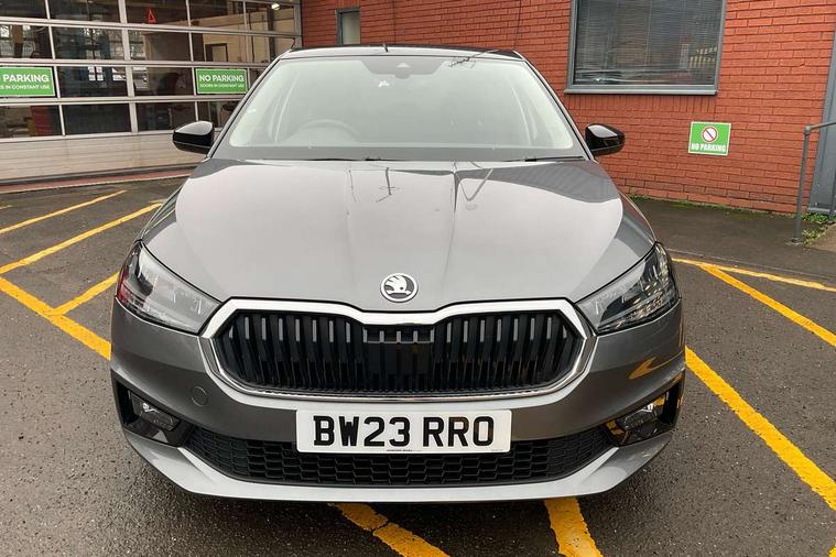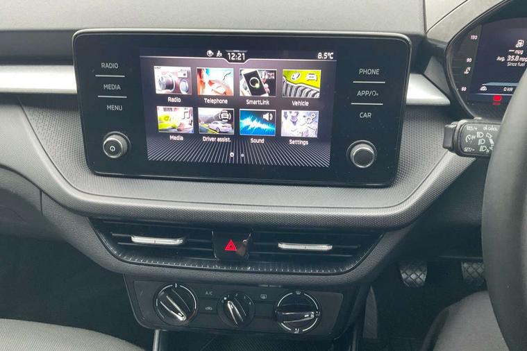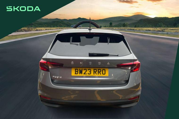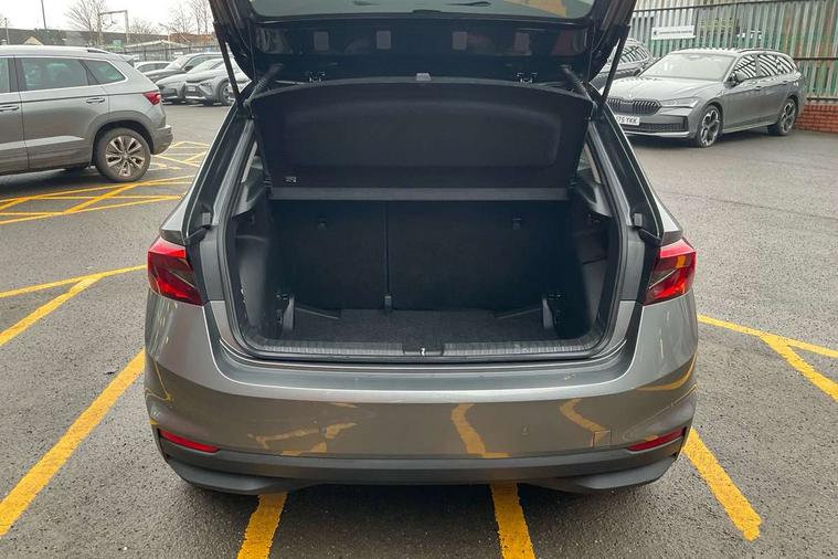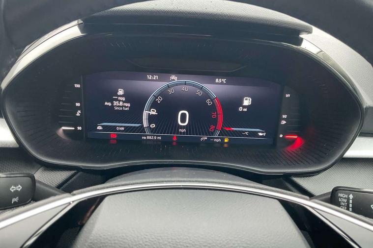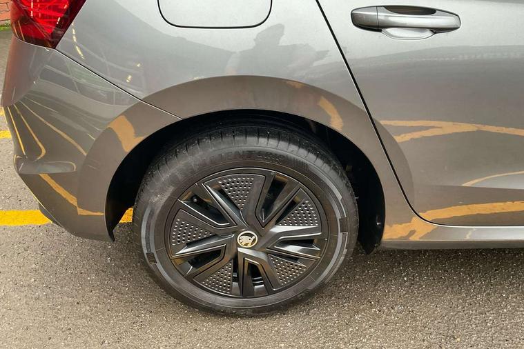 Bluetooth connection, Driver alert system - DAS, Electromechanical power steering, Exterior temperature gauge, Lane assist including road edge detection, Service interval indicator, Virtual cockpit with 10.25" colour display, 2x USB-C in the front (for data transmission and charging), 6 Speakers (4 in front and 2 in rear), Auxiliary socket for external MP3 player, Bolero radio with 8" colour display, DAB digital radio reception, Basic rear lights, Body coloured bumpers, Dimming rear view mirror with black frame, Door mirror integrated indicators, Electrically adjustable and heated door mirrors, Electrically adjustable front windows with function auto up/down, Front window wiper intermittent control, Headlight range control - Automatic, Ice scraper in fuel cap, LED daytime running lights with coming and leaving home feature, Mechanical adjustable rear windows, Privacy glass, Rear LED fog light, Rear side wing doors, Rear window wiper with washing nozzles, Roof colour door mirrors, Roof mounted spoiler, SKODA tailgate lettering in chrome, Third brake light, 3 rear headrests, Backrest split and folding, Central console with fixed cup holder and storage box, Chrome handbrake release button, Fabric upholstery, Gearshift knob/handle in leather, Grain satin black interior door handles, Hand brake lever handle in leather, Height adjustable front headrests, Height adjustable steering wheel, ISOFIX and TopTether anchorage points to the outer rear seats, ISOFIX and TopTether on the front passenger seat, Luggage compartment lighting, Pollen filter, Rear seat bench unsplit, Single front passenger seat, Storm grey headlining, Sun visors with mirror and airbag label on passenger side, Ticket holder, Umbrella in drivers door, 3-point height adjustable front seats belts with pretensioner and force limiter, Automatic warning lights in case of crash, Driver and passengers airbag with switch off function, e-Call+, ESC including ABS, MSR, ASR, EDS, HBA and XDS, Front and rear seat belt warning, FRONT ASSIST (AEB City and AEB Inter Urban), Front side airbags, Head airbags, One tone horn, Pedestrian protection, Three rear 3-points safety seat belts with pretensioner and force limiter including stop function for outer rear seat belts, Tyre pressure monitoring system, Anti-theft alarm system including immobiliser, interior monitoring, backup horn, and towing protection, Anodized cross line upper decorative trim, Colour Edition air vents, Grain satin black central console cover, Grain satin black lower decorative trim, Satin black door and side trim panel in front, Anti-theft wheel bolts protection, Super-low rolling resistance tyres,