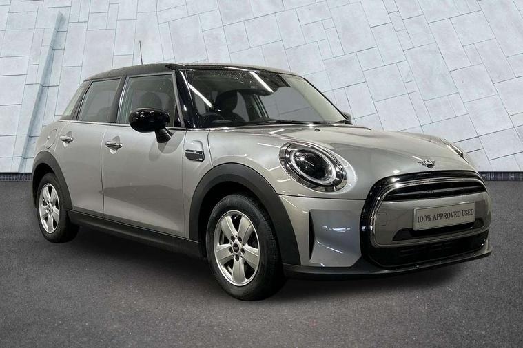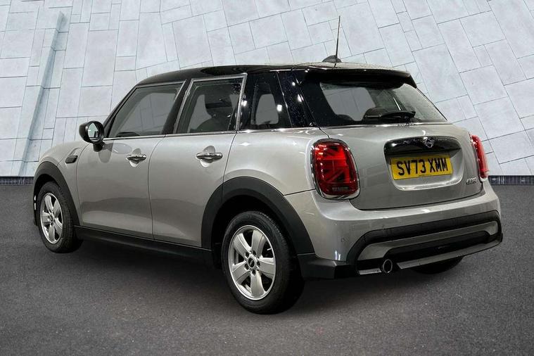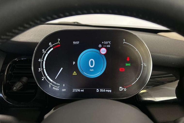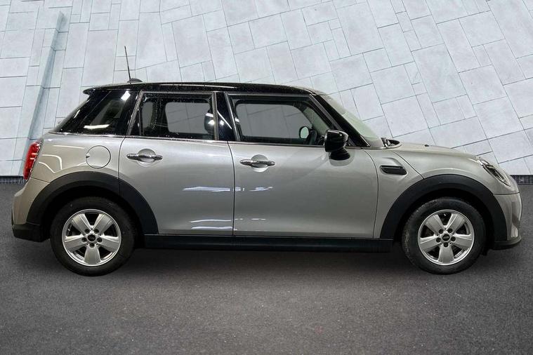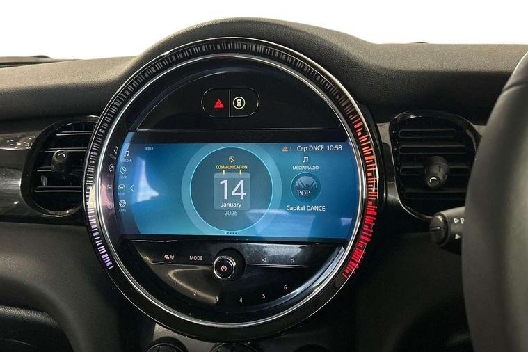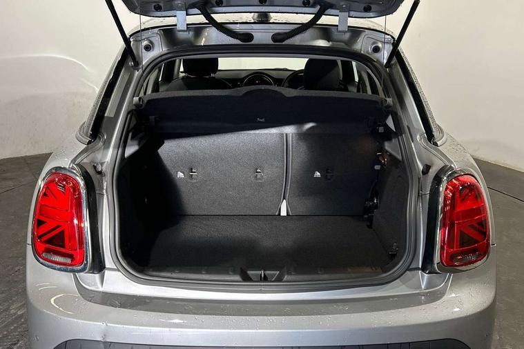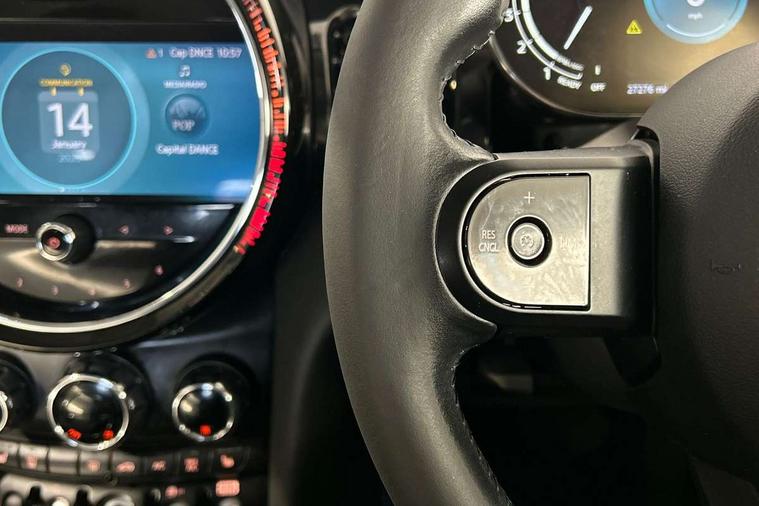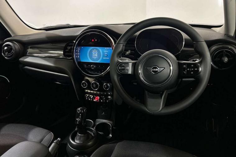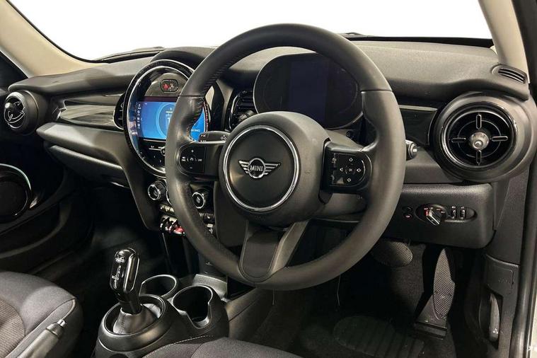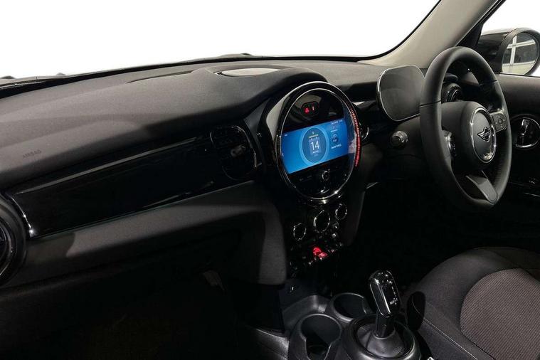 Apple CarPlay, Automatic start/stop function with brake energy recuperation, Compatible mobile phone bluetooth with audio streaming, Electro-mechanical speed dependant steering assistance, Flexible car sharing preparation, Mini E-call, MINI TeleServices, On board computer, Service interval indicator, Double Vanos system, Fully variable valve control, Gear change indicator display, High precision injection, Performance Control, Steptronic transmission with double clutch, 8.8" touchscreen with LED ring, FM tuner and DAB digital radio, 3rd brake light, Automatic headlight activation switch, Body colour fuel filler cap, Chrome border high gloss black slats radiator grille, Dynamic brake lights, Electric front+rear windows, Exhaust tailpipe on left with chrome finisher, Heated rear window, Heated windscreen washer jets, Metal door sill strips with MINI imprint, Model logo Cooper on right of tailgate, Rain sensor window wipers, Rear fog lights, Rear LED lights with union jack design, Rear side wing doors, Rear window wiper, Side scuttle panel with integrated indicator, Sun/heat protection glass, White indicator lenses, 12V Accessory socket in centre console, 3 seat bench in 2nd row, 4 lashing eyes in luggage compartment, 60/40 split folding rear seat, Ambient lighting, Carbon black colour line - Knee roll and door armrest, Chrome interior highlights, Cupholders, Front and rear head restraints, Front and rear isofix with front passenger airbag deactivation, Front and rear velour floor mats, Glove compartment, Height and length steering column adjustment, Interior lighting with 12 different colours across the dashboard, underneath door bezel with illuminated laser-engraved design on central display, Leatherette gearshift lever and handbrake gaiters, LED reading lights, vanity mirror lights, front foot well light and spotlight on front seats, Mechanical seat adjustment - forward/back & backrest for front seats and driver seat height adjust, Multifunction steering wheel, Satellite grey headlining including grab handles and clothes hooks, Single front passenger seat, Sport leather steering wheel with speed limiter and audio/communication controls, Storage compartments in doors, Sunvisors with vanity mirrors, 3 point seatbelts on all five seats, 6 Airbags - front, side, head and seat belt tensioners, Anti-lock braking system (ABS), Child locks on rear doors, DSC - Dynamic Stability Control, Front and rear disc brakes, Hill start assist, Single tone fanfare horn, Tyre pressure monitoring system, Alarm system with tilt sensor, monitoring doors, bonnet interior and tailgate, Electronic vehicle immobiliser, Start/stop toggle with keyless go, Piano black interior trim, Tool kit, Tyre repair kit,