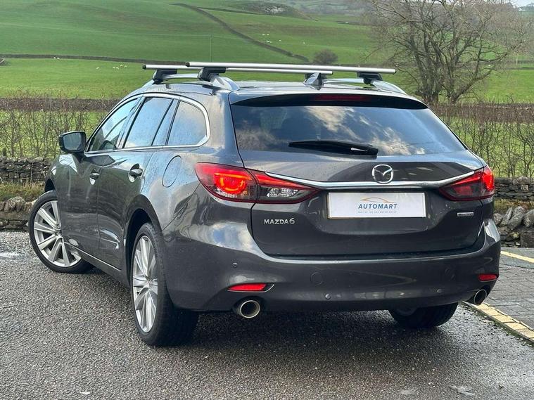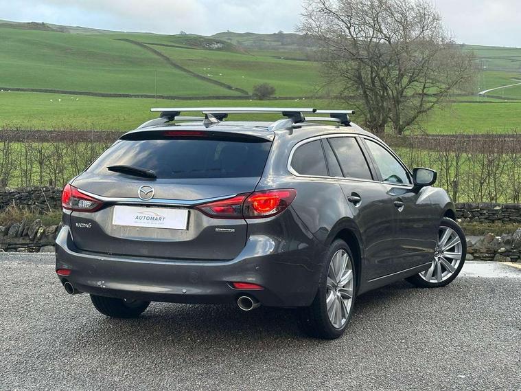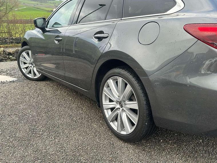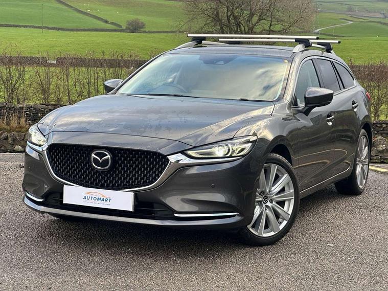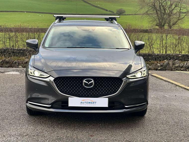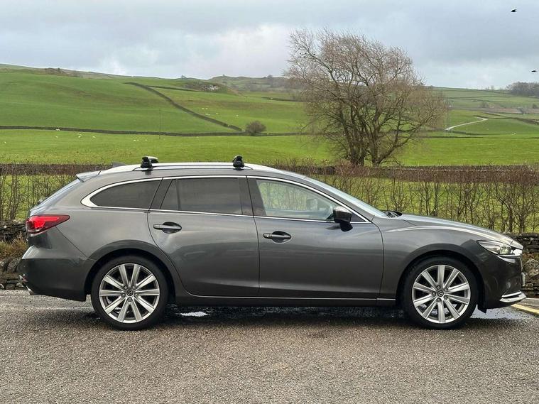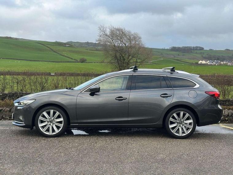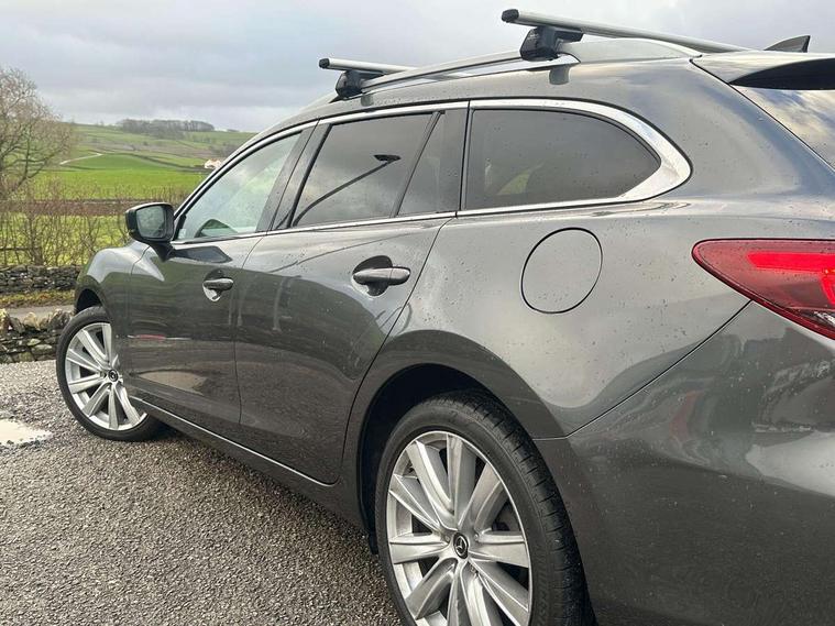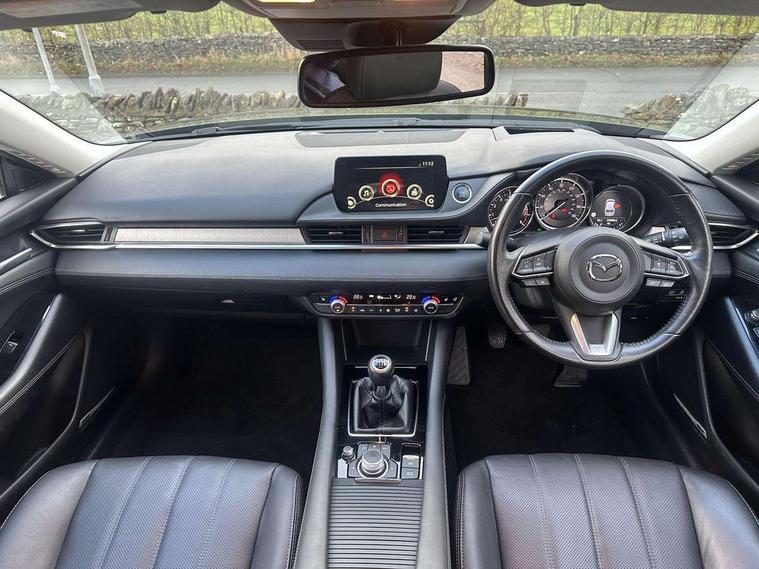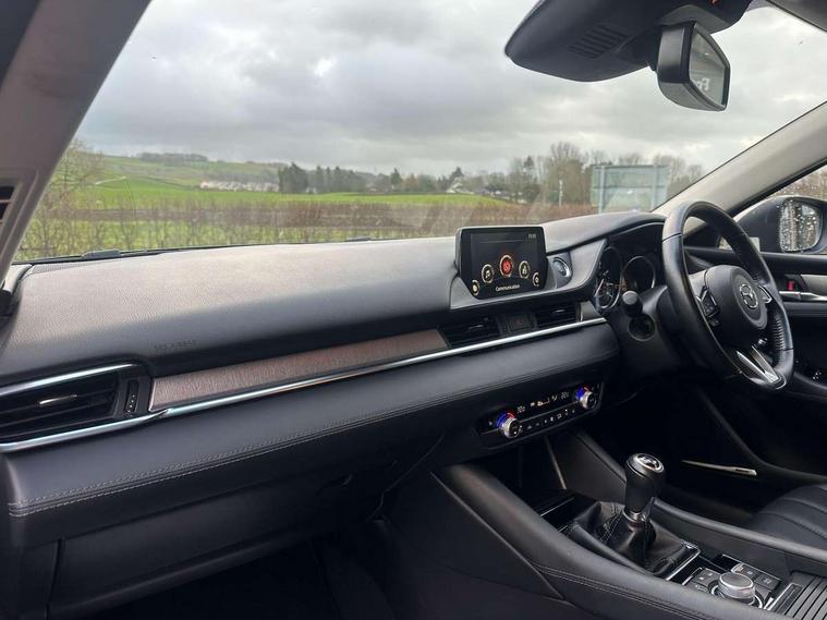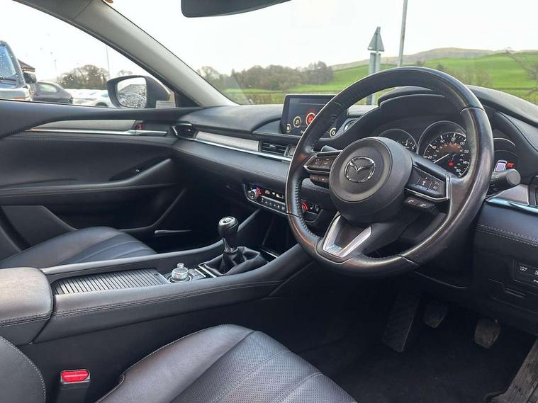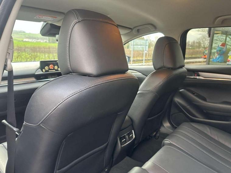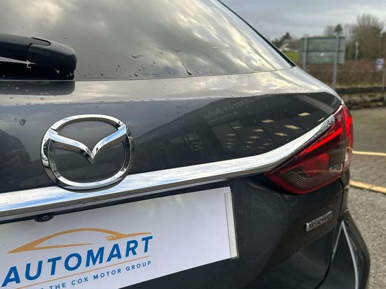 8" touchscreen with multimedia commander, Adjustable speed limiter, Audio transfer from bluetooth devices, Black, soft touch dashboard panel, Blind spot monitoring with rear cross traffic alert, Bluetooth connectivity with voice control, Colour head up display, Colour TFT display with speed, traffic signs and cruise control information, E-call, Electric power steering, Emergency stop signalling system, Engine start/stop button, Front and rear parking sensors, Intelligent speed assist, Lane keep assist system (LAS) with Lane departure warning system (LDWS), Radar cruise control, Reversing camera, Satellite navigation system with european maps, Service indicator, Tailgate, Traffic sign recognition, Trip computer, Wireless Apple CarPlay and wired Android Auto, I-ELOOP, i-stop, 2 USB ports, Additional USB connection in rear, Auxiliary input socket, Mazda Multimedia System - AM/FM/DAB radio, MP3 with 11 Bose speakers, Steering wheel mounted audio controls, 3rd brake light, Adaptive front lighting system, Auto dimming rear view mirror, Body colour door handles, Body colour rear roof spoiler, Body coloured door mirrors, Body coloured rear bumper, Chrome finish signature wing, Coming/leaving home lighting function, Dual chrome exhaust, Dusk sensitive headlamps, Electric front/rear windows/one touch facility, Electrically adjustable/heated/auto power folding door mirrors with integrated indicators, Front body coloured with bright lower mouldings, Front, rain-sensing with adjustable sensitivity and speed wipers, Gloss black grille inserts, High beam control, Intermittent rear wash/wipe, LED auto leveling headlights, LED front fog lights, Privacy glass, Rear bumper with black lower mouldings, Rear fog lights, Rear side wing doors, Roof rails, Scuff plates, Shark fin antenna, Signature LED daytime running lights, Windscreen wiper de-icer, 12V power socket in centre console, 3 height adjustable rear headrests, 3 seat bench in 2nd row, 60/40 split folding rear seat, Auxiliary power socket in luggage area, Driver seat with power slide, recline, height and lumbar adjustment with memory, Driver, Front passenger and two rear grab handles with coat hooks, Driver/passenger sunvisors with ticket holders + vanity mirrors, Dual zone climate control, Folding rear centre armrest with USB input, Front and rear courtesy lamps, Front armrest with storage bin, Front centre storage with two cupholders, Front driver and passenger seatback pocket, Front passenger and driver door pockets, Front passenger seat with power slide, recline and height adjustment, Gear shift indicator, Heated front seats, Heated steering wheel, Illuminated glovebox with lock, Interior incandescent lighting, Isofix rear child seat fastenings, Karakuri tonneau cover, Leather upholstery, Leather wrapped gearshift, Leather wrapped steering wheel, Light roof lining, Luggage compartment lighting, Luggage compartment power outlet, Rear air vents, Roof mounted sunglasses holder, Single front passenger seat, Tilt/telescopic adjustable steering wheel, 3 point ELR front seat belts, 3 rear 3 point seatbelts with ELR, ABS + EBD + EBA, Active bonnet, Active front headrests, DSTC-Dynamic Stability and Traction Control, Electronic parking brake with auto hold, Front Advanced Smart City Brake Support (SCBS), Front and rear curtain airbags, Front dual stage driver and single stage front passenger airbags, Front passenger airbag cut off switch, Front side airbags, G-Vectoring control plus, Height adjustable front seatbelts with pre-tensioners and load limiters, Hill hold control, Manual child lock in rear doors, Seatbelt reminder front and rear, Tyre pressure monitoring system, Automatic door locking, Deadlocking system, Remote central locking, Smart keyless entry, Thatcham category 1 alarm + immobiliser, Vinyl leather door panel trim, 19" Bright alloy wheels, Tyre repair kit,