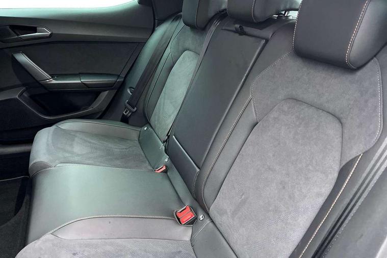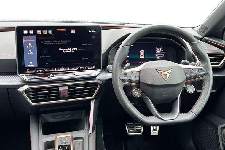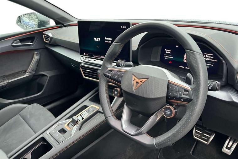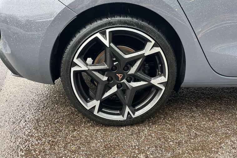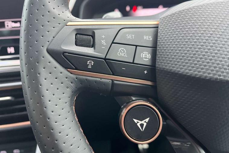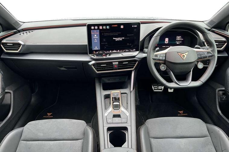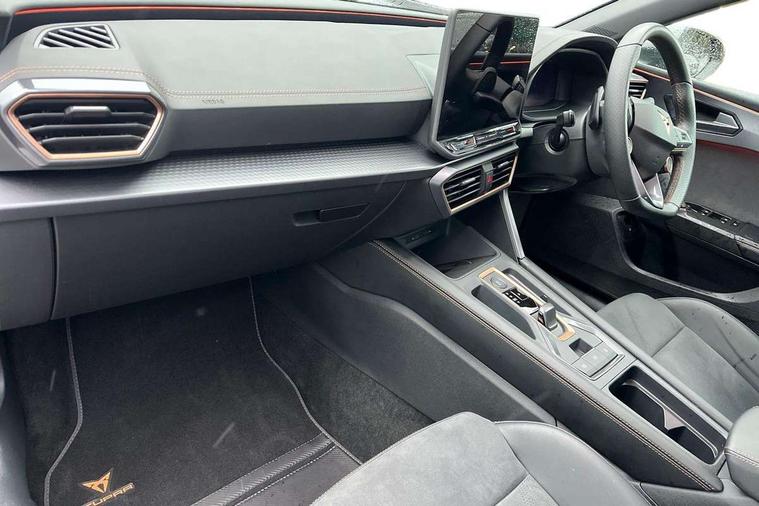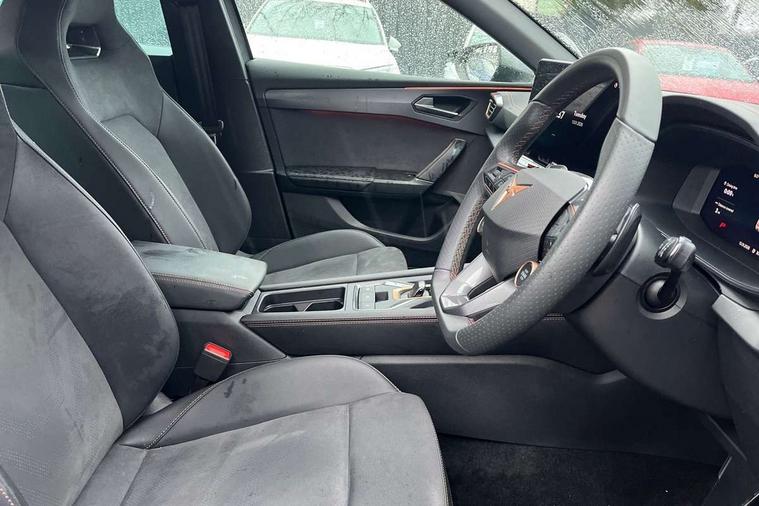 Adaptive cruise control with follow-to-stop and speed limiter, CUPRA drive profile selection with (Comfort/Sport/Individual), throttle response and gearshift mode, Digital cockpit, Dynamic road sign display, E-call, Four x USB Type C ports (2 in front and 2 in rear), Front and rear parking sensors, Front assist with forward collision warning braking reaction to vehicles, pedestrians and cyclists, Full link smartphone integration with Mirror Link, wireless Apple CarPlay and wired Google Android Auto, Lane assist, Lockable tailgate, Rear view camera, RPM, trip computer, outside temp gauge, instrument light brightness, low fuel warning light, lights on reminder, gearshift indicator, Service interval indicator, Start/stop system with regenerative braking, Wireless phone charger, 10 amp mode 2 charging cable, 16 amp mode 3 charging cable, Auxiliary input socket, Auto dimming rear view mirror, Body colour door handles, Body coloured bumpers, Cupra sports bumpers, Dark tinted rear windows, Electric front/rear windows, Electrically adjustable, heated and folding door mirrors, High beam assist, LED front fog lamps with cornering function, LED rear fog lamp, Matrix LED Headlights with variable light distribution, Matrix Beam and Dynamic headlight range control, Rain sensing wipers, Rear side wing doors, Rear wash/wipe, Separate daytime running light with automatic headlight control and coming home feature, Third brake light, Welcome light with logo projector in door mirrors, 12v power supply in centre console, 3 seat bench in 2nd row, 5 headrests, 60/40 split rear bench seat with armrest, Ambient lighting (glovebox, footwell, ambient lighting multicoloured), Black headlining, Cupra sports pedals, CUPRA Supersports, heated steering wheel with satellite buttons, Dinamica cloth upholstery, Electrically adjustable driver seat and lumbar support with memory function + manually adjustable passenger seat, Folding boot cover, Front and rear reading lights X 4, Front centre armrest, Heated front seats, Height/reach adjust steering wheel, Illuminated interior front door sills, Interior wraparound lighting, ISOFIX points in outer rear seats with top tether anchorage points, Single front passenger seat, Storage pockets on rear of front seats, Sunvisors with illuminated mirror, Three zone climate control, Dynamic and comfort pack - Leon Cupra, Media system plus with 12.9" display + navigation pack - Leon Cupra, 3 point seatbelts on all rear seats, ABS, Brake control system - ESC and brake booster, Child proof door locks, Cupra black brake calipers, Driver and front passenger airbags with front passenger airbag de-activation, front side and curtain airbags, Electronic parking brake, Hill hold control, Rear disc brakes, Seat belt reminder for front and rear seats, Tiredness recognition system, Tyre pressure monitoring system, Anti theft alarm system with interior monitoring in cab, backup horn and towing protection, KESSY Advanced - Keyless start, keyless entry, Locking wheel bolts, Chrome and copper interior detailing, 19" Polar machined sport black and silver alloy wheel with 91Y tyres, Breakdown kit, Tool kit,