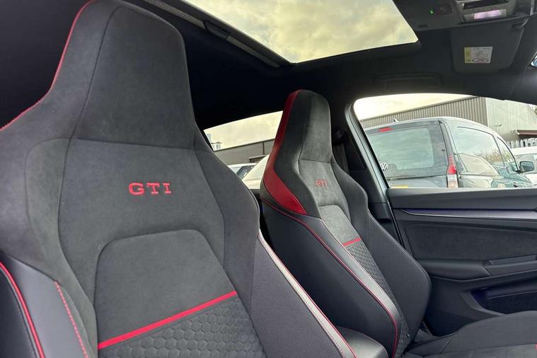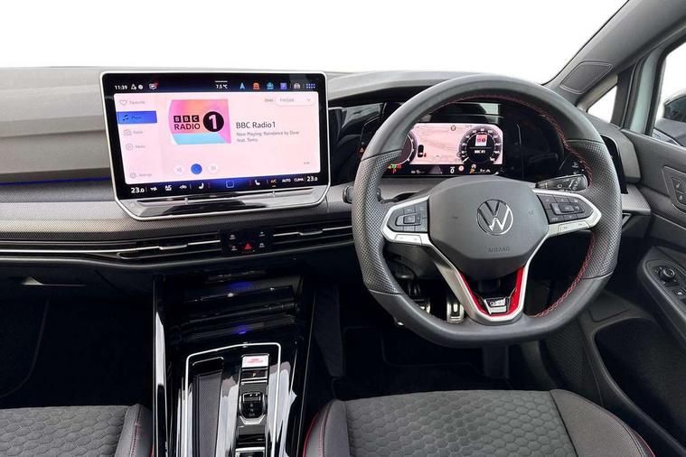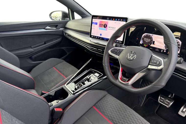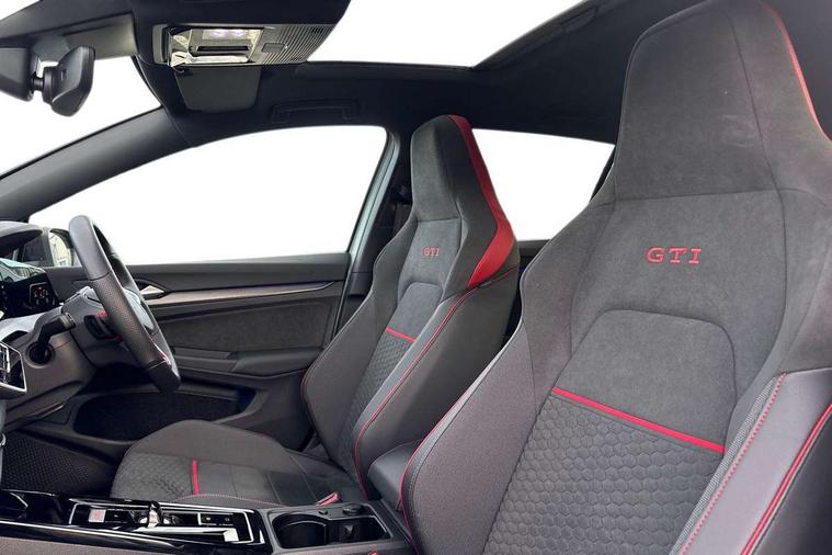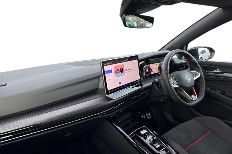Activated carbon canister, Adaptive cruise control (ACC) with speed limiter and front assist (reacting to vehicles pedestrians and cyclists), Advanced driver attention and drowsiness monitor, Driver alert system, Dynamic road sign display, E-Sim card for online connectivity, eCall emergency call system, Front and rear parking sensors, Lane assist, traffic jam assist and emergency assist, Lane change system side assist, rear traffic alert and exit warning system, Multi-color Digital cockpit pro, selection of different info profile possible, Multifunction camera for distance control, Navigation system, Oncoming vehicle braking when turning including swerve support, Preparation for light assist system, Progressive steering, Speedo, rev counter, electronic odometer, trip, service interval display, exterior temperature and fuel gauge, Voice assistant and voice enhancer with chat GPT, Warning signal and warning light for front and rear seatbelts not fastened, We connect plus preparation, We connect preparation, Wireless app connect, Front differential lock, Front stabilizer bars, Petrol Particulate Filter, Sports suspension, Start-stop system with battery regeneration (recuperation - energy recovery during braking), Comfort telephony + wireless charging, without wireless aerial connection, Digital radio reception (DAB), Diversity antenna for FM reception, Infotainment system with 12.9" display, Mobile phone interface with inductive charging feature, 3rd brake light, Auto dimming rear view mirror, Body colour door handles, Bumpers in "Clubsport", air intake in honeycomb structure, Chrome plated radiator grille inserts and light switch surrounds, Exterior ambient lighting with illuminated lighting animation and wake up/goodbye scenario, Exterior mirrors convex on the left and aspherical on the right, Front and rear electric windows, Front fog lamps, Heat insulating windshield made of laminated glass, Illumination Volkswagen logo, Iluminated lighting animation with wake up/goodbye scenario and illuminated door handles, LED daytime running lights, Nameplate 'GTI' set, Rain sensor, Rear exhaust tailpipe, Rear fog light on one side and reversing lights on both sides, Rear side wing doors, Rear windscreen washer and wiper with interval delay, Remote electrically foldable door mirrors, puddle lights and reverse activated passenger's door mirror, Welcome light with surround lighting, 12V socket in front centre console, 12V socket in luggage compartment, 2 USB C ports in front, 2 USB charging sockets on the centre console in the rear charging capacity upto 45W, 3 rear head restraints, 3 seat bench in 2nd row, Air care climatronic 3 Zone automatic climate control with rear air conditioning control panel, Aluminium gearshift handle, Ambient lighting with 30 colour incl. LED light unit in front footwell with selectable light colour, Brushed stainless steel pedals, Carpet mats, front and rear, Front centre armrest, Front passenger seat, ISOFIX anchors for child seats on outer rear bench seats and on front passanger seat compatible for i-Size, Luggage compartment lighting, Rear cupholder and loadthough, Soul black instrument panel, Split folding backrest with centre armrest and unsplit rear seat bench, Storm grey roof lining, Sun visors with illuminated vanity mirrors, 3 point height adj front seatbelts + pretensioners, 3 rear three point seatbelts, ABS, Autonomous emergency braking front assist with pedestrian and cyclist monitoring, Child locks on rear doors, Driver and front passenger airbag with front passenger airbag deactivation, Electronic parking brake with auto hold, ESC (Electronic Stability Control), Proactive passenger protection system, Rear disc brakes, Two tone horn, Tyre pressure monitoring system, Volkswagen roadside assistance, Alarm with interior protection, Anti theft wheel bolts, Keyless locking and starting system keyless accesss with SAFELOCK, Preparation for alcohol interlock, Decorative inserts carbon grey for dashboard and front door trim panels,