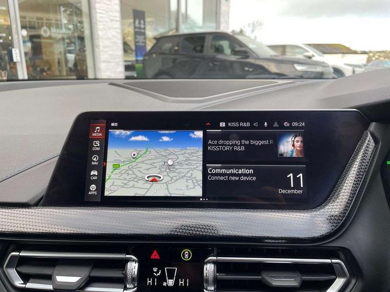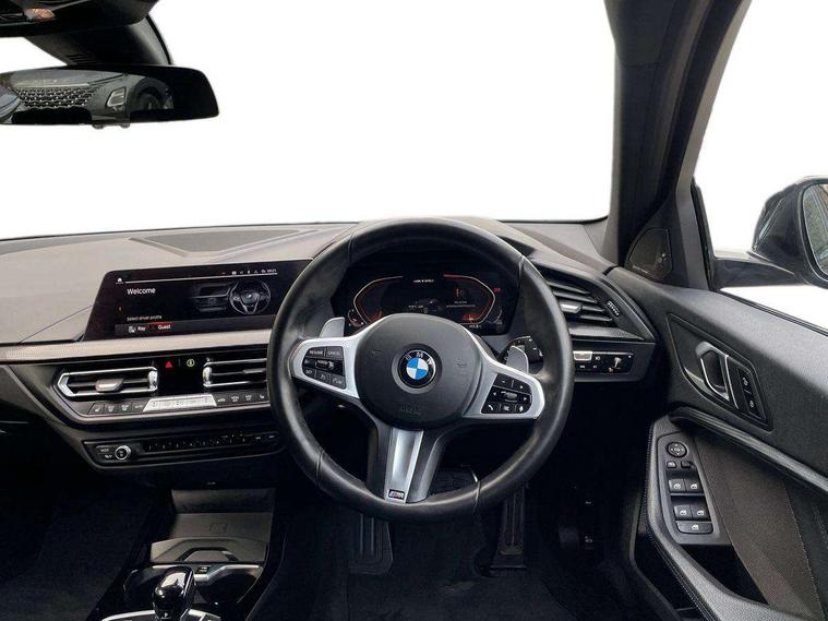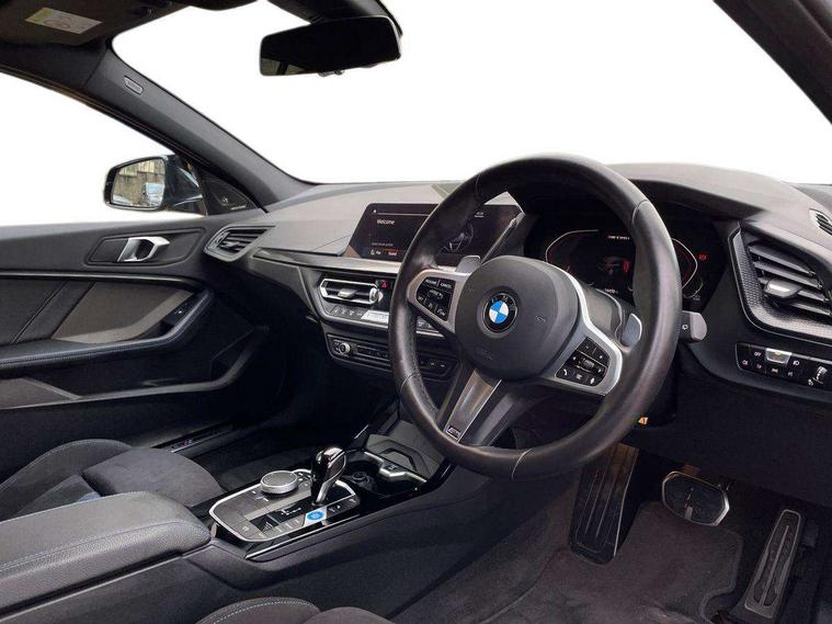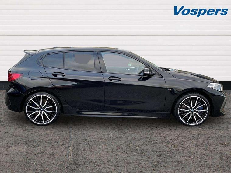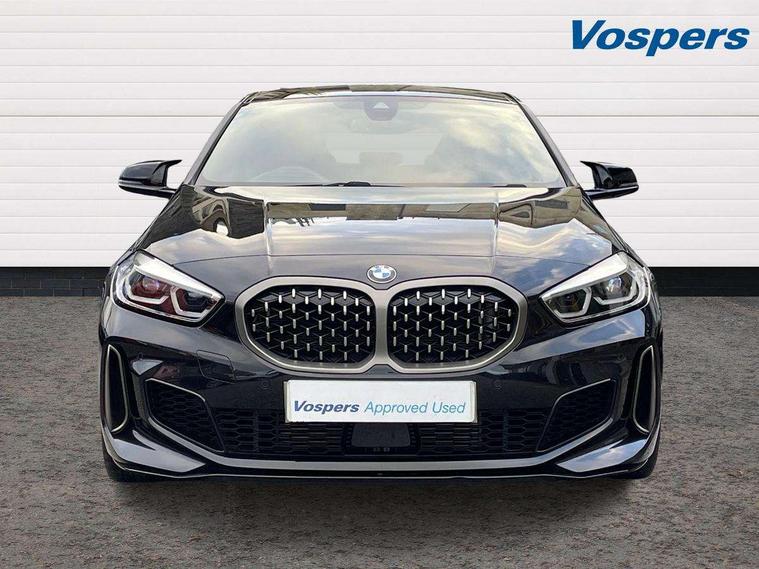 Active guard plus, Attentiveness assist, BMW ConnectedDrive online services, BMW Teleservices, Check Control warning system for monitoring of lights and door/luggage compartment open warning, Cruise control with speed limiter, Eco pro mode, Electric power steering, Electro hydraulically controlled multi-plate clutch transfers drive to rear axle and with power take-off device located on the front differential., Energy efficient operating strategy, Front axle single joint with specific axle kinematics to minimise drive influences on steering + provide increased rigidity agile driving behaviour, Gearshift time display in manual mode, Integrated owners handbook, Lane departure warning system, M Sports steering with M135i xDrive specific settings, Oil sensor for level and grade, On board computer, Optimum shift indicator, Personal Profile, Pull away assistant, Rigidly mounted rear subframe - Multi link construction with separate spring / damper configuration and excellent driving characteristics, Speed limit Info including no-overtaking indicator, Sporty fast gear shifting in sport mode, Aluminium lightweight construction, Anti roll bar front and rear, Balancer shaft, Double VANOS, Drive Performance Control, Eight speed sport automatic transmission with gearshift paddle switches, Electronic differential lock, Electronic selector lever, Engine cover with M performance designation, High precision injection, Larger fuel tank capacity (50 litres), Launch control, M135i specific heavily de-throttled engine intake air guide, M135i specific high-performance cooling package, M135i specific larger turbocharger with integrated divert-air valve, Petrol Particulate Filter, Twin tube gas filled shock absorbers with degressive characteristic curve, VALVETRONIC engine management, Variable, stepless and infinitely adjustable distribution of drive torque between the front and rear axles, xDrive intelligent all wheel drive with M135i specific reinforced components, DAB Digital radio, Auto dimming rear view mirror, Automatic headlight beam throw control, Automatic windscreen wipers and automatic headlight, Body colour door handles, Body colour roof trims, Cerium grey exterior mirror caps, Direction indicator side lights in exterior mirrors, Electrically adjustable exterior mirror with mirror adjustment switch on drivers armrest and aspheric on driver side, convex on passenger side, Exhaust tailpipe, Cerium Grey with bevelled finish - twin, round 100mm, left and right split, Fading support, Folding side mirrors with auto dimming/folding wing mirrors with auto dimming, Follow me home headlights, Front and rear bumper system with replaceable deformation elements, Front and rear electric windows with open and close fingertip control, anti trap facility and comfort closing, Front door sill finishers with M135i designation, Green tinted heat protection glazing, High gloss shadowline window frame, Recess cover mirror frames and B/C pillar embelisher trim, High level third brake light, Integrated front windscreen with washer jets, Kidney grille frame in Cerium Grey with Mesh design, LED daytime running lights, LED eyebrow turn indicators, Lightweight engineering, M logo designation side in cerium grey, M Performance exhaust system with valve control and minimised exhaust back pressure, M Performance specific setup, M Sport spoiler, Matt black air guide grilles, Matt black wheel arch trim, Model designation on electric bootlid includes xDrive designation for M135i xDrive, Nearside reverse light in rear light cluster, Preparation for high beam assistant, Rear fog lights, Rear side wing doors, Rear window wiper, Reinforced crank drive, new pistons and adapted con rods, Shark fin antenna, Trailer stabilisation logic, Visible VIN plate, Welcome lighting, 12V power socket in front centre console with blanking plug, 3 rear seat head restraints, 3 seat bench in 2nd row, 3 spoke sports leather steering wheel with black leather and stitching, pearl chrome decorative finish, specific M Badge, Anthracite headlining, Black boot net with lashing eyes, Cargo function on 2nd seat row, Child seat ISOFIX attachment for two outer rear seats and front passenger seat with anchorage points, Conditioned based service, Driver and front passenger backrest net on rear, Driver and front passenger seat heating, Driver side folding compartment in instrument panel, Folding rear clothes hook, Four grab handles integrated in roof lining, Front and rear door pockets with bottle holders, Front and rear side armrest integrated into door trim, Front armrest, Front M sports seats, Glove compartment, Height adjustable front head restraints, Luggage compartment for bag hooks on left and right, foldable luggage compartment liner and four lashing eyelets, Manual adjust steering wheel, Multi-function controls for steering wheel, Single front passenger seat, Storage compartment in centre console, Storage compartment in luggage compartment, Stowage of the parcel shelf in luggage compartment trim, Sun visors with vanity mirrors and insert tab, Two front centre console cupholders, Two zone automatic air conditioning, Type C two USB ports in rear centre console, Velour floor mats, Additional interior lighting pack - 1 Series M135i, BMW live cockpit professional pack- 1 Series, Connected pack professional - 1 Series, Interior lights pack - 1 Series, M Sport exterior styling aerodynamics pack - 1 Series 135i, 2 tone horn, 3 point seatbelts on all seats, front pyrotechnic belt tensioners, stopper and belt force limiters, rear coded belt buckles, Airbags - Front driver/passenger, front and rear curtain head protection, front side, manual deactivation of front passenger airbag, Anti lock braking system (ABS) with brake assist, BMW emergency call, Brake drying, Braking readiness, Child proof locking system in rear door, City braking function, Comfort modes, Cornering brake control, Crash sensor activating of airbags, Unlocking doors, hazard warning lights, interior light