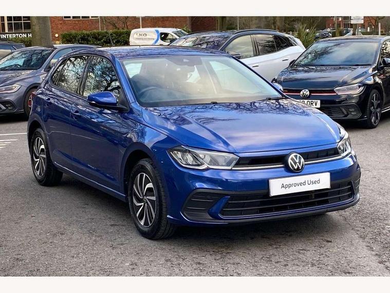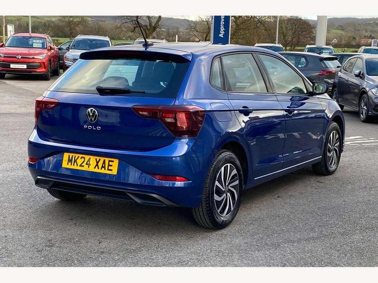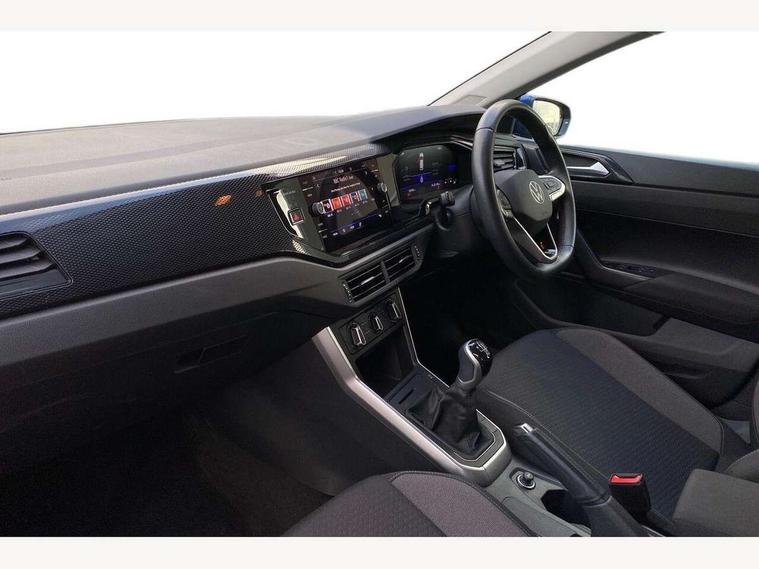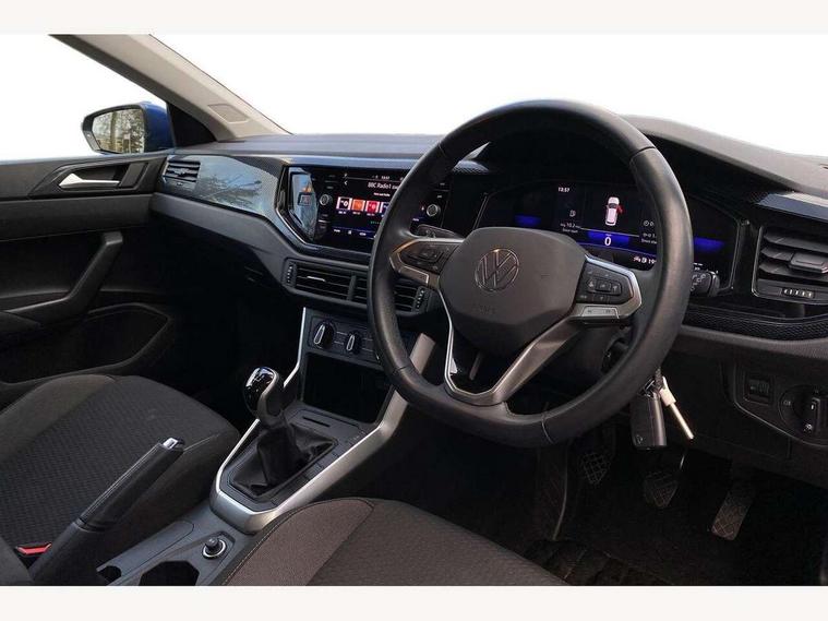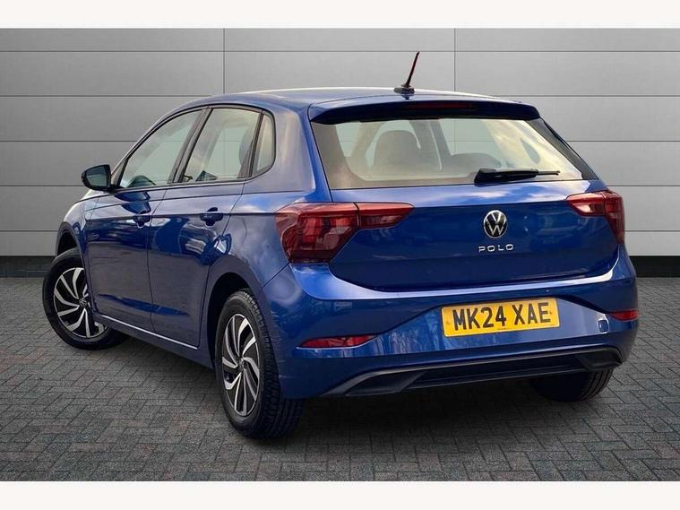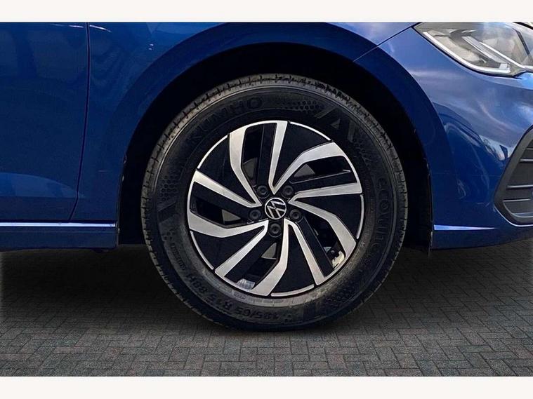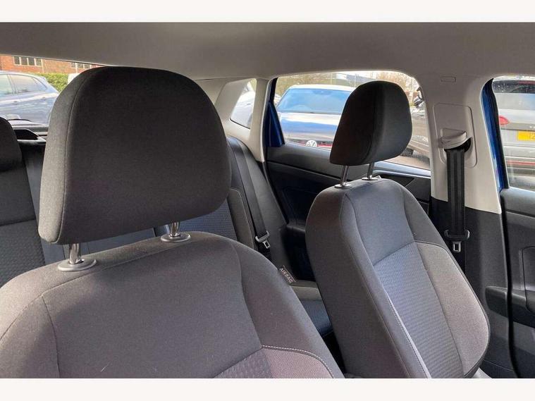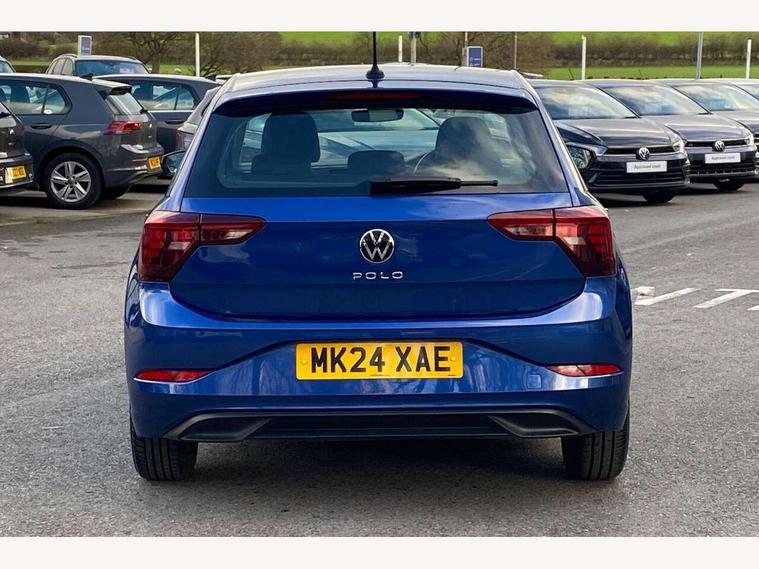 Advanced driver attention and drowsiness monitor, Bluetooth mobile phone interface, Cruise control + speed limiter, Dynamic road sign display, Emergency call service, Lane keeping system Lane Assist, Power assisted speed sensitive steering, Preparation for navigation system with media and internet package, Preparation for We connect and We connect plus, Speedo and rev counter, electronic odometer, trip, service interval display and exterior temperature gauge, Standard rear axle, Trip computer, Warning signal and warning light for front and rear seatbelts not fastened, Washer fluid level indicator, Wireless app connect, Front wheel drive, Rear shock absorpion, Start-stop system with battery regeneration (recuperation - energy recovery during braking), DAB Digital radio, Diversity antenna for FM reception, Front and rear 6 speakers, Automatic dimming interior rear view mirror, Body colour bumpers with chrome inserts, Body colour door handles, Body colour door mirrors, Electric front windows, Engine badge deletion, Heat insulating and laminated safety glass windshield, Heat insulating darkened glass in side and rear windows, Heat insulating glass windscreen, Power folding adjustable/heated exterior mirrors and front passenger exterior mirror lowering function, Rain sensor, Rear electric windows, Rear fog light, Rear side wing doors, Rear windscreen washer and wiper with interval delay, Third brake light, 12V power socket in centre console, 2 front and 2 rear reading lights with switch off delay and dimmer, 2 USB-C ports in the front, 2 USB-C charging sockets on the center console in the rear, 3 rear head restraints, 60/40 split folding rear seat and rear seat bench not split, Ceramique roof lining, Chrome plated radiator grille inserts, air vent surrounds and light switch surrounds, Door and side trim panel, Driver and front passenger seat height adjustment, Driver/passenger sunvisors with illuminated vanity mirrors, Front centre armrest, Front seat backrest storage pockets, Front standard seats, Handbrake lever handle in leather, Hartley/Thomas cloth upholstery, Headliner in recycled material, Isofix child seat preparation easy-fit (for two outer rear seats, and front passenger seat) compatible with I-size, Leather trimmed gear knob, Luggage compartment cover, Luggage compartment lighting, Removable luggage compartment floor, Single front passenger seat, Standard climatic zones, Standard pedal cluster, Three spoke leather wrapped multifunction steering wheel, Light and vision pack - Polo, 3 point height adj front seatbelts + pretensioners, 3x3 point rear seatbelts, ABS, Driver and front passenger airbag with front passenger airbag deactivation, Drivers and front passengers safety optimised head restraints, ESC (Electronic stability control) + EDL (Electronic Differntial lock) and ASR (Traction control), Extended and predictive pedestrian/ cyclist protection, Front assist with autonomous emergency braking (for Adaptive Cruise Control ACC up to 130 mph), Front curtain and side airbags with center airbag, Front disc brakes, Hill hold control, Manual child lock in rear doors, Rear drum brakes, Single tone horn, Tyre pressure loss indicator, Alarm with interior protection, Anti-theft alarm system with interior monitoring, backup horn, and towing protection, Anti-theft wheel bolts, Electronic engine immobiliser, Lava stone black gloss/matt decorative inserts in dash and front door panels, Low rolling resistance tyres,