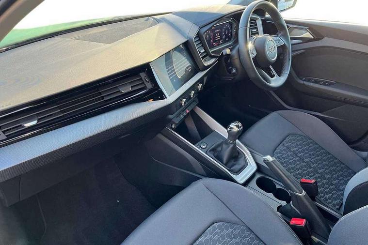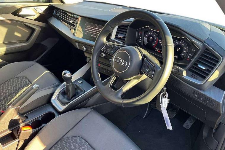 10.25" Digital instrument cluster display classis style instrument dials + speed, odometer, time, outside temperature, telephone menu + fuel level warning, Audi connect safety emergency and service including E-call, Audi smartphone interface with connect compatible smartphone via USB directly MMI display + Nav, music, third party apps controlled via MMI controller, Automatic start/stop system, Bluetooth interface, Cruise control, Driver's information system, Electromechanical power steering, Lane departure warning system, Rear parking sensor, Service interval indicator, Speed limiter, Voice control system, Washer fluid level indicator, Dynamic suspension, 1 x SDXC card reader, 1 x USB type C and 1 USB type A charging points, DAB Digital radio, MMI radio plus with 8.8" colour MMI display screen and MMI touch, Auto dimming rear view mirror, Body coloured bumpers, Body coloured door mirrors, Electric front and rear windows, Electrically adjustable, heated, folding door mirrors with integrated LED side indicator, Front side air inlets in grained matt black and C frame in titanium black, Heat insulating glass windscreen and side windows, Heated rear windscreen, LED headlights with LED rear lights + dynamic rear indicators + headlight adjustment and high beam, turning light + LED daytime running lights, Radiator grille and rear diffuser in matt titanium black, Radiator protective grille frame in matt aluminium silver, Rain and light sensors, Rear fog lights, Rear wiper, Scandium grey tailpipe trim, Side front spoiler lips in grained matt black, 12V socket in centre console with two cup holders, 3 rear seats with headrests, 40:60 Split folding rear seat or folded fully, Door sill trims with aluminium inlay, Door sills trims with aluminium inlays, Driver and passenger seat with manual height adjust with forward and backwards adjustment, Front head restraints, Front/rear floor mats, Height and reach adjustable steering wheel, ISOFIX child seat mounting for front passenger and outer rear seats including top tether attachment point of outer rear seats, Leather gear knob with aluminium trim, Leatherette handbrake grip, Luggage compartment light with front and rear reading lights, Manually adjustable lumbar support in front seats, Novum cloth upholstery with front sport seats, Titanium grey cloth headlining, Luggage compartment pack - A1, 3x3 point rear seatbelts, Audi pre-sense front with pedestrain and cyclist recognition, Brake assist function, Driver and front passenger airbag with front side and head airbags, Electronic Stability Control including ABS, EBD, ASR and EDL, Front and rear seatbelt reminder, Front passenger airbag deactivation switch, Hill hold assist, Seatbelt height adjustment for front seats, Seatbelt monitoring, Tyre pressure warning light, Warning triangle and first aid kit, Anti theft alarm, Anti theft wheel bolts and loose wheel warning, Immobiliser, Remote central locking with 2 foldaway keys, Aluminium trim for control switches, air vents and digital instrument cluster, Silver grey accent areas including air vents, door handle recesses and centre console in diamond paint finish, Slate grey inlays polygon structure in fine paint finish,