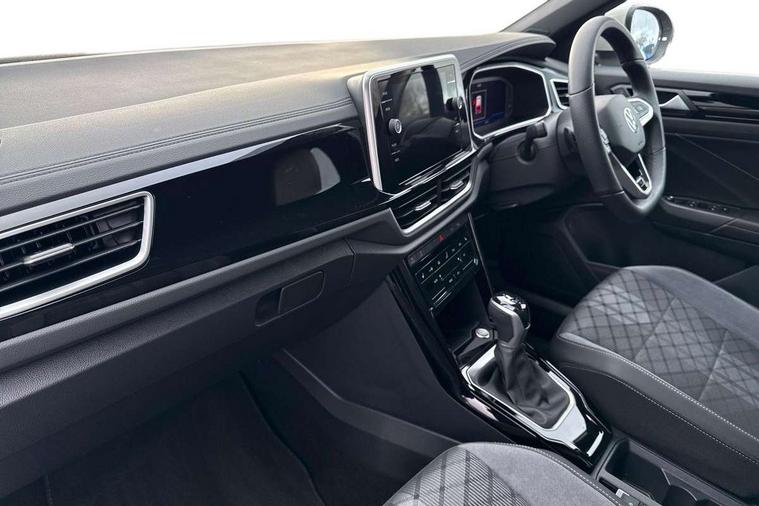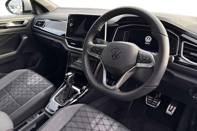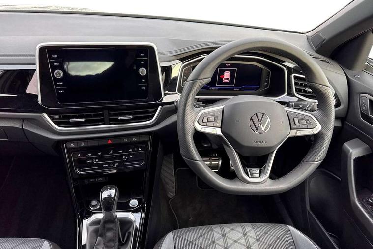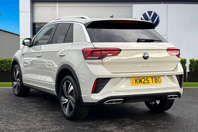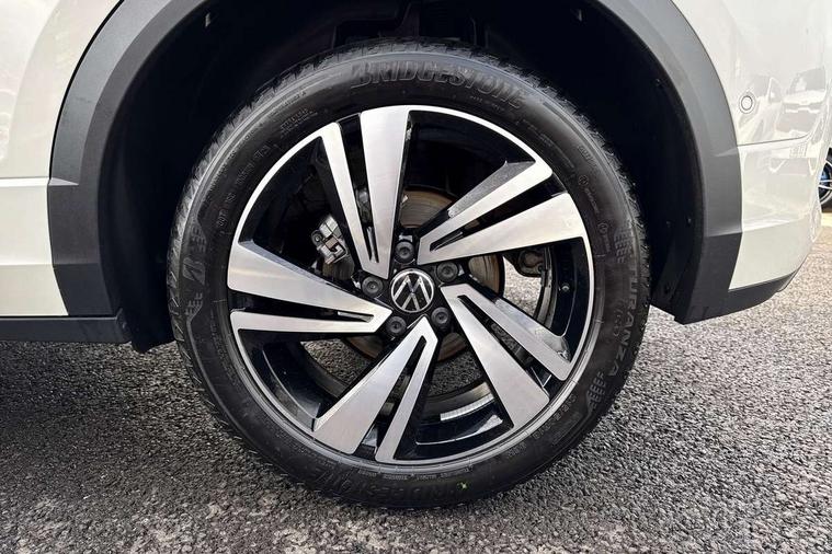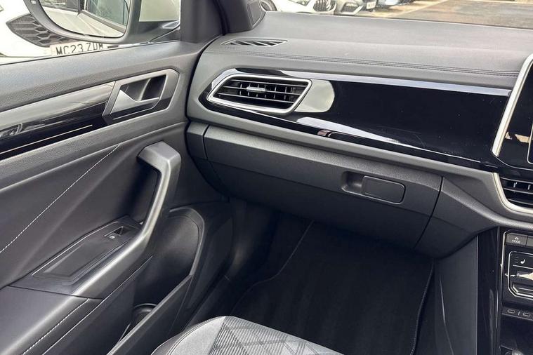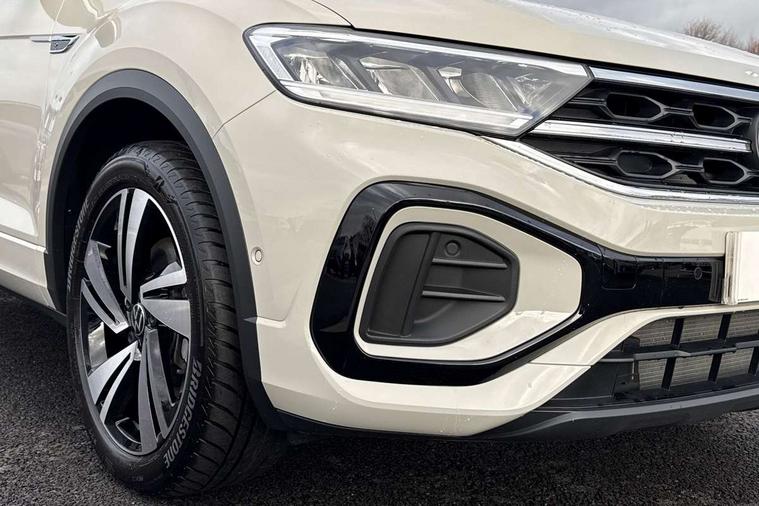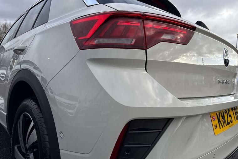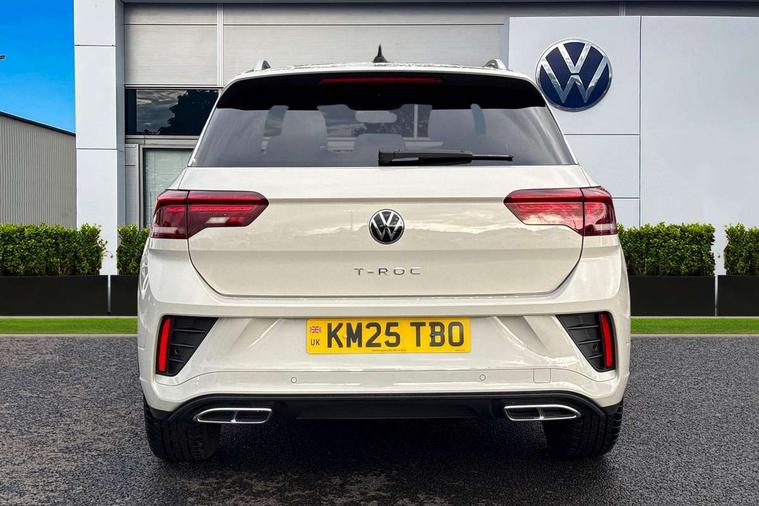 10.25" Digital cockpit pro, Advanced driver attention and drowsiness monitor, Dynamic road sign display, Emergency call service, Lane keeping system Lane Assist, Mobile phone interface, Modified key software - reduce switch off time for key status change to Long no motion, Online services, Park assist including front and rear parking sensors, Service interval indicator, Tailgate/trunk lid release from outside, Think blue trainer driver tips and journey analysis, Warning sound and light for front seatbelts unfastened, Wireless app connect, Battery regeneration during braking, Start/stop function with battery regeneration, DAB Digital radio, Diversity antenna for FM reception, Front and rear 6 speakers, Music playback - MP3, WMA and AAC files, Premium USB cable in choice of either Apple or Android smartphone compatibility, SD card slot, Simultaneous pairing of 2 compatible mobile devices, Title and cover art display, We Connect and We Connect Plus functionality, Auto dimming interior rear view mirror, Automatic hazard lights activation under emergency braking, Automatic headlight control with LED separate daytime running lights with coming/leaving home function, Body coloured exterior mirror housings and door handles, Electrically adjustable and heated door mirrors, Extended roof spoiler, Exterior mirrors aspherical on driver side, convex on front passenger side, External USB type C socket and charging sockets, Front windscreen wiper with intermittent wipe and 4 position delay, Heated rear window, LED 3rd brake light, LED rear combination lamps, LED rear number plate lights, Power windows with comfort operation and circuit breaker, Privacy glass for rear side windows and rear window, R-Line design body coloured bumpers, Rain sensor, Rear exhaust tailpipe, Rear fog light on one side and reversing lights on both sides, Rear side wing doors, Rear wash/wipe with intermittent wipe setting, Remote electrically foldable door mirrors, puddle lights and reverse activated passenger's door mirror, 12V power socket in centre console, 3 rear head restraints, 3 seat bench in 2nd row, 4 load lashing points in luggage compartment, Air care climatronic air conditoning system with active combination filter and 2-zone temperature control, Black roof lining, Chrome plated decorative trims, Chrome plated radiator grille inserts, air vent surrounds and light switch surrounds, Door and side trim panel with leatherette insert, Front + rear carpet mats, Front centre armrest, Front cupholders x 2, Front footwell illumination, Front reading light, Front scuff plates with R Line logo, Front seat back storage pockets, Glove compartment door with light, Instrument lighting, white adjustable panel illumination, Interior ambient lighting and surround lighting, Interior light delay, Isofix child seat preparation, Leather gearshift handle, Load-through provision with cup holder when folded down ('Unsplit rear seat bench, split folding backrest, with centre armrest), Luggage compartment lighting, Single front passenger seat, Stainless steel pedals, Storage compartment in left and right luggage area, Storage compartment in rear doors, Storage compartments in driver and front passenger doors, Sunvisors with illuminated vanity mirrors, Variable boot floor, height adjustable and removable, Driver assistance pack without proactive passenger protection - T-Roc, 3 point height adj front seatbelts + pretensioners, 3 point seatbelts in outer rear with ECE label, ABS, Child locks on rear doors, City emergency braking and pedestrian monitoring, Driver and front passenger airbag with front passenger airbag deactivation, Driver and front passenger safety-optimised head restraints, Drivers seatbelt reminder, Electronic parking brake, Electronic Stability Control (ESC) inc EDL (Electronic Differential Lock) and ASR (Traction Control), Front and rear passengers curtain airbag system including front side airbags, Hill start assist, Predictive pedestrian protection, Rear disc brakes, Two tone horn, Tyre pressure loss indicator, Volkswagen roadside assistance, Piano black decorative inserts in dashboard and front door trim panels, Trims for alloy wheels,