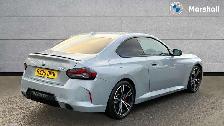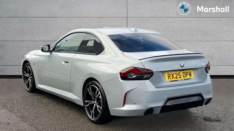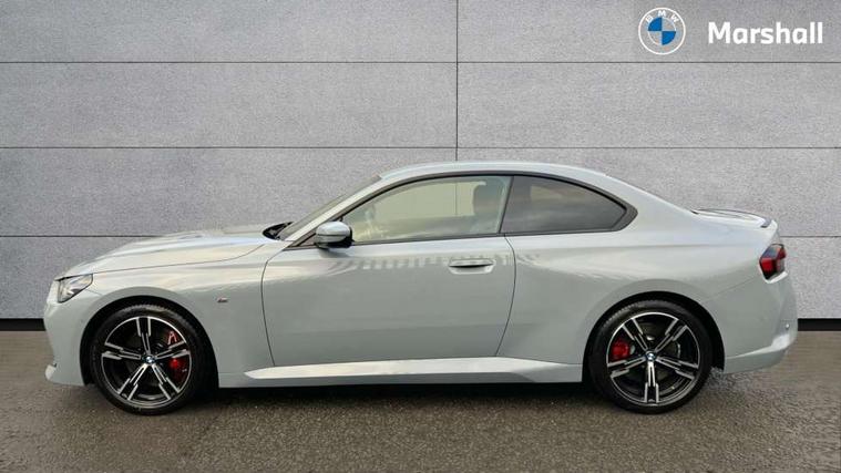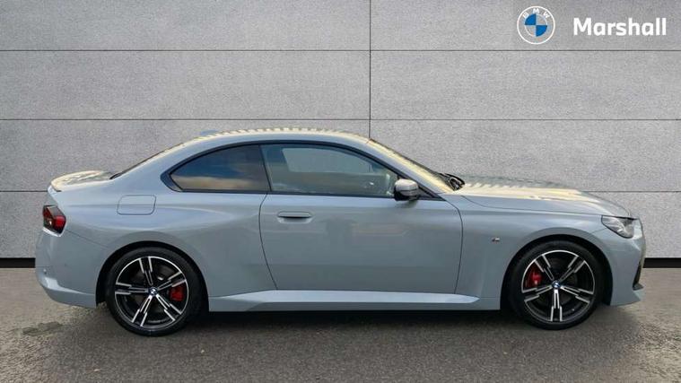 2 USB connections for charging and transferring data, Active guard plus, Attentiveness assist, Bluetooth with USB, BMW ConnectedDrive online services, BMW Intelligent Personal Assistant, BMW Live cockpit plus, BMW operating system 8 with variable, configurable widgets display information in real time, BMW Teleservices, Check Control warning system for monitoring of lights and door/luggage compartment open warning, Control Infotainment, Direct selection buttons, Drive off assistant, Eco pro mode, Electric power steering, eSim with 5G connectivity, Front and rear parking sensors, iDrive controller with turn and press function, Integrated owners handbook, Intelligent functions, Oil sensor for level and grade, Optimum shift indicator, Personal Profile, Smartphone integration, Touch operation on control display, Variable sport steering, Widescreen multi-media display, WiFi interface for wireless connection of mobile terminal devices, Aluminium lightweight construction, Balancer shaft, BMW TwinPower Turbo four-cylinder petrol engine, Double VANOS, Drive performance control with ECO PRO comfort + sport mode, Electronic differential lock, High precision injection, M sport suspension, Petrol Particulate Filter, Steptronic transmission with gearshift paddles, Twin scroll turbocharger with Valvetronic, DAB tuner, Acoustic windscreen wipers for reduced driving noise, Automatic windscreen wipers and automatic headlight, Body colour door handles flush with door surface, Body colour door mirrors, Body colour front and rear bumpers, Daytime running lights, Electric windows - front and rear, with open/close fingertip control and trap release, Exhaust tailpipes x2 - 90mm in left and right, Fading support, Front and rear bumper system with replaceable deformation elements, Front door sill finishers in black plastic with BMW designation, Front windscreen wipers with integrated washer jets, Green tinted heat protection glazing, High beam assistant, High gloss black sill, bumper trim sides and diffuser insert, High level third brake light, Indicators integrated int mirror housing, Interior rear-view mirror with automatic anti-dazzle function, LED registration plate light, LED technology rear tail lights, brake lights and turn indicators, Lightweight engineering, M high gloss shadowline, One piece kidney grille with hight gloss chrome surround, Rear boot, Rear fog lights, Reversing light in rear light cluster, Shark fin antenna, Single part LED rear lights with smoked glass components, Trailer stabilisation logic, Visible VIN plate, 12V power socket in front centre console with blanking plug, 2 cupholders in front centre console, 2 zone automatic air conditioning, Ambient lighting, Compartment in front of cupholder, Conditioned based service, English handbook, Folding rear seat head rests, Front and rear side armrests integrated into door trim, Front armrest, Front door pockets, Front head restraints, Heated front seats, Illuminated glove compartment with separate small compartment, M headliner Anthracite, M sport leather steering wheel, Manually adjustment steering wheel column, Rear seat backrest with manual 40:20:40 split folding, Rear seat centre foldable armrest with integrated cup holder, Single front passenger seat, Storage compartment between rear seats, Storage tray and compartment with cover in centre console, Sun visors with vanity mirrors and insert tab, Through loading system with 40/20/40 split folding 2 rear seat in 2nd row, Velour floor mats, Additional storage compartment pack without USB - 2 Series Coupe, Connected pack professional - 2 Series Coupe, 2 tone horn, Anti lock braking system (ABS) with cornering brake control, Automatic Stability Control (ASC), BMW emergency call, Brake drying, Child seat ISOFIX attachment for the two outer rear seats, Crash sensor activating of airbags, Unlocking doors, hazard warning lights, interior light, safety battery terminal, Deactivation of fuel pump in the event of a crash, Driver and front passenger airbags, Driver and front passenger side airbags, integrated in the door side seat backrest bolsters for all seat variants, Dynamic brake control, Dynamic stability control + (DSC+), Dynamic Traction Control - DTC, Electrically operated hand brake including automatic hold function and automatic release when driving off, Front and rear disc brakes, Front centre airbag between driver and front passenger seats, Front passenger airbag deactivation, Head airbags for all 4 outer seats, PC iBrake (Post crash approach control warning with light braking function), Seat belt security check for driver and front passenger, Seatbelt warning, Side impact protection, Three point seat belts on 4 seats including front belt stopper, pyrotechnic belt tensioners and belt force limiters, Tyre pressure monitoring system, Warning triangle and first aid kit, Alarm system (Thatcham 1) with remote control and electronic engine immobiliser, Central locking switch for all doors, fuel filler cap and luggage compartment, Deadlocking function system to all doors, Drive away locking system on all doors and luggage compartment, Locking wheel bolts, Start/Stop button (illuminated) in centre console with keyless engine start and Auto Start-Stop deactivation button, Two remote control key with integrated key - one button for open and close doors/fuel flap/tailgate and separate button for unlock luggage compartment, Electrically powered 12V compressor, Reduced rolling resistance tyres, Tyre repair kit,