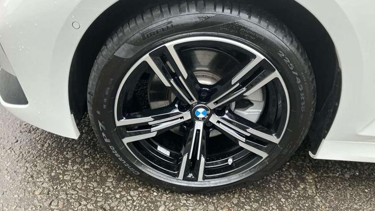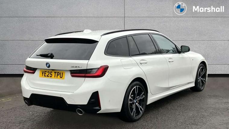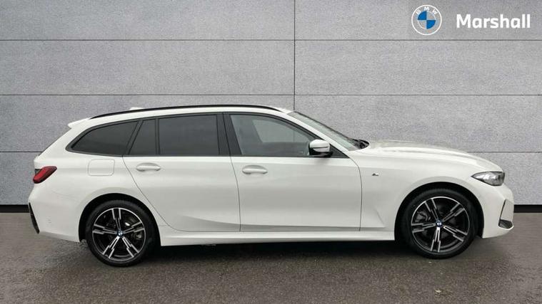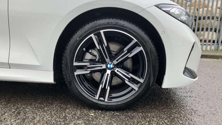 Active guard plus, Attentiveness assist, Automatic Start/stop button, Bluetooth Wi-Fi interface, BMW iDrive, BMW Teleservices, ConnectedDrive Services - last state call, Electric bootlid, Live cockpit plus with Navigation + 12.3" instrument display + 14.9" display, Intelligent voice assist, 2 USB, 4G LTE connect, Oil sensor for level and grade, Personal e-SIM, Shifting point display, Double joint spring strut front axle, Fuel tank breather system, Public mode 3 professional fast charging cable with 5m length, Steptronic Sport automatic transmission with steering wheel mounted gearshift paddles launch control and xtreme drive lever control, DAB tuner, 3rd brake light, Auto dimming rear view mirror, Automatic headlight beam throw control with load dependent regulating reaction, dynamic compensation of braking dive and acceleration squat, Bi-LED Low and high beam headlights, BMW emblem, engine compartment lid and tailgate, Body colour roof fin, Door sill strips, Electric windows - front and rear, with open/close fingertip control, anti-trap facility and comfort closing, Fading support, Follow me home headlight function, Front and rear bumper system with replaceable deformation elements, Front apron plastic in body colour, Fuel filler flap - right rear in body colour, Heat protection glazing on front windows and windscreen, Heated washer jets, High gloss chrome kidney frame with high gloss black kidney struts, High gloss shadow line roof rails, LED daytime running lights, LED rear lights, LED turn indicator, Licence plate panel integrated into front bumper and tailgate, M high gloss shadow line exterior trim, Matt black B-pillar finsher, Matt black window recess cover, Model designation on right side of tailgate, One piece front bumper cover including towing eye cover in body colour, Rain sensor with automatic headlight activation, Rear side wing doors, Rear wiper, Reversing lights, Side frame decorative moulding black matt, Trailer stabilisation logic, Visible exhaust tailpipe finisher, Welcome lights in interior and door handle area, 12V power socket in front storage compartment, 2 front cupholder in centre console with clamping elements and matt black inlay, 3 seat bench in 2nd row, 3 spoke M Sport multifunction flat bottom leather steering wheel, 3 zone automatic air conditioning, 40:20:40 split folding rear seat with loading system, Anthracite headlining, Armrest integrated in front and rear door trim + front centre console armrest, Battery in luggage compartment, BMW ID, Cruise control operation in steering wheel, Driving experience mode switch, Folding rear centre armrest with 2 cupholders, Front and rear headrests, Front and rear velour floor mats, Front reading light, Heated front seats, Height adjustable mechanically and infinitely variable steering column, Illuminated armrest storage compartment, Illuminated glove compartment, Illuminated luggage compartment, Lashing eyelets in luggage compartment, Single front passenger seat, Sunvisors with illuminated vanity mirrors and ticket pocket, Toolkit located in luggage compartment, Connected pack professional - 3 Series Saloon/Touring, Interior and exterior mirror pack - 3 Series Touring/Saloon, M sport exterior styling pack - 3 Series Saloon/Touring, Parking assistant pack - 3 Series, 3x3 point rear seatbelts, BMW emergency call, Child locks on rear doors, Crash sensor activating of airbags, Unlocking doors, hazard warning lights, interior light, safety battery terminal, Drive-off assistant, Driver and front passenger with seat occupancy detection for driver's and passenger side, Driver and passenger side airbags, body protection at side and airbags deploy from seat backrests, Dry braking, Dynamic brake control, Dynamic stability control + (DSC+) - Anti-lock Braking System (ABS) with brake assist and cornering brake control + Automatic Stability Control (ASC), Dynamic Traction Control - DTC, Electric parking brake including automatic hold function and automatic release of the parking brake when driving off, Electronic differential lock control (EDLC), Front airbag deactivation, Front airbags for driver and front passenger, Head airbags in 1st and 2nd row, head protection at side, curtain airbags open from headliner above 1st and 2nd row, Plastic fuel tank, Side impact protection, Tyre pressure sensors, Ventilated front and rear disc brakes, Warning triangle and first aid kit, Alarm system, Centre lock switch, Closing system with central locking, Electronic vehicle immobiliser, Locking wheel bolts, Tyre repair kit,