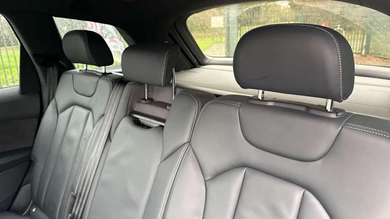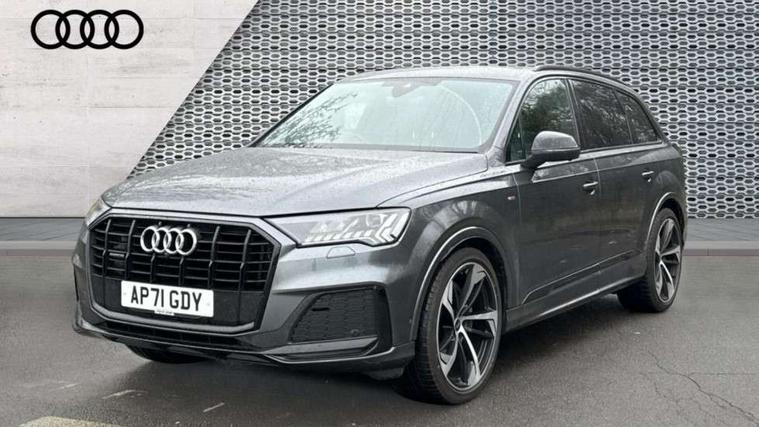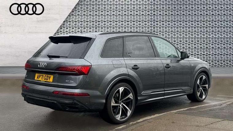 Audi connect safety and service (e-call), Audi connect with Amazon Alexa Integration, Audi drive select (Auto, Comfort, Dynamic, Efficiency, Individual, Off-road and All road), Audi smartphone interface includes wireless Apple carplay/Android Auto, Bluetooth interface, Camera based traffic sign recognition, Electromechanical steering, MMI navigation plus with MMI touch screens includes 10.1" and 8.6" screens with haptic feedback, Natural voice recognition, Parking system plus with 360 degree display (front, rear and side sensors) - acoustic and visual park assist system, Power operated tailgate, Rear view camera, Start/stop system, 48V Mild hybrid technology, Adaptive air sports suspension, Quattro all wheel drive with self locking centre differential, Audi music interface - front 2 USB-C ports with charger and data functions, Audi sound system with 6 channel amplifier, 180 watt amplifying capacity and 10 loudspeakers including subwoofer, DAB digital radio module, 3rd brake light, Audi matrix LED headlights with dynamic front and rear indicators, Auto dimming frameless rear view mirror, Black roof rails, Bumpers in contrast paint scandium grey finish includes door trim and wheel arch trim strips, inlays in door strip contain quattro embossing, Electrically adj heated/folding + automatically dimming exterior mirrors with memory + automatic kerb side function for passenger side exterior mirror, Heat insulating glass in windshield, Integrated LED indications in door mirrors, LED daytime running lights, LED rear tail lights, Privacy glass - dark tinted rear and rear side windows from B-pillar backwards, Rear side wing doors, Rear wiper, 2 seat bench in 3rd row, 3 seat bench in 2nd row, 4 zone deluxe automatic climate control, 7 seat layout with ISOFIX points for the front passenger seat and rear passenger seat, Black cloth headlining, Comfort front centre armrest, Electric adjustable front seat with 4 way lumbar support, driver memory functionality, Folding rear seats, Front head restraints, Front/rear floor mats, Heated front seats, Illuminated door sill trims with S logo, LED interior ambient lighting, Luggage compartment cover, Luggage compartment sill protection in stainless steel, Rear head restraints, Single front passenger seat, Stainless steel pedals, Sunvisors with illuminated vanity mirrors, Tool kit, Titanium black styling pack - Q7/SQ7, 3 point seatbelts on all rear seats, Audi pre sense front, Child locks on rear doors, Driver and front passenger, front side and curtain airbags, Electromechanical parking brake, Electronic Stabilisation Control (ESC) including ABS, ASR and EDL, Extended pedestrian protection measures, Hill hold assist, Seatbelt monitoring, Tyre pressure loss indicator, Warning triangle and first aid kit, Anti theft alarm, Anti-theft wheel bolts and wheel loosening detection, Keyless Go, Remote central locking, Polished oak trim with grey finished, Tyre repair kit,
