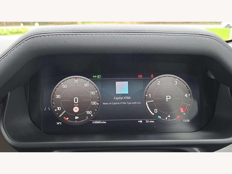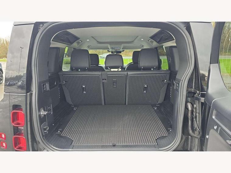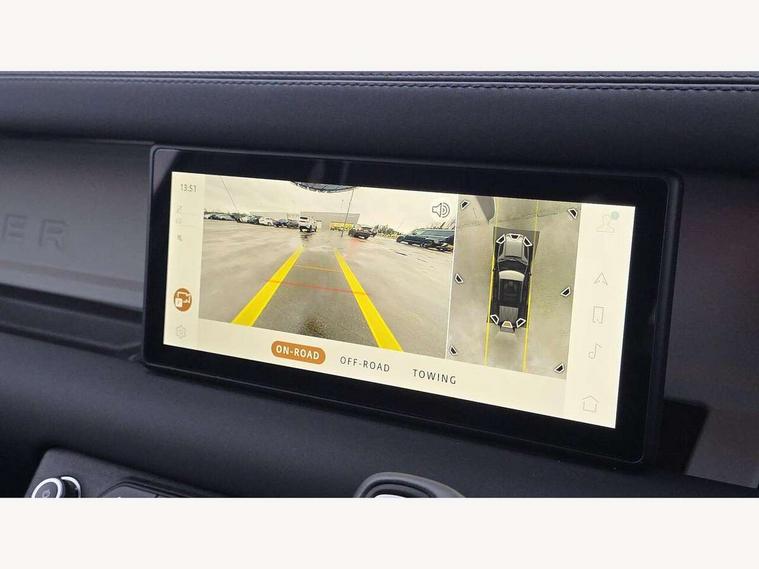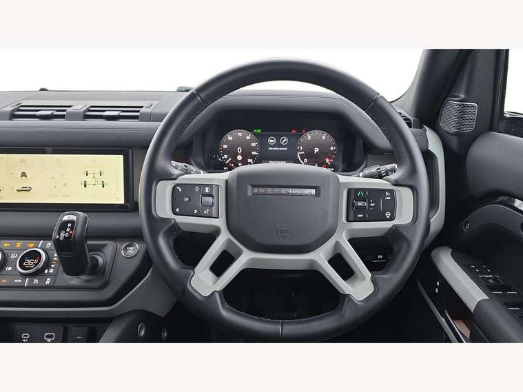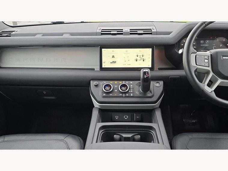 360 degree parking aid, 3D Surround Camera with 360 View, 180 Rear View, Front Traffic Detection, Forward Vehicle Guidance, Tow Hitch Assist and clear sight Ground View, Android Auto, Apple CarPlay, Assisted tailgate with soft close, Blind spot assist, Bluetooth system, Brake pad wear indicator, Clear exit monitor, Connected navigation pro, Cruise control + speed limiter, Driver condition monitor, Electric power assisted steering (EPAS), Interactive driver display, Lane keep assist, Push button start, Rear traffic monitor, Traffic sign recognition with adaptive speed limiter, Trip computer, Wade Sensing, 8 speed automatic transmission, Adaptive dynamics, All wheel drive system, Electronic air suspension, Twin speed transfer box, DAB Radio (Digital Audio Broadcasting), Pivi pro connected, Automatic headlight levelling, Automatic headlights, Body coloured roof, Centre high mounted stop light, ClearSight interior rear view mirror, Electric heated/power fold door mirrors with approach lights and auto dimming driver side, Electric windows with one touch open/close and anti-trap, Follow me home lighting, Front fog lights, Heated rear window with timer, Heated windscreen, Illuminated metal treadplates with brand name script, LED tail lights, Matrix LED headlights with signature DRL, Privacy glass, Puddle lights, Rain sensing windscreen wipers, Rear fog lights, Rear side wing doors, Rear wiper, Side hinged tailgate, Signature graphic (with interior storage), Sliding panoramic roof, Trailer stability assist, 12 way heated and cooled electric memory front seats with 2 way manual headrests, 12V power socket in loadspace, 3 seat bench in 2nd row, 40:20:40 folding rear seats with centre armrest, Alpine lights, Configurable cabin lighting, Durable rubber cabin flooring, Durable rubber loadspace flooring, Electric cabin pre conditioning, Electric reach + rake adjustable steering column, Footwell lights, Front centre console refrigerator compartment, Front passenger isofix child seat attachment, Grained Leather upholstery, Heated steering wheel, Leather gearshift, Light oyster morzine headlining, Loadspace cover, Loadspace Hook, Multifunction steering wheel, Overhead stowage for sunglasses, Premium cabin lighting, Rear headrests, Rear ISOFIX, Rear reading lights, Single front passenger seat, Standard interior, Standard leather steering wheel, Standard seat configuration, Storage glovebox, Sunvisors with illuminated vanity mirrors, Online pack with data plan - Defender, XS Edition exterior pack - Defender, 5 x 3 point seatbelts, ABS, Brake hold function, Cornering brake control (CBC), Cross car beam in light grey powder coat brushed finish, Customer configurable autolock, DSC - Dynamic Stability Control, EBD - Electronic brakeforce distribution, Electric parking brake (EPB), Emergency brake assist, Emergency braking, ESP + traction control, Front airbags with passenger seat occupant detector, HDC - Hill descent control, Hill launch assist, Low traction launch, Power operated child locks, Remote for (e-Call, Optimised assistance call, InControl app, Climate, beep and flash and door), RSC - Roll stability control, Seat belt reminder, TPMS (Tyre pressure monitoring system), Alarm, Immobiliser, Intrusion sensor, Keyless entry, Locking wheel nuts,