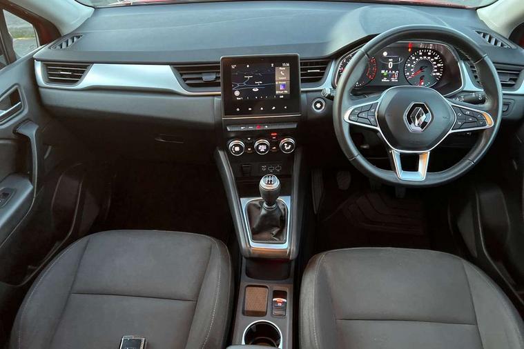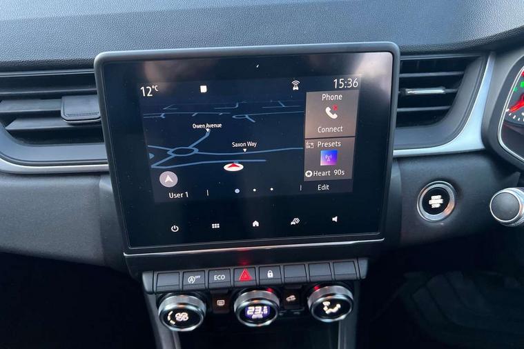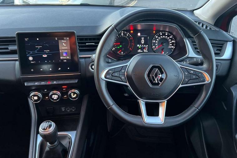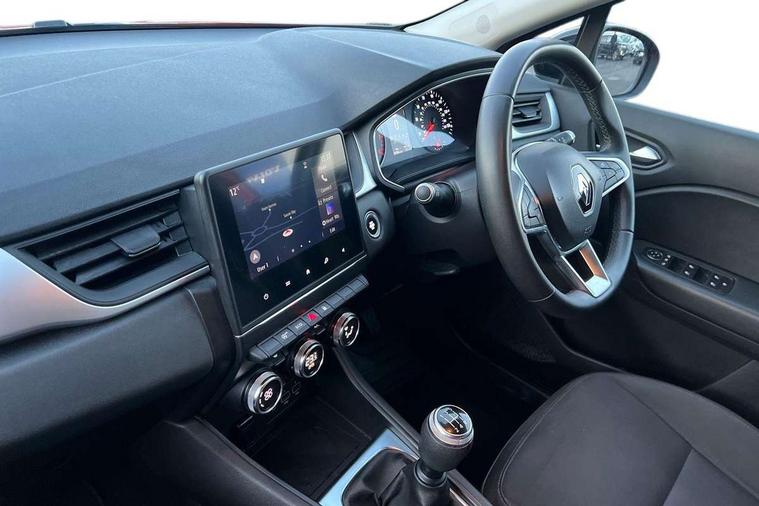 4.2" TFT Driver information display, Cruise control + speed limiter, eCall emergency call system, Eco mode, Gear change indicator, Lane departure warning system, Lane keep assist, Renault automatic emergency assist, Traffic sign recognition, Trip computer, Variable assistance power steering, EasyLink Nav 7" touchscreen, 4x20W amp, FM DAB, sound auditorium, 2xUSB, 1xJack, Bluetooth, smartphone integration plus, Apple carplay/Android auto, Automatic front wipers with rain sensors, Automatic headlights, Body colour door handles, Body coloured bumpers, Body coloured door mirrors, Electric adjustable/heated/folding door mirrors, Electric front windows + one touch + anti-pinch, Electric rear windows, Extra tinted glass in rear windows and tailgate, Full LED front and rear headlamps integrating daytime running lights at the front and rear, Gloss black side door protection with chrome effect, LED front fog lights, Rear fog lights, Rear wiper, Roof bars, Variable speed on front windscreen wipers, 12V Accessory socket, 3 rear headrests, 5.2L front glovebox, 60/40 split folding rear seat bench, Automatic climate control with one touch demist function, Centre console storage tray, Cloth upholstery, Front head restraints, Heating system with pollen filter, Height adjustable driver's seat, Height/reach adjust steering wheel, ISOFIX child seat fixing points on rear outermost seats, Middle console with armrest and storage, Rear air vents, Synthetic leather steering wheel, 3 rear seatbelts, ABS+EBA, AEBS, Distance warning alert, Driver and front passenger, side, head and curtain airbags, Driver height adjustable seat belt, Electric parking brake, Electronic stability control, Front and rear no seatbelt warning sound, Front dash warning indicator in case of heavy braking, Front driver and passenger side airbag deactivation, Hill start assist, Rear door and window child locking function for rear door, Tyre pressure warning light, Anti drill door locks and locking fuel cap, Deadlocking system, Hands free keycard with push button and start/stop function, RAID (Renault Anti-Intruder Device) automatic door locking, Remote central locking with thatcham approved immobiliser, Black soft touch dashboard with black gloss air vent surrounds,