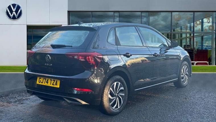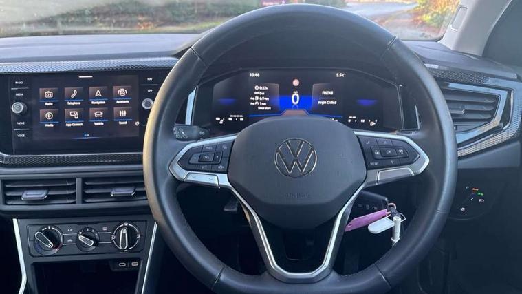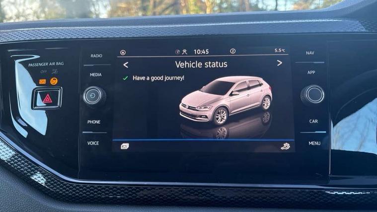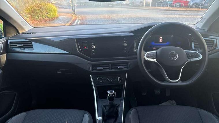 Advanced driver attention and drowsiness monitor, Bluetooth mobile phone interface, Cruise control + speed limiter, Dynamic road sign display, Emergency call service, Lane keeping system Lane Assist, Multifunction camera, Power assisted speed sensitive steering, Preparation for navigation system with media and internet package, Preparation for We connect and We connect plus, Speedo and rev counter, electronic odometer, trip, service interval display and exterior temperature gauge, Standard rear axle, Trip computer, Warning signal and warning light for front and rear seatbelts not fastened, Washer fluid level indicator, Wireless app connect, Front wheel drive, Rear shock absorpion, Start-stop system with battery regeneration (recuperation - energy recovery during braking), DAB Digital radio, Diversity antenna for FM reception, Front and rear 6 speakers, Automatic dimming interior rear view mirror, Automatic headlight control with LED separate daytime running lights with coming/leaving home function, Body colour bumpers with chrome inserts, Body colour door handles, Body colour door mirrors, Electric front windows, Engine badge deletion, Headlight range adjustment, Heat insulating and laminated safety glass windshield, Heat insulating darkened glass in side and rear windows, LED Headlights, LED rear combination lamps, Power folding adjustable/heated exterior mirrors and front passenger exterior mirror lowering function, Rain sensor, Rear electric windows, Rear fog light, Rear side wing doors, Rear windscreen washer and wiper with interval delay, Third brake light, 12V power socket in centre console, 2 front and 2 rear reading lights with switch off delay and dimmer, 2 USB-C ports in the front, 2 USB-C charging sockets on the center console in the rear, 3 rear head restraints, 60/40 split folding rear seat and rear seat bench not split, Ceramique roof lining, Chrome plated radiator grille inserts, air vent surrounds and light switch surrounds, Door and side trim panel, Driver and front passenger seat height adjustment, Driver/passenger sunvisors with illuminated vanity mirrors, Front centre armrest, Front seat backrest storage pockets, Front standard seats, Handbrake lever handle in leather, Hartley/Thomas cloth upholstery, Headliner in recycled material, Isofix child seat preparation easy-fit (for two outer rear seats, and front passenger seat) compatible with I-size, Leather trimmed gear knob, Luggage compartment cover, Luggage compartment lighting, Removable luggage compartment floor, Single front passenger seat, Standard climatic zones, Standard pedal cluster, Three spoke leather wrapped multifunction steering wheel, Light and vision pack - Polo, 3 point height adj front seatbelts + pretensioners, 3x3 point rear seatbelts, ABS, Driver and front passenger airbag with front passenger airbag deactivation, Drivers and front passengers safety optimised head restraints, ESC (Electronic stability control) + EDL (Electronic Differntial lock) and ASR (Traction control), Extended and predictive pedestrian/ cyclist protection, Front assist with autonomous emergency braking (for Adaptive Cruise Control ACC up to 130 mph), Front curtain and side airbags with center airbag, Front disc brakes, Hill hold control, Manual child lock in rear doors, Rear drum brakes, Single tone horn, Tyre pressure loss indicator, Alarm with interior protection, Anti-theft alarm system with interior monitoring, backup horn, and towing protection, Anti-theft wheel bolts, Electronic engine immobiliser, Lava stone black gloss/matt decorative inserts in dash and front door panels, Low rolling resistance tyres,