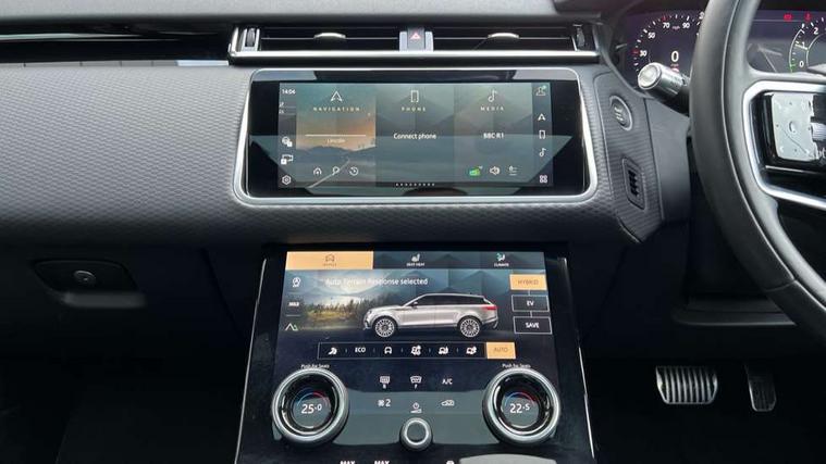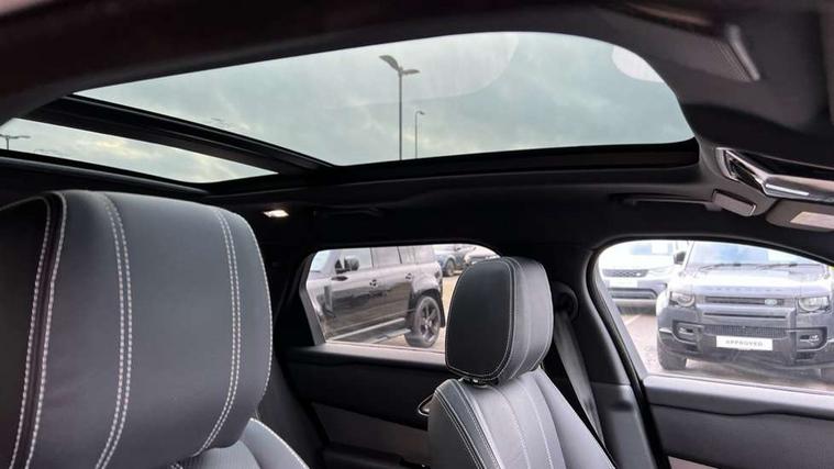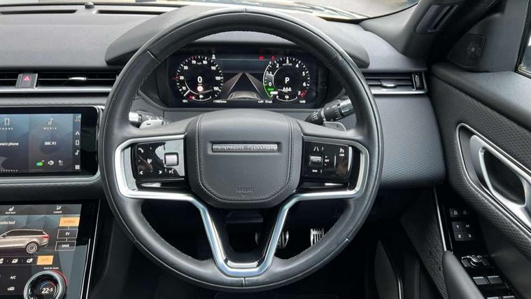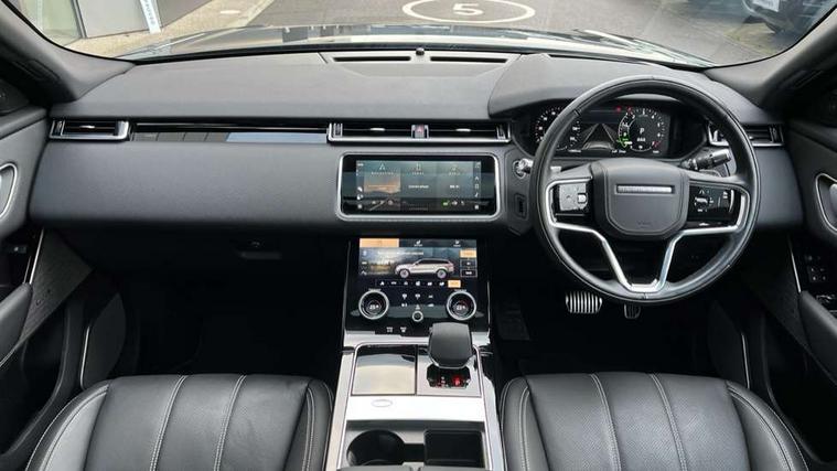 10" touch screen, Android Auto, Apple car play, Blind spot assist, Bluetooth connectivity, Brake pad wear indicator warning light, Driver condition monitor, InControl remote, Interactive Driver display instrument cluster, Land Rover InControl apps, Lane keep assist, Pivi pro connected includes upgraded infotainment, smart settings, connected navigation pro, Nuance speech licence, Push button start, Rear traffic monitor, Service indicator, Speed proportional electronic power assisted steering (EPAS), Traffic sign recognition with adaptive speed limiter, Trip computer, Voice control system, 8 speed automatic transmission, Adaptive dynamics, All terrain progress control, Coil suspension system, Open differential with torque vectoring by braking, Public charging cable, Single speed transfer box, Digital Audio Broadcast radio-DAB, Steering wheel mounted controls, Acoustic laminated windscreen, Adaptive front lighting system, Auto dimming interior rear view mirror, Automatic headlamp levelling, Automatic headlights, Body coloured bumpers, Boot protection plate, Electric heated/power fold door mirrors with approach lights and auto dimming driver side, Electric windows with one touch open/close and anti trap, Flush deployable exterior door handles, Follow me home headlights, Heated rear window with timer, Heated windscreen, Metal load space scuff plates, Rain sensor windscreen wipers, Rear fog lights, Rear wash/wipe, SE badge, Tailgate/boot lid spoiler, Trailer stability assist, Velar and R-dynamic badge, Ambient lighting, Bright metal pedals, Driver/passenger sunvisors with illuminated vanity mirrors, Isofix system on outer rear seats, Loadspace cover, Overhead lighting console, Overhead stowage for sunglasses, Passive front headrests, Rear air vents, Rear centre headrest, Satin chrome gearshift paddles, Standard interior, Twin front cupholders, Twin sliding front centre armrest, Online pack with data plan - Velar, 380mm front brakes and 325mm rear brakes, 3x3 point rear seatbelts, Anti-lock braking system (ABS), Cornering brake control, Curtain airbags, Customer configurable autolock, Door side intrusion beams, Driver airbag, DSC - Dynamic Stability Control, Electronic brake force distribution, Electronic parking brake, Electronic traction control, Emergency brake assist, Emergency braking, Front and rear seatbelt reminder, Hill descent control, Hill launch assist, Low traction launch, Passenger airbag, Power operated child locks, Rear airbags, Roll stability control, Side airbags, Tyre pressure monitoring system, Unpainted brake calipers, Global lock and unlock switch on driver door, Immobiliser, Intrusion sensor, Keyless entry, Lock only switch on front passenger door, Locking wheel nuts, Perimetric alarm, Remote central locking, Tyre repair system,