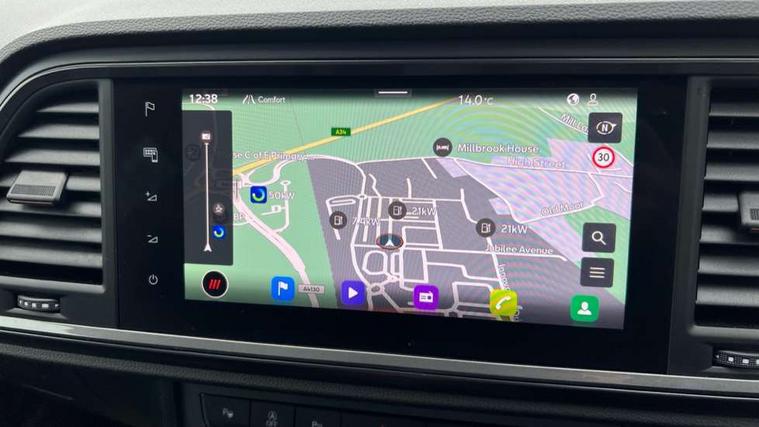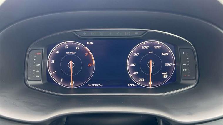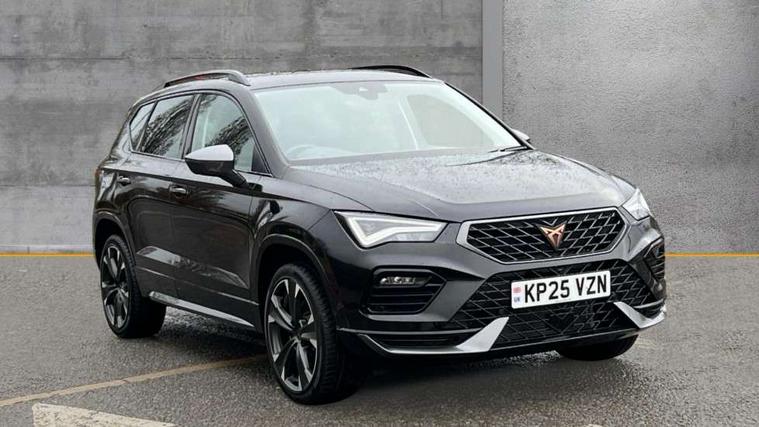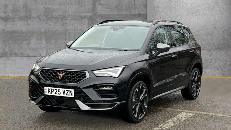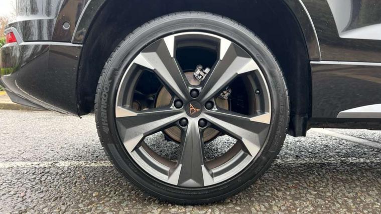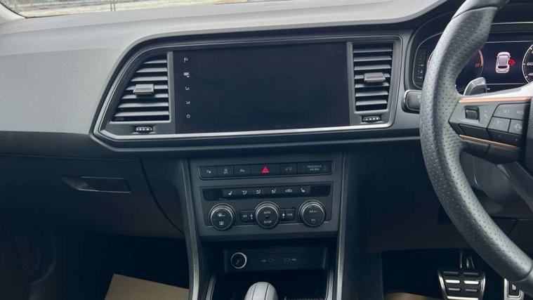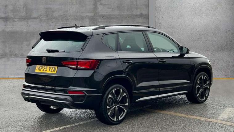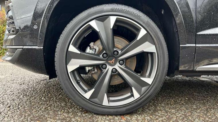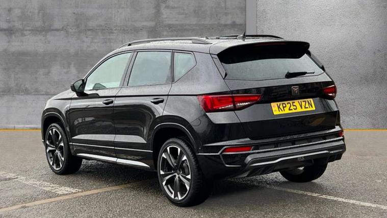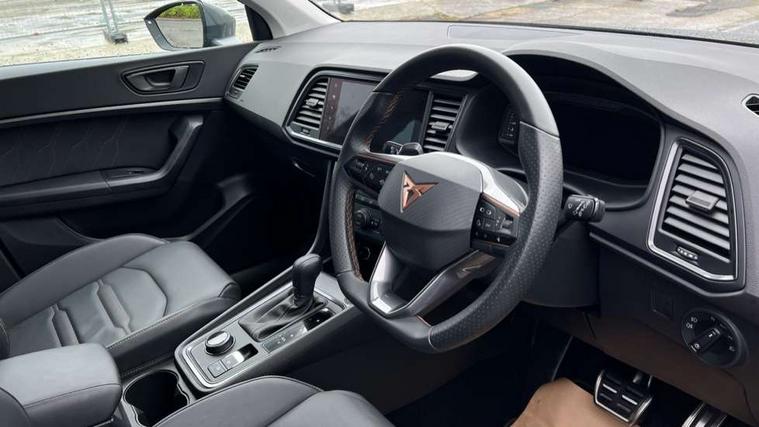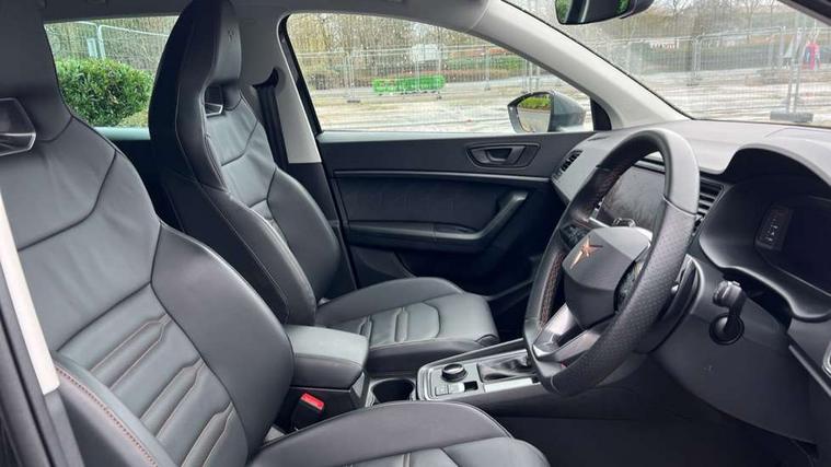 Cruise control system with speed limiter, Digital cockpit, Driving profile selection and conventional shock absorber, E-call, Electric tailgate with virtual pedal, Outside temperature gauge, Progressive power assisted steering, Rear view camera, Self parking functionality (includes front and rear parking sensors), Trip computer, wired and wireless full link smartphone integration, Wireless phone charger, Front and rear shock absorption, chassis with increased ride height, Steering wheel mounted audio/phone controls, Body colour bumpers with dark aluminium diffusor, Body coloured wheel arch surrounds, Dark tinted rear windows, Daytime running lights, Door mirrors with welcome CUPRA light silhouette, Dynamic headlight range control with self adjusting whilst driving, Electric adjustable/heated/folding door mirrors, Front and rear electric windows, Front grille frame in chrome, Full LED headlamps with lens and LED front fog lamps with cornering function, Gloss black door mirrors, Gloss black roof rails, Gloss black side mouldings, Gloss black side window trim, Illuminated aluminium front door sill, LED rear tail lights with dynamic indicators, Rear fog lights, Rear side wing doors, Rear spoiler, Rear wash/wipe, Specific CUPRA design front bumper, Standard rear exhaust tailpipes, Third brake light, 12V socket in front, 3 seat bench in 2nd row, 60/40 split folding rear seat, Aluminium pedals, Cupra steering wheel emblem, Dual zone climate control, Electric driver seat with memory function, Front and rear head restraints, Front centre armrest, Front seat back storage pockets, Grey roof lining, Heated front seats, Heated steering wheel, Height adjustable driver and passenger seat with lumbar adjustment, ISOFIX points in outer rear seats with top tether anchorage points, Leather sport bucket seats, Leather steering wheel and gear knob, Multicoloured ambient lighting with LED interior illumination, Pedal cluster, Rear armrest and easy back seat release mechanism from boot, Single front passenger seat, Sports steering wheel, Steering wheel mounted gearshift paddles, Storage compartment in roof console for sunglass, Storage compartment under driver's seat, Convenience pack - Ateca, Interior lighting pack - Ateca, Navigation system plus pack with DAB - Ateca, Safety and driving pack - Ateca, 3x3 point rear seatbelts, ABS, Traction control system (TCS), Electronic stability control (ESC) and Electronic differential lock system (XDS), Airbags - Driver and front passenger airbag with deactivation, front side, two curtain and driver's knee airbags, Black brake callipers with CUPRA logo, Electric parking brake with auto hold function, Front and rear seatbelt reminder, Front assist with autonomous emergency braking, Hill hold control, Manual rear child locks, Single tone horn, Tiredness recognition system, Tyre pressure monitoring system, Alarm, Keyless entry, Locking wheel bolts, 19" Sport machined alloy wheels 36/3 in black/silver,
