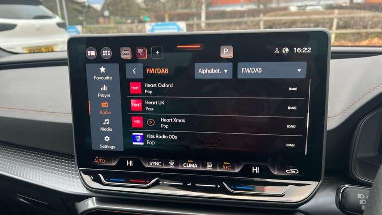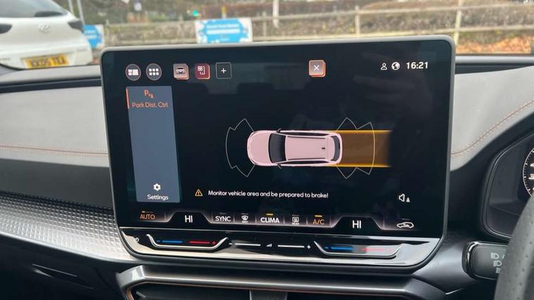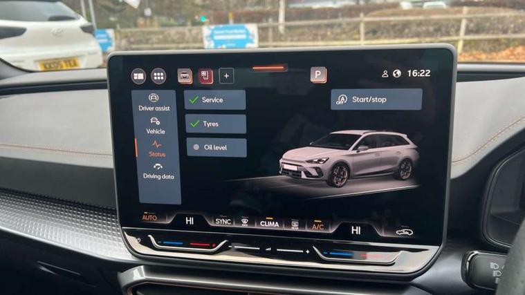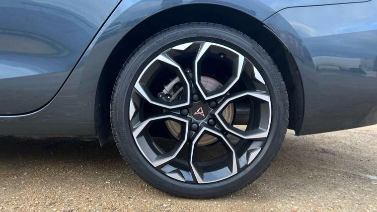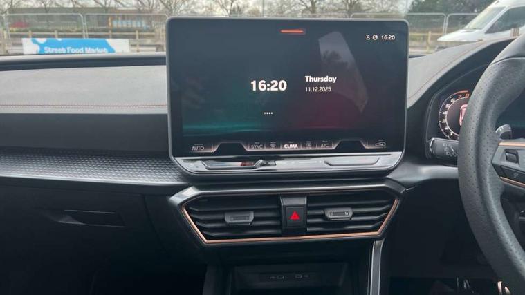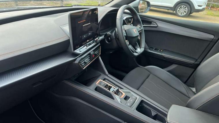 Adaptive cruise control with follow-to-stop and speed limiter, CUPRA drive profile selection with (Comfort/Sport/Individual), throttle response and gearshift mode, Digital cockpit, Dynamic road sign display, E-call, Four x USB Type C ports (2 in front and 2 in rear), Front and rear parking sensors, Front assist with forward collision warning braking reaction to vehicles, pedestrians and cyclists, Full link smartphone integration with Mirror Link, wireless Apple CarPlay and wired Google Android Auto, Lane assist, Lockable tailgate, PAS, RPM, trip computer, outside temp gauge, instrument light brightness, low fuel warning light, lights on reminder, gearshift indicator, Service interval indicator, Start/stop system with regenerative braking, Virtual pedal with electric tailgate, Wireless phone charger, 7 speakers, Auxiliary input socket, Auto dimming rear view mirror, Body colour door handles, Body coloured bumpers, Cupra sports bumpers, Dark tinted rear windows, Electric front/rear windows, Electrically adjustable, heated and folding door mirrors, Gloss black roof rails, High beam assist, LED front fog lamps with cornering function, LED headlights with dynamic turn signals, tail lights, rear fog lights with rear coast to coast lighting, LED rear fog lamp, Rain sensing wipers, Rear side wing doors, Rear wash/wipe, Separate daytime running light with automatic headlight control and coming home feature, Third brake light, Welcome light with logo projector in door mirrors, 12v power supply in centre console, 3 seat bench in 2nd row, 5 headrests, 60/40 split rear bench seat with armrest, Ambient lighting with glovebox, footwell and single monocolour, Black headlining, Cloth/PVC upholstery, Cupra sports pedals, CUPRA Supersports, heated steering wheel with satellite buttons, Driver and passenger seat with manual height and lumbar adjustment, Front and rear reading lights X 4, Front centre armrest, Height/reach adjust steering wheel, Illuminated interior front door sills, ISOFIX points in outer rear seats with top tether anchorage points, Single front passenger seat, Sliding boot cover, Storage pockets on rear of front seats, Sunvisors with illuminated mirror, Three zone climate control, Media system plus with 12.9" display + navigation pack - Leon Cupra, 3 point seatbelts on all rear seats, ABS, Brake control system - ESC and brake booster, Child proof door locks, Cupra black brake calipers, Driver and front passenger airbags with front passenger airbag de-activation, front side and curtain airbags, Electronic parking brake, Hill hold control, Rear disc brakes, Seat belt reminder for front and rear seats, Tiredness recognition system, Tyre pressure monitoring system, Anti theft alarm system with interior monitoring in cab, backup horn and towing protection, Central locking system Keyless Go, Locking wheel bolts, Chrome and copper interior detailing, 18" Windstorm machined sport black matt and silver alloy wheel with 92Y XL tyres, Tool kit,