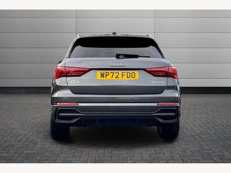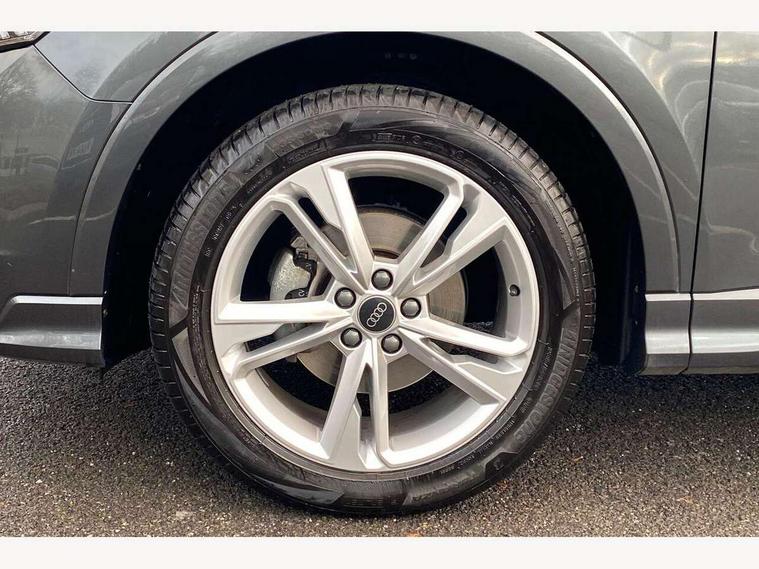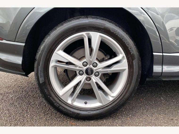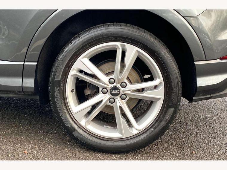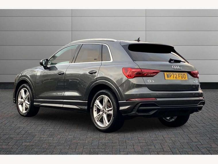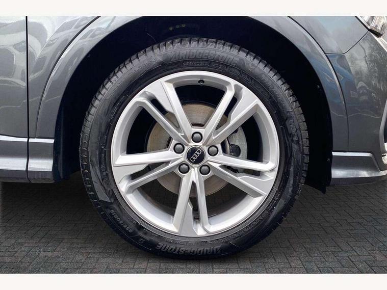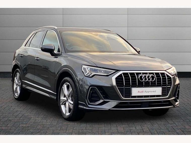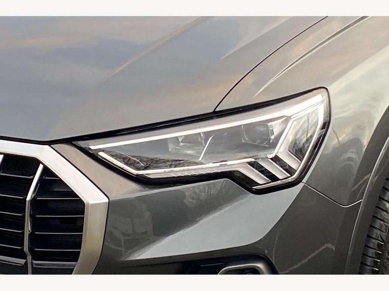 Amazon alexa Integration, Audi drive select, Audi lane departure warning, Audi Virtual Cockpit - 10.25" display, Bluetooth interface, Camera based traffic sign recognition, Cruise control + speed limiter, Legal emergency call, MMI Navigation Plus with high resolution 10.1 inch touchscreen colour display, Power operated tailgate, Progressive steering, Rear parking sensors, Service interval indicator, Smartphone interface includes wireless Apple carplay/Android Auto, Start stop system with recuperation, Voice control system with natural language interaction, Sports suspension, 2 USB-C ports with charge and data functions, 6 passive loudspeakers, DAB digital radio module, Acoustic windscreen, Aluminium roof rails, Aluminium window trim, Auto dimming frameless rear view mirror, Body colour front spoiler blade, Body coloured bumpers, Electrically folding, adjustable and heated door mirrors with integrated LED side indicators and kerb view function for passenger side, Front and rear electric windows, Front fog lights, Front side air inlets in matt platinum grey, Grille vertical bars in aluminium silver/Matt, High gloss black finish B and C pillars, LED Dynamic rear indicators, LED headlights with LED daytime running lights, LED rear lights, LED third brake light, Privacy glass dark tinted rear and rear-side windows (from B-pillar backwards), Rain and light sensors, Rear diffuser grille in grained matt black, Rear diffuser strip in matt titanium black, Rear side wing doors, Rear wiper, S line badges on front wings, S Line front and rear bumpers, Side skirt insert in matt Platinium grey, Titanium black radiator grille, Variable front intermittent wipers, 12V socket in rear centre console, 3 seat bench in 2nd row, 40:20:40 folding with manual adjustment for 60:40 forwards/backwards position and backrest angle, Adjustable rear seat bench/backrest with centre armrest and cupholder, Black cloth headlining, Dual zone electronic climate control, Front and rear black floor mats with contrast stitching in rock grey, Front and rear headrests, Front and rear roof module including reading lights, Front centre armrest, Glove compartment lighting, Height and reach adjustable steering wheel, Illuminated door sill trims with S logo, ISOFIX child seat mounting for front passenger with airbag deactivation and outer rear seat including top tether attachment point for outer rear seats, Luggage compartment light, Manual front seats with height adjustment, Perforated leather gearknob, Single front passenger seat, Stainless steel luggage compartment sill finisher, Stainless steel pedals, Ambient lighting pack - Q3, Non smoking pack - Q3, 3x3 point rear seatbelts, 6 airbags - Driver, front passenger, curtain and side windows, Audi pre-sense front with pedestrain and cyclist recognition, Electrically operated child locks on rear doors, Electromechanical parking brake, Electronic stabilisation control including ABS, ASR and EDL, Front seatbelt reminder, Hill descent control, Hill hold assist, Pre sense basic, Seatbelt monitoring, Tyre pressure warning, Warning triangle and first aid kit, Anti theft alarm, Anti theft wheel bolts, Immobiliser, Remote central locking, Dark matt brushed aluminium inlay, Detail dashboard around MMI touch colour display in glass look, black with surround in aluminium look, Leatherette door armrest,