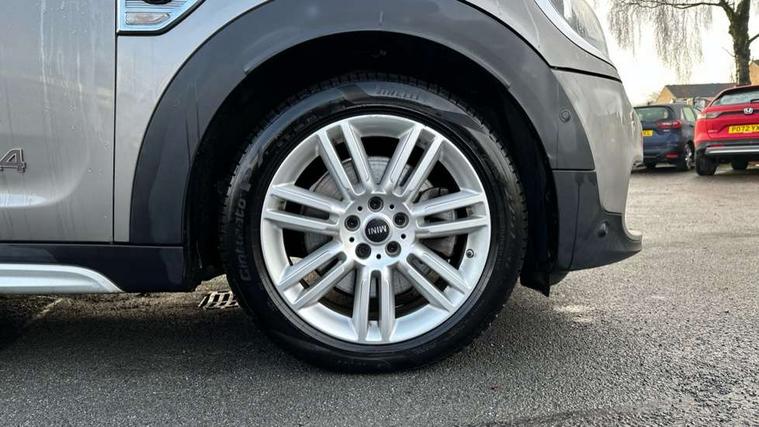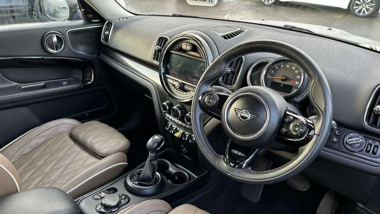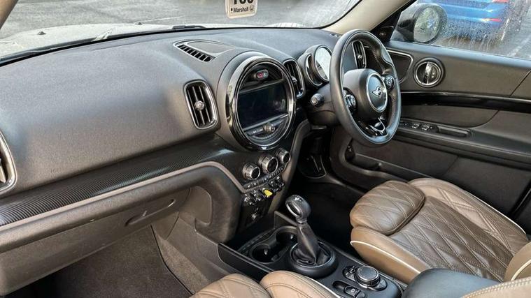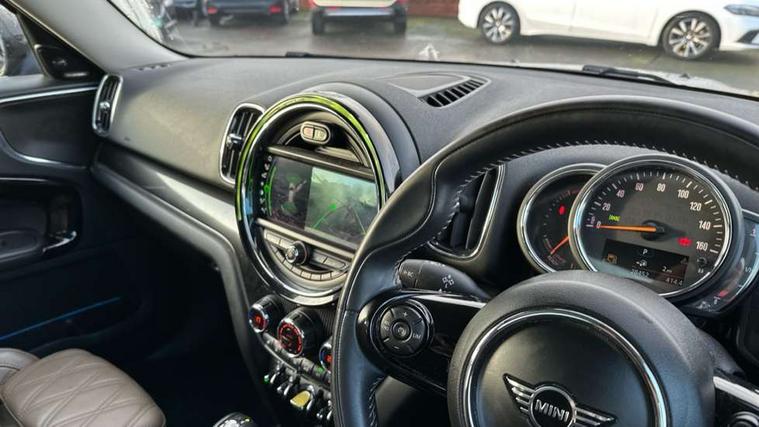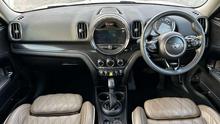 Active Guard incl speed limiting and lane departure functions with auto steering, and front collision warning with brake intervention, Automatic start/stop function with brake energy recuperation, eDrive button, Electro-mechanical speed dependant steering assistance, Instrument cluster, Mini E-call, MINI TeleServices, On board computer, Rear parking distance control, Automatic transmission, Charging flap on front left lower A-panel, Double Vanos system, Fully variable valve control, High precision injection, Performance Control, FM tuner and DAB digital radio, Bonnet scoop, Chrome border honeycomb structure radiator grille with S badge, Chrome fuel filler cap, Chrome line exterior, Day time driving lights, Dynamic brake lights, Electric windows, Heated rear window, Heated windscreen washer jets, Metal door sill strips with Cooper S imprint, Model logo, Model logo on Tailgate, Rain sensor with auto headlights, Rear fog lights, Rear window wiper, Side scuttle panel with integrated indicator, Split rear doors, Sun/heat protection glass, Twin exhaust tailpipe, White indicator lenses, 12V Accessory socket in centre console, 360L luggage compartment capacity, 4 lashing eyes in luggage compartment, 40:20:40 split folding rear seats, Charging cable, Chrome interior highlights, Cupholders, English handbook, Front headrests, Glove compartment, Height and length steering column adjustment, Isofix rear child seat preparation, Leather gearshift lever and handbrake gaiters, LED reading lights, vanity mirror lights, front foot well light and spotlight on front seats, Manual air conditioning, Mechanical seat adjustment, driver seat height adjust, forward/back and front seats backrest, MINI Yours fine walk nappa leather steering wheel with contrast stitching in silver and MINI Yours badge, Multifunction steering wheel, Passenger seat height adjuster, Rear headrests, Storage compartments in doors, Sunvisors with vanity mirrors, Excitement pack - Countryman, Navigation pack - Countryman, 2 tone horn, 3 point seatbelts on all seats, 6 Airbags - front, side, head and seat belt tensioners, Anti-lock braking system (ABS), DSC - Dynamic Stability Control, Electronic handbrake, Front and rear disc brakes, Hill start assist, Tyre pressure monitoring system, Alarm system with tilt sensor, monitoring doors, bonnet interior and tailgate, Auto drive away locking, Deadlocking function, Electronic vehicle immobiliser, Locking wheel bolts, Start/stop toggle with keyless go, Chrome line interior, Tool kit,