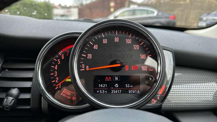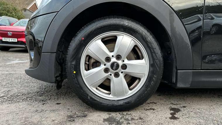 Acoustic seat-belt warning, Basic bluetooth function with USB audio, Brake fluid level warning light, Brake pad wear indicator warning light, DTC - Dynamic traction control, Exterior temperature gauge, Intelligent emergency call, MINI TeleServices, Oil level indicator, On board computer, Push button starter, Service interval indicator, Servotronic PAS, Electronic differential lock, Auxiliary input socket, DAB digital radio module, 2 speed wipers+intermittent wipe, Anti dazzle mirror, Anti trapping/one touch open close front windows, Body coloured bumpers, Chrome bezels around rear lights and headlights, Chrome door handles, Chrome exhaust tailpipe, Chrome grille surround, Chrome plated trim on bottom edge of window, Chrome strip on lower grille, Electric front windows, Electric rear windows, Electrically adjustable door mirrors, Flared wheel arches, Follow me home headlights, Green tinted heat insulating glass, Heated door mirrors/heated windscreen washers, Heated rear window with auto timer, High gloss black tailgate, LED fog lights, LED rear lights, Rear wiper, Roof spoiler in roof colour, Side scuttles, White indicator lights, 2 rear head restraints, 4 boot load lashing points, 4 way manually adjustable passenger seat with height, reach, tilt, backrest and headrest, 6-way manually adjustable driver's seat, Active carbon filter, Adjustable front seats backrest, Air recirculation system, Auxiliary socket in centre console storage compartment, Centre console storage, Driver's seat height adjuster, Driver/passenger sunvisors, Easy entry seats, Front and rear cupholders, Front head restraints, Front passenger grab handle, Gear/selector and handbrake in artificial leather, Internal chrome door handles, Isofix child seat preparation, Luggage compartment lighting, Multifunction steering wheel, Reach + rake adjustable steering column, Rear grab handles, Rear storage trays, Split folding rear seats, Storage compartments in doors, Toolkit in luggage compartment, 3 point seatbelts, 3x3 point rear seatbelts, ABS/EBD, ASC+T, Cornering brake control (CBC), Crash Sensor - activates hazard/interior lighting + unlocks doors, Driver and passenger airbags, Driver/front passenger side airbags, DSC - Dynamic Stability Control, Fuel cut off safety device, Head airbags, Hill start assist, Manual passenger airbag deactivation function, Seatbelt pretensioners, Tyre pressure warning, Ventilated front disc brakes, Drive away door locking, Locking wheel bolts, Remote central locking/doors+fuel cap+tailgate, Second remote key, Thatcham category 1 alarm + immobiliser,