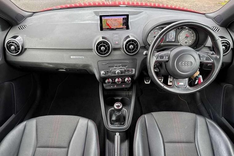 Audi drive select, Cruise control, Driver's information system, Low washer fluid indicator, Service interval indicator, Speed sensitive power steering, Variable Damper Control, Voice control system, S sports suspension, Additional SD card reader, Audi music interface, Bluetooth audio streaming, DAB Digital radio, Adaptive brake lights, Body coloured bumpers, Body coloured roof, Double blade roof spoiler, Dual branch oval twin exhaust tailpipes, Electric adjustable door mirrors, Electric front windows, Electric rear windows, Front fog lights, Heat insulating glass, Heated door mirrors, Heated rear windscreen, Privacy glass, Rain and light sensors, Rear diffuser, Rear wiper, S body styling, Sunband for windscreen, Xenon plus headlights including automatic headlights, LED daytime running lights, LED rear lights, dynamic range control and headlight washers, 12V Accessory socket in centre console, 2 rear seats, Adjustable rear head restraints, Cupholders in centre console, Door sills trims with aluminium inlays, Electronic climate control (ECC), Front floor mats, Front head restraints, Height adjustable front seats, Illuminated glovebox, Isofix attachments on outer rear seats, Jack and tool kit, Leather handbrake, Lumbar adjustment for front seats, Mono.pur centre console and door armrest, Rake/reach adjustable steering wheel, Split folding rear seats, Stainless steel pedals, High-gloss black styling pack - A1, Non smoking pack - A1, ABS/EBD, Brake assist function, Driver and passenger side airbags, Driver/Front Passenger airbags, EDL, ESP with ASR, First aid kit, Front and rear seatbelt reminder, Front passenger airbag deactivation, Head airbags, Height adjustable front seatbelts, Rear three point seatbelts x 2, Tyre pressure monitor, Warning triangle, Locking wheel bolts, Remote control central locking, Thatcham category 1 alarm + immobiliser, Aluminium trim, Tyre repair kit,