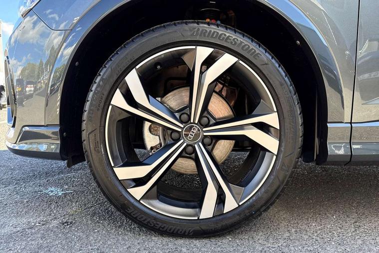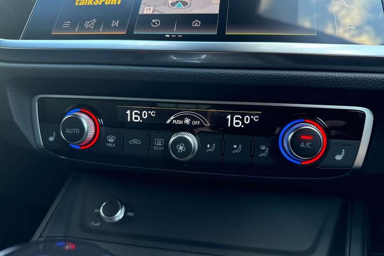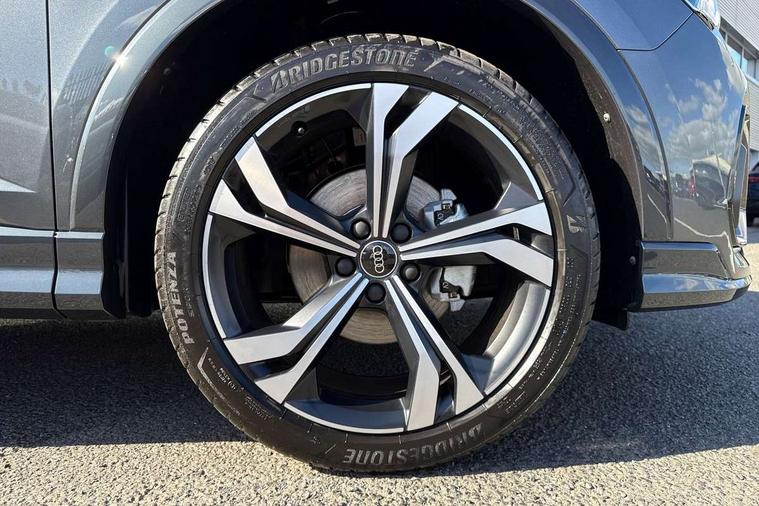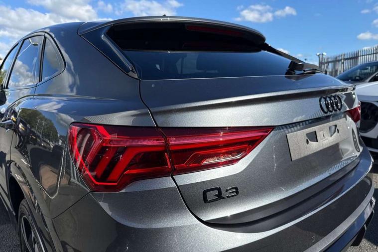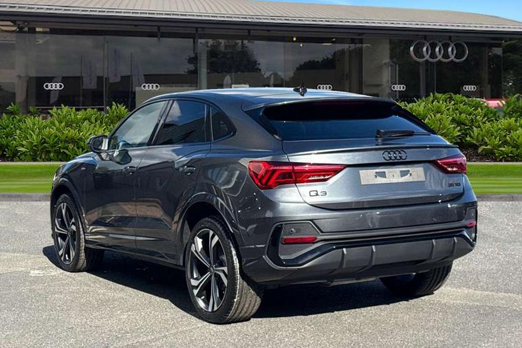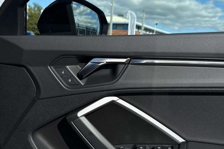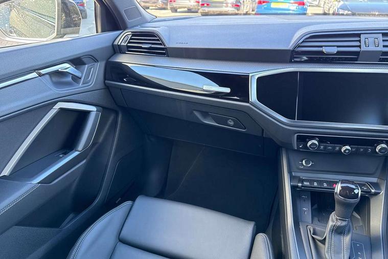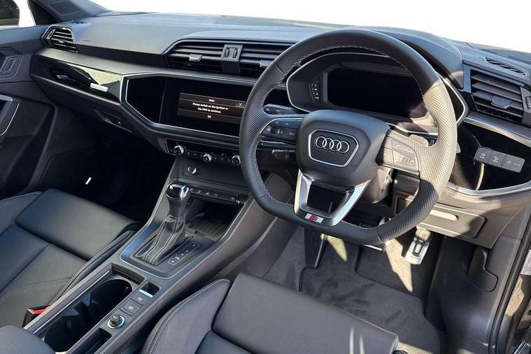 Audi connect safety and service, Audi drive select, Audi lane departure warning, Audi Virtual Cockpit - 10.25" display, Bluetooth interface, Camera based traffic sign recognition, Distraction and Fatigue warning, Legal emergency call, MMI Navigation Plus with high resolution 10.1 inch touchscreen colour display, Power operated tailgate, Progressive steering, Service interval indicator, Smartphone interface includes wireless Apple carplay/Android Auto, Start stop system with recuperation, Voice control system with natural language interaction, Diesel particulate filter, Sports suspension, 2 USB-C ports with charge and data functions, 6 passive loudspeakers, DAB digital radio module, Acoustic windscreen, Audi Beam uses LEDs to project the Audi logo onto the ground as you exit your Q3, Auto dimming door mirrors, Auto dimming frameless rear view mirror, Electrically folding, adjustable and heated door mirrors with integrated LED side indicators and kerb view function for passenger side, Front and rear electric windows, Front fog lights, Front underbody protection in manhattan grey paint finish, High gloss black finish B and C pillars, Honeycomb design radiator grille in matt anthracite black, LED Dynamic rear indicators, LED headlights with LED daytime running lights, LED rear lights, LED third brake light, Privacy glass dark tinted rear and rear-side windows (from B-pillar backwards), Rain and light sensors, Rear diffuser grille in grained matt black, Rear diffuser strip in matt anthracite black, Rear side wing doors, Rear underbody protection in matt black, Rear wiper, S line front and rear bumpers and side skirts in contrasting Manhattan grey paint finish, Variable front intermittent wipers, 12V socket in rear centre console, 3 seat bench in 2nd row, 40:20:40 folding with manual adjustment for 60:40 forwards/backwards position and backrest angle, Adjustable rear seat bench/backrest with centre armrest and cupholder, Black carpet mats, Black cloth headlining, Dual zone electronic climate control, Electric lumbar support, Front and rear black floor mats with contrast stitching in rock grey, Front and rear headrests, Front centre armrest, Height and reach adjustable steering wheel, Illuminated door sill trims with S logo, ISOFIX child seat mounting for front passenger with airbag deactivation and outer rear seat including top tether attachment point for outer rear seats, Luggage compartment sill protection in stainless steel, Manual front seats with height adjustment, Perforated leather gearknob, Single front passenger seat, Stainless steel pedals, Twin leather upholstery with front sport seats + S embossing, Black styling pack - Q3, Non smoking pack - Q3, 3x3 point rear seatbelts, 6 airbags - Driver, front passenger, curtain and side windows, Audi pre-sense front with pedestrain and cyclist recognition, Electrically operated child locks on rear doors, Electromechanical parking brake, Electronic stabilisation control including ABS, ASR and EDL, Front seatbelt reminder, Hill descent control, Hill hold assist, Pre sense basic, Seatbelt monitoring, Tyre pressure warning, Warning triangle and first aid kit, Anti theft wheel bolts, Immobiliser, Remote central locking, Thatcham approved category 1 anti theft alarm, Aluminium look interior elements, Detail dashboard around MMI touch colour display in glass look, black with surround in aluminium look, Leatherette door armrest, Piano black inlay,