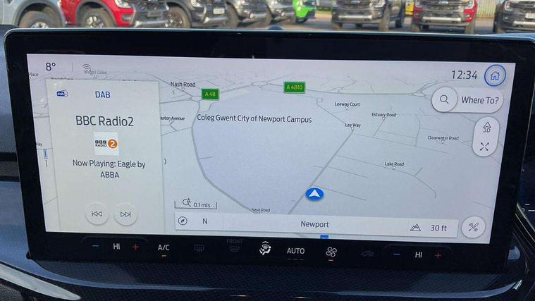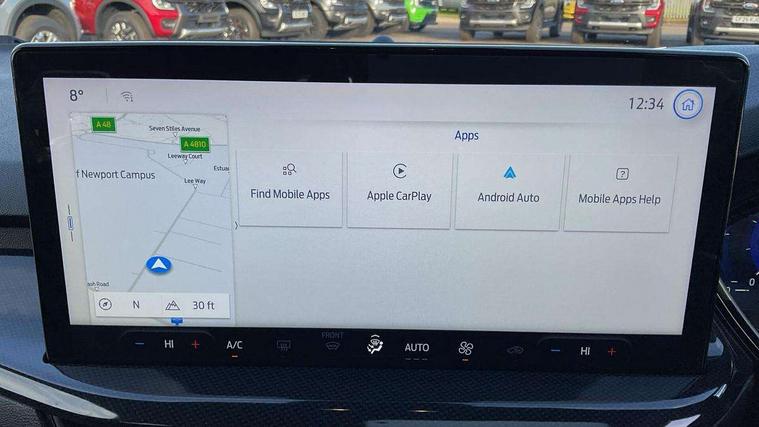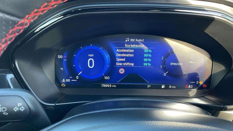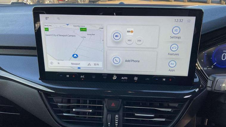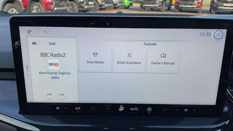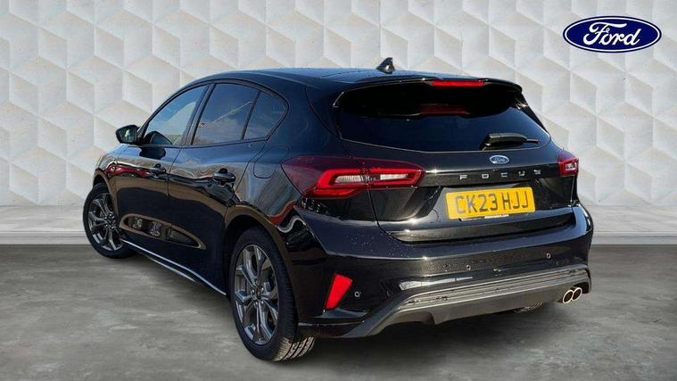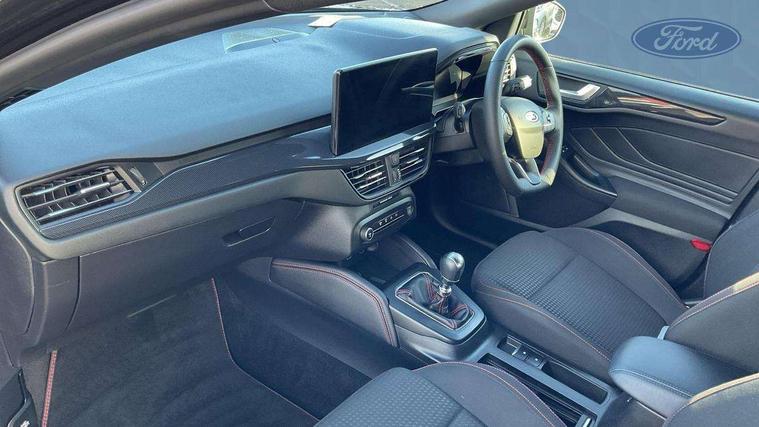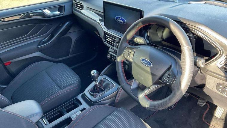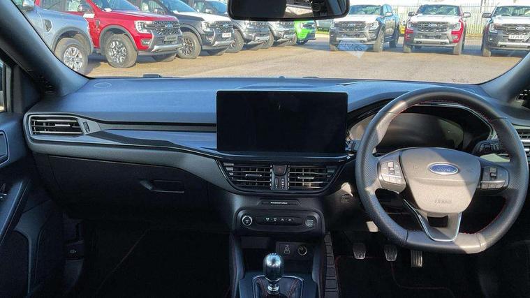 12.3" Digital instrument cluster, Bluetooth system, Digital clock, Easy fuel capless refuelling system, Eco mode, Ford SYNC4 Nav with 13.2'' touchscreen, DAB, Emergency Assistance, Apple Carplay & Android Auto, B&O Premium Audio with 10 speakers, FordPass Connect, Lane keeping system - lane keeping alert and lane keeping aid, PAS, Rev counter, Selectable drive mode, Service interval indicator, Trip computer, Wireless charging pad, Sports tuned suspension, 2 USB ports, Auto headlamps (on/off), Body coloured door handles, Electrically operated front and rear windows with one touch opening and closing, Electrically operated heated power fold door mirrors with puddle lamp with side indicators, Front variable intermittent wipers with electric wash, Heated rear window, LED daytime running lamp, LED rear lamps, LED third brake light, Polished twin tailpipe, Privacy glass, Quickclear heated windscreen, Rain sensor, Rear side wing doors, Tailgate wash/wipe, Unique ST-Line grille, full bodystyling kit, and large body coloured rear spoiler, 3 rear headrests, 3 seat bench in 2nd row, Dual zone electronic air temperature control, Full sensico premium upholstery, Height adjustable front headrests, Isofix child seat preparation, Load through ski hatch, Manual 4-way passenger seat adjusts, Power 4-way driver seat adjust, with power lumbar adjust, Reach + rake adjustable steering column, Single front passenger seat, Winter pack - Focus, 3x3 point rear seatbelts, ABS+Electronic Brake force Distribution, Auto hold function, Driver airbag, EDL traction control, Electronic parking brake, Electronic stability control, Front and rear seatbelt reminder, Front inertia reel height adjustable seatbelts with pre-tensioners, Front passenger airbag, Front side airbags, Passenger airbag deactivate switch, Post collision braking, Pre collision assist with autonomous emergency braking and pedestrian/cyclist detection, Red brake calipers, Remote/power child rear door locks, Side curtain airbags, Three rear inertia reel lap/diagonal seatbelts, Tyre pressure monitoring system, Keyless entry and keyless start, MyKey system, Remote central locking & engine immobiliser, Thatcham alarm with power door dead locks, 18" 5x3 spoke pearl grey high gloss machined finish alloy wheels with mini spare wheel,